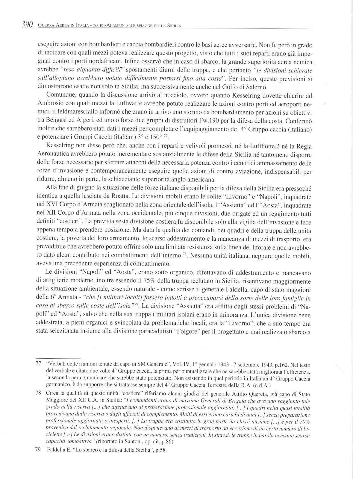 L'Italia fu l a prima naz ione del Patto Tripartito ad arrendersi. La ineversibile parabola discendente delle sue fortune, iniziata con el-Alamein e lo sb arc o ang lo americano ne l Nord Africa, arrivò al culmine con l'in vas ion e della Sicilia , resa possibile e relativamente poc o cos tosa dall o stra pote re aereo del nemico , che dop o avere costretto Pantell eria alla resa, aveva praticamente di st rutt o i reparti aerei de ll ' Asse, che difende va no la Sicilia. Non era sta ta una vittori a facile. L'epica resistenza degli aviatori it aliani e tedeschi era stata piegata non tant o dai co mbattimenti aerei, quanto dai continu i ed inesorabili bombardamenti che avevano colpito giorno e notte le loro basi, i campi di fortuna e le s trisce d 'atterraggio nascoste fra gli uli vi. 1 tedeschi avevano fatto sfoggio di sp irito militare, profess ionalità, e buoni aerei. Invece gli itali ani avevano meno aere i, di cui pochi moderni , meno reintegri ed un a infe ri ore o rga ni zzazione. Però combattevano co n tanto sl anci o e coraggio da impressionare l'a vve rsar io. Il Quartiere Generale delle Nortwest African Air Forces do vette ammettere che "sopra la Sicilia gli It aliani avevano mostrato più spirito combattivo e spinto a fondo i loro attacchi molto meglio di quanto fecero i Tedeschi"' . E quello spi ri to combattivo rimase, anche mentre tutt o c ro ll ava .