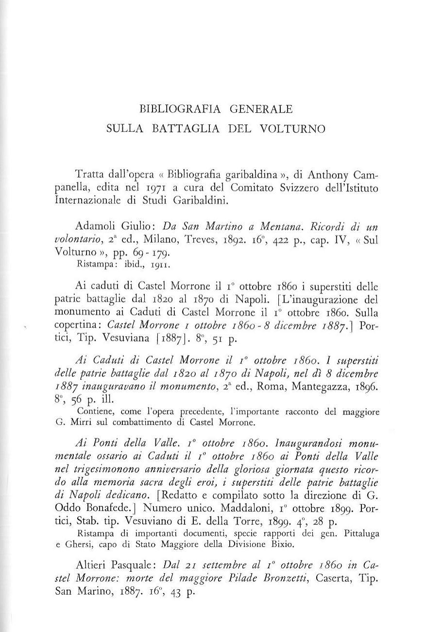 B a t t a g l i a ( l a l V o l t u r n o ( 1 " o t t o b r e 1 8 6 0 ) , « R i v i s t a M i l i t a r e » . R o m a , n . 1 0 . 1 9 6 0 . p p . 1 2 7 3 - 1 1 7 5 .
