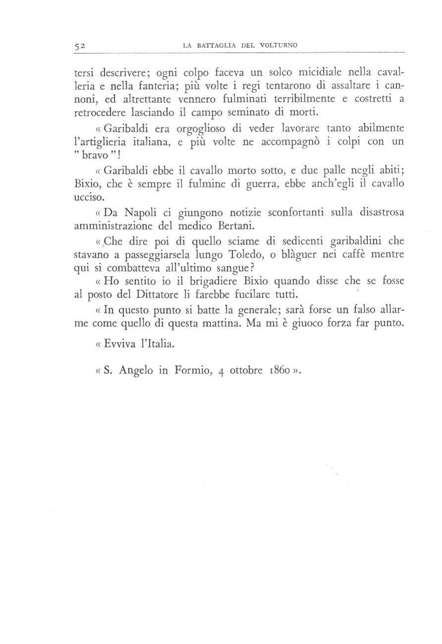 L a b a t t a g l i a d e l V o l t u r n o s i p r e s e n t ò a q u e s t o p u n t o c o m e u n a t a p p a d e c i s i v a d e l l a c a m p a g n a i n c u i t u t t o f u g i o c a t o : i s u c c e s s i p r e c e d e n t i , l a s p e r a t a r i v i n c i t a . l c o n t e n d e n t i f u r o n o d e g n i g l i u n i d e g l i a l t r i ; a i p i ù c o l t i n o n s f u g g ì n e p p u r e l a d o l o r o s a s e n s a z i o n e d i u n a l o t t a t r a f r a t e l l i .