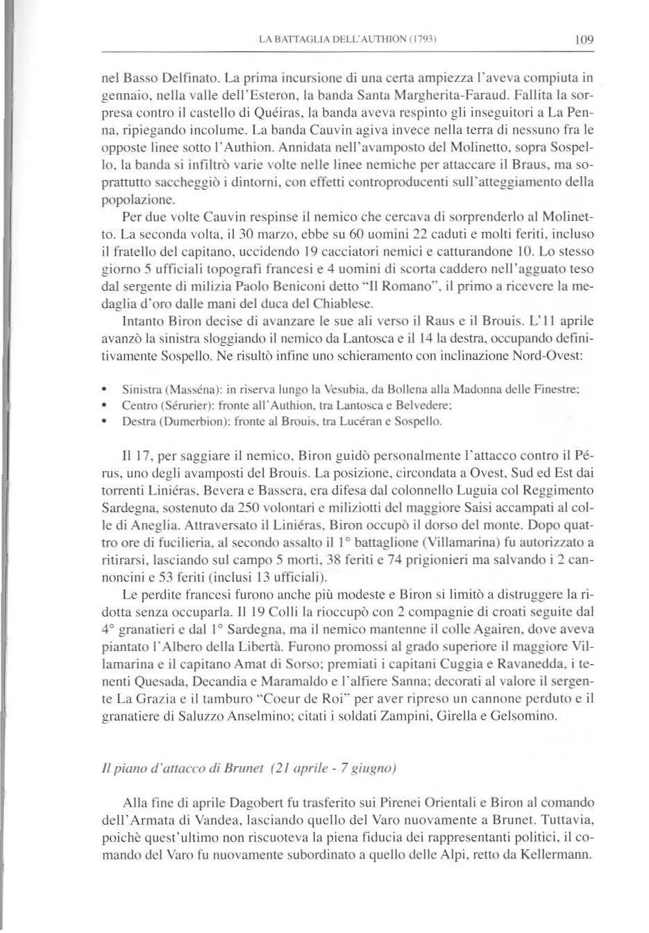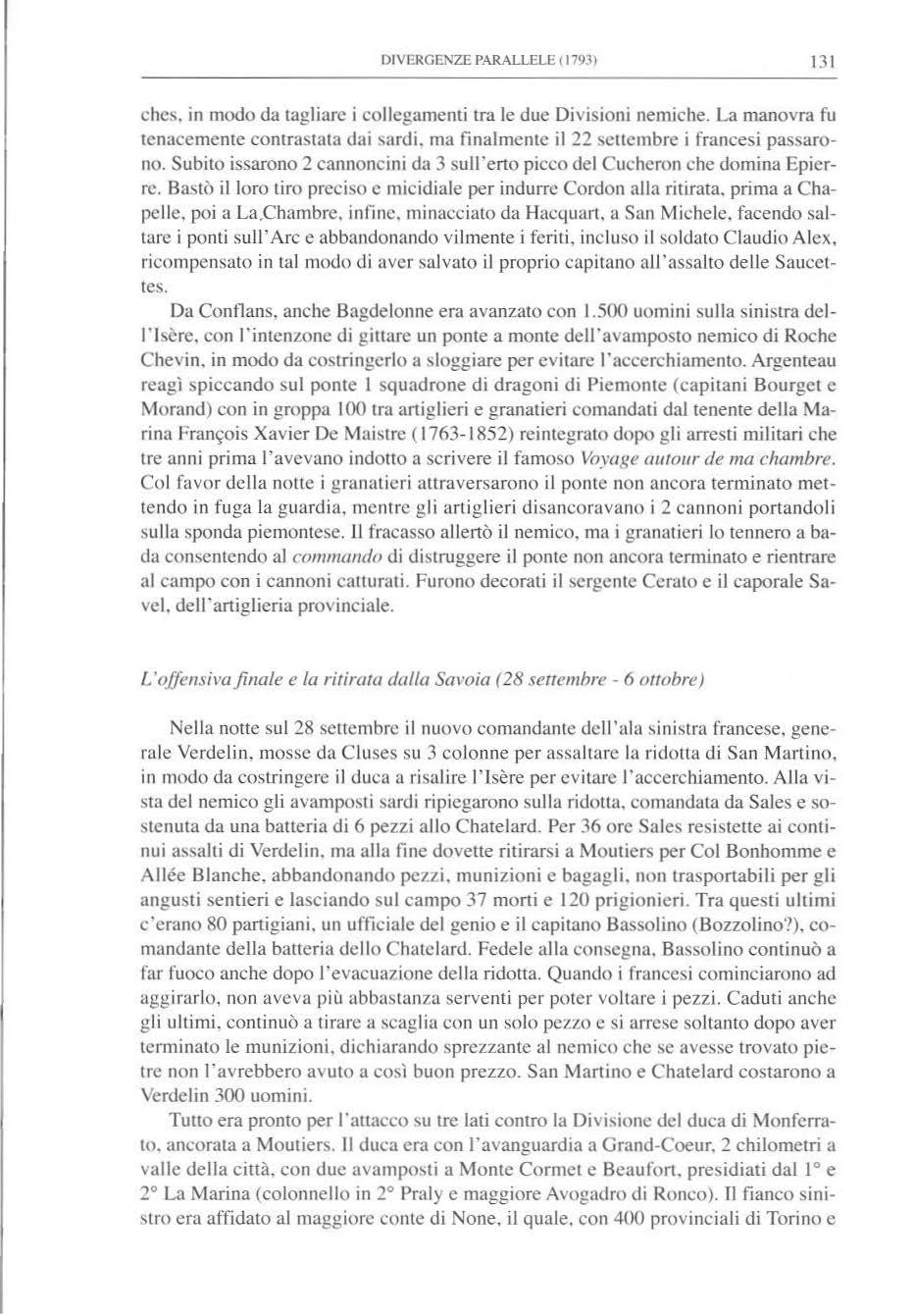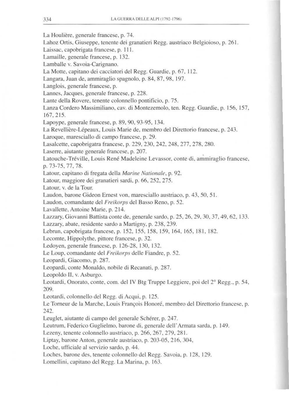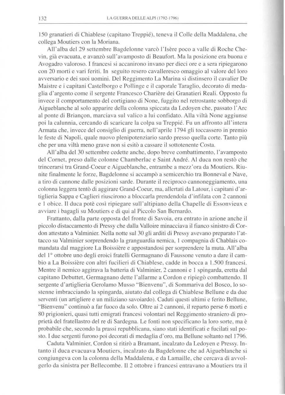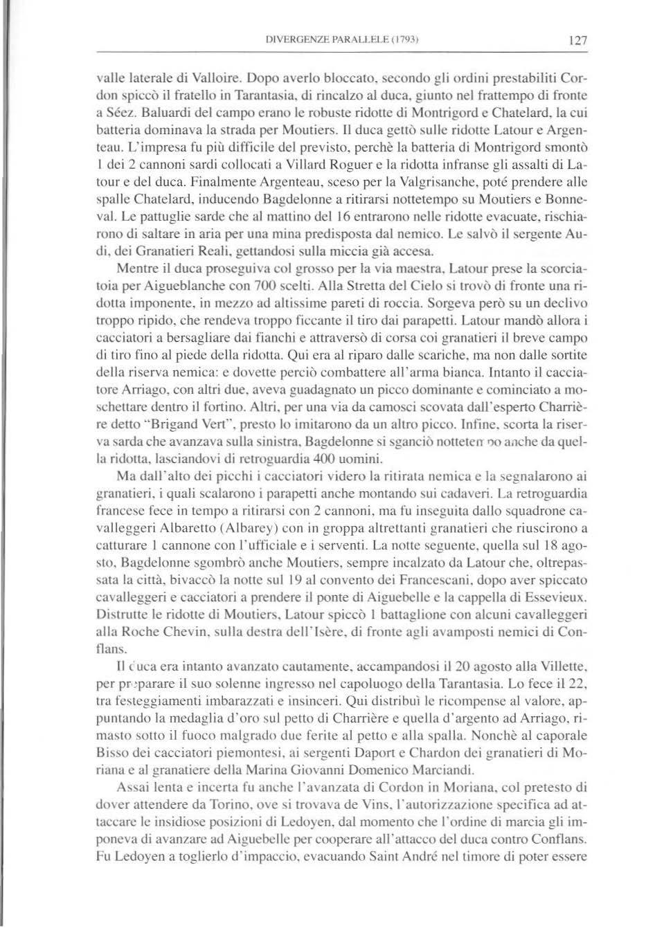 Se il silenzio delle grandi scuole non sorprende, occorre spiegare quello della piccola scuola degli storici militari, in particolare italiani. Infatti la memoria della guerra 1792-96 è stata tramandata soltanto in modo frammentario, attraverso la tradizione sabauda o attraverso la storia delle gue rre napolconichc o della guerra di montagna. È a quest'ultima che l a guerra del 1792-96 deve anzi un nome, sia pure riduttivo: quello cioè di "guerra delle Alpi" È lo stesso nome attribuito dai francesi a ll ' Armata che inizialmente formarono contro il Piemonte. ma dalla quale si distaccò presto un'altra Armata autonoma, detta prima ·'del Varo", e poi, in co nseg uen za della manovra dell'aprile 1794, "d'ltalia". Armata straniera, bcnchè poi integrata da piccole legioni italiane: ma a buon diritto portava quel nome. perchè così tanta pane ebbe nel determinare. anc he nella lun ga durata. il destino e la cultura della società dello stato e della milizia italiani.