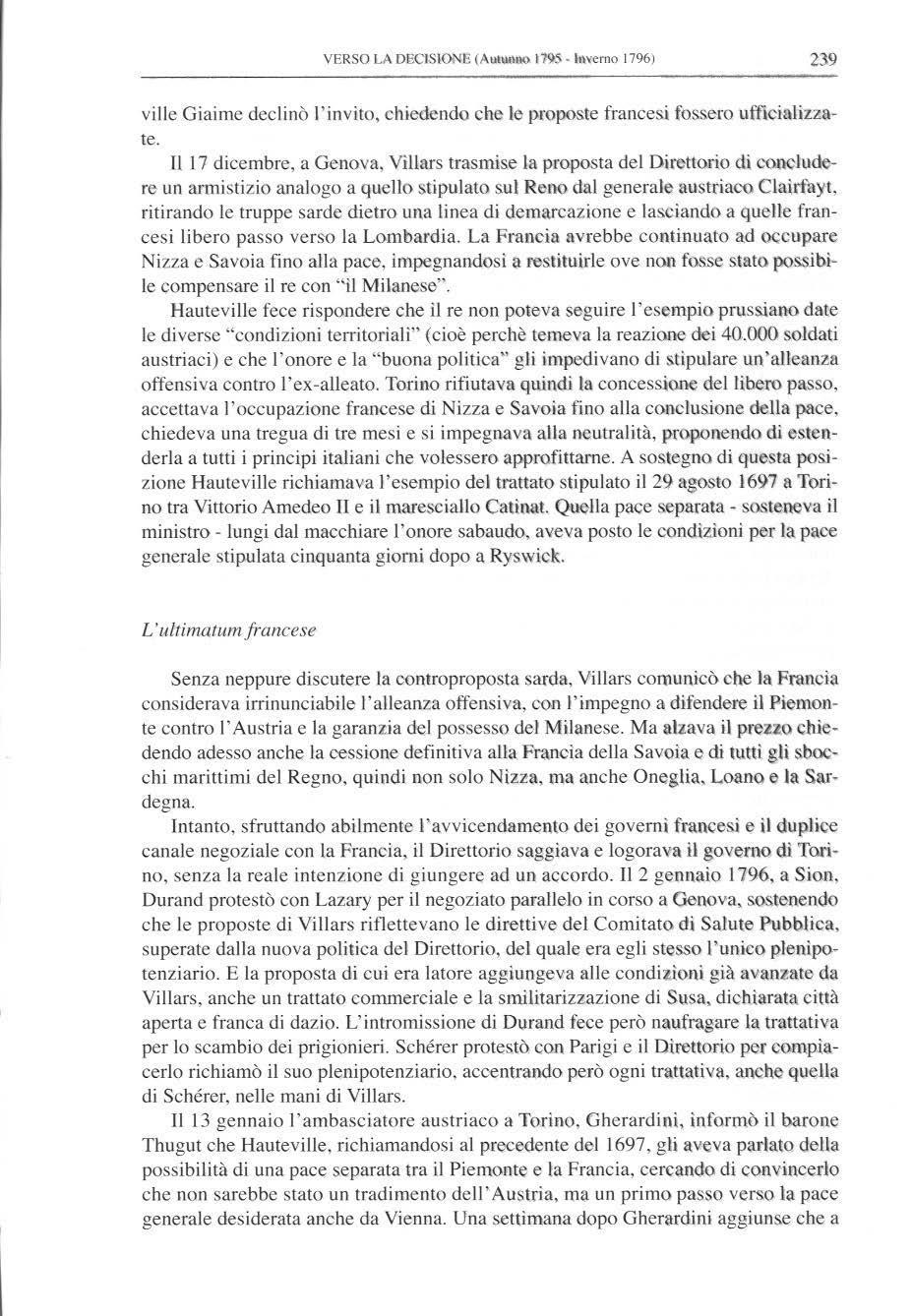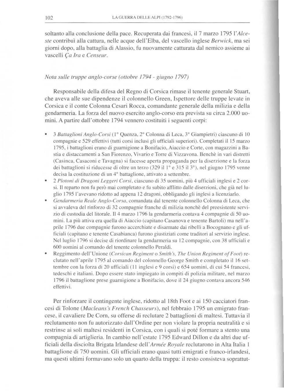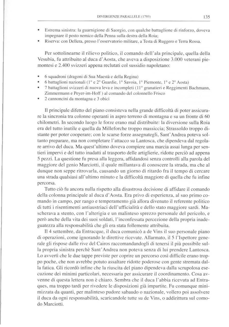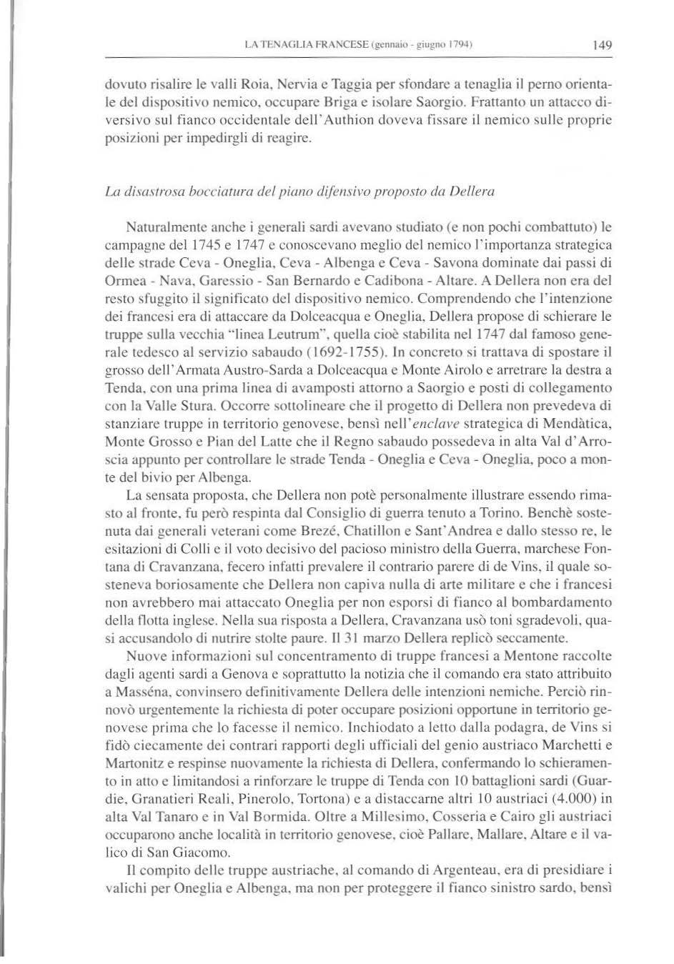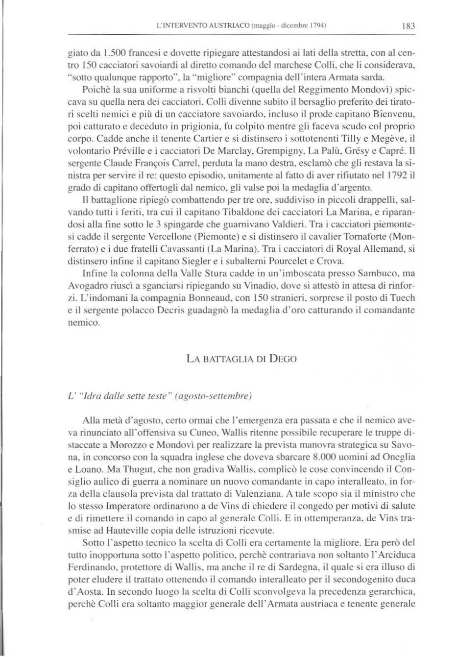 Per varie ragioni discusse nellll capitolo, l'occasione di unificare il fronte marittimo c quello alpino in un unico teatro operativo interalleato sfumò nel settembre 1793, né in seguito si ripresentò. neppure quando il generale Masséna spostò il baricentro militare di quella guerra dalle Alpi alla Riviera di Ponente e alle vallate de l Tanaro e della Bormida. Nello stesso capitolo cerchiamo di spiegare le ragioni per le quali lo studio delle operazioni navali e marittime svoltesi in Mediterraneo prima della battaglia di Aboukir sia stato finora così negletto anche nell'ambito specialistico della s toria navale. Fatto ..:he ha negativamente condizionato lo stesso Pinelli, mentre la nostra ricerca ci ha convinti che è impossibile comprendere appieno il significato e le ragioni delle operaz ioni alpine senza riferirle costantemente e puntualmente agli sviluppi sul fronte marittimo.