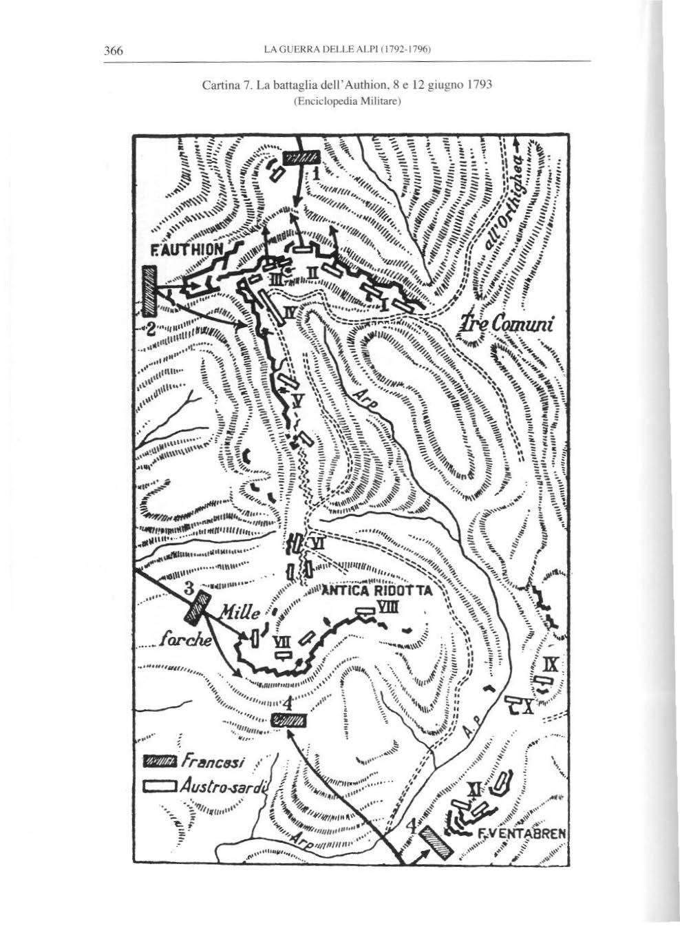 Cartina 7. La battaglia dcll ' Authion. 8 e 12 giugno 1793 (Enciclopedia Militare )