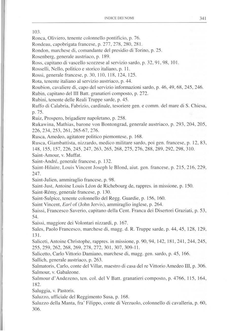 Ponza. Lorenzo. detto "La R osée", sergente del Reggimento Saluzzo* , p. 182.