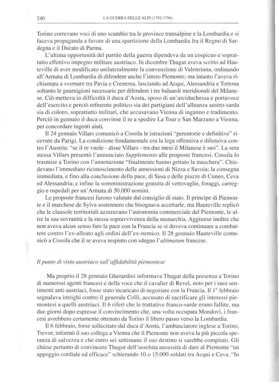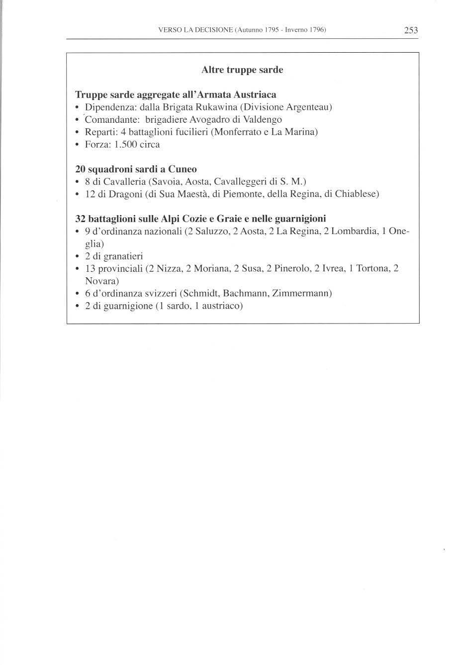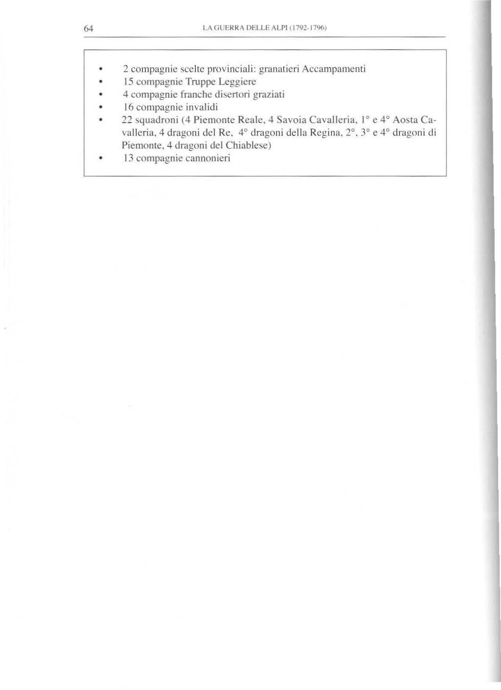 Per questa ragione l'Ufficio Storico è lieto di pubblicare. come parte di una serie di opere sulla storia mi/ilare degli antichi stati italiani tra Seltecento e OttocentO. il presente saggio sulla «guerra delle Alpi» del 1792-96. forse davvero, come sostengono gli Alllori, la piiÌ gloriosa, anche se sfortuna/a, delle guerre dell'antico Piemome, la prima comhat/11/a da un 'Armata composta in maggioranza di soldati na-;.ionali: mlontari. coscriui e parligiani della mili:ia generale.