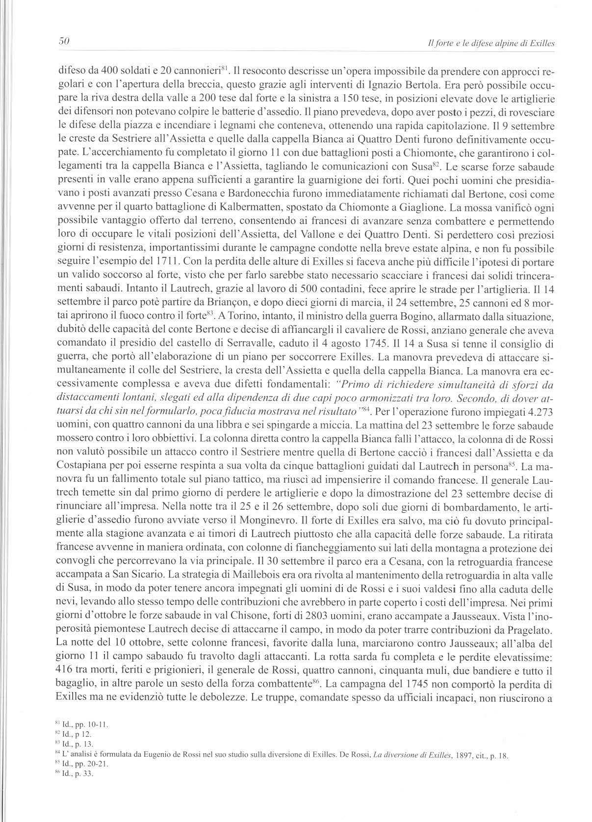 DE Rossi EuGCl\10, La diversione di Exilles. Episodio della Guerra della Pragmatica Sanzione, in « Rivi sta Militar e Italiana» , Voghera Ed., Roma 1897.