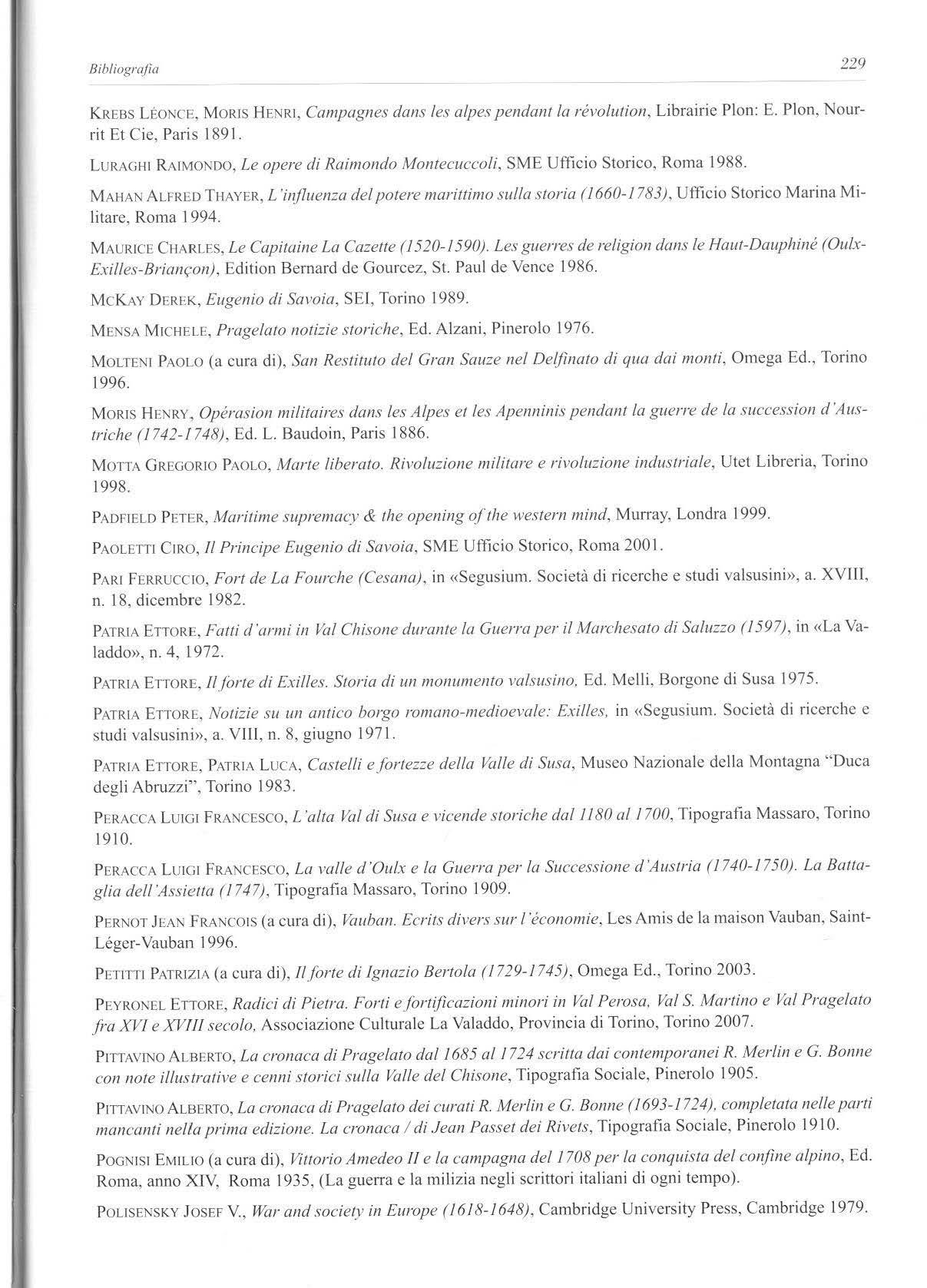 PEYRO NEL ETTORE, Radici di Pietra. Forti e fortificazioni minori in Val Perosa, Val S. Martino e Val Pragelato fra XVI e XV!fl secolo, Associazione Cu lturale La Valaddo, Provincia di Torino, Torino 2007.