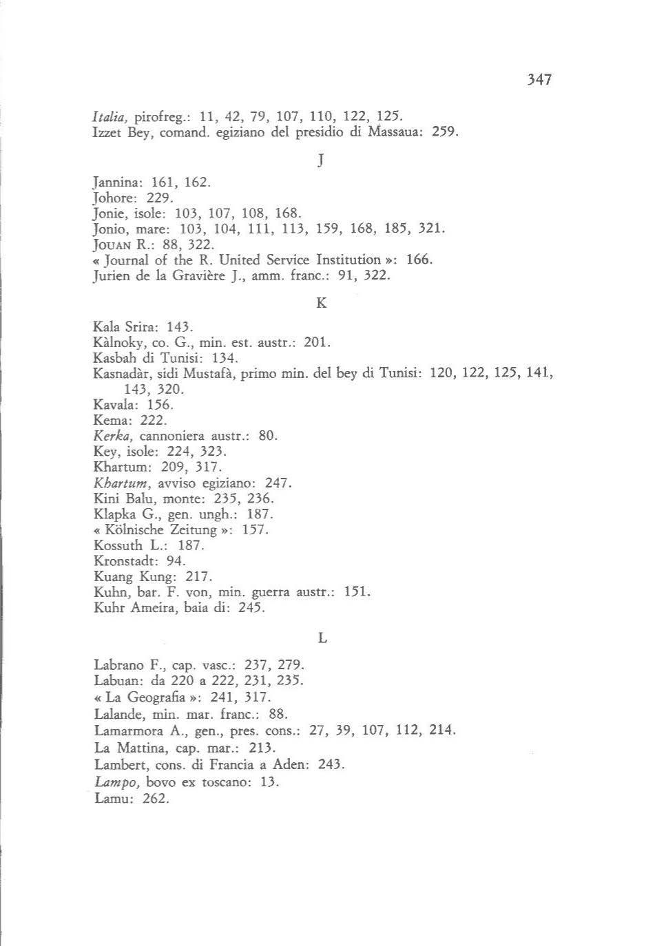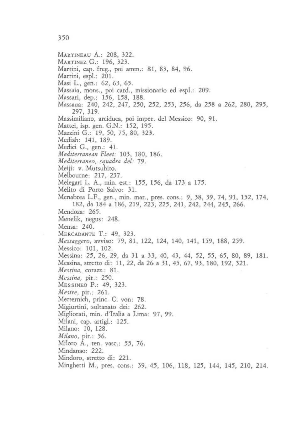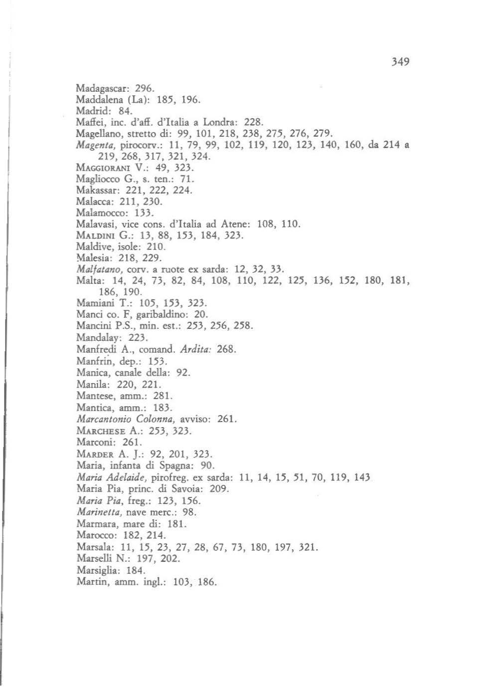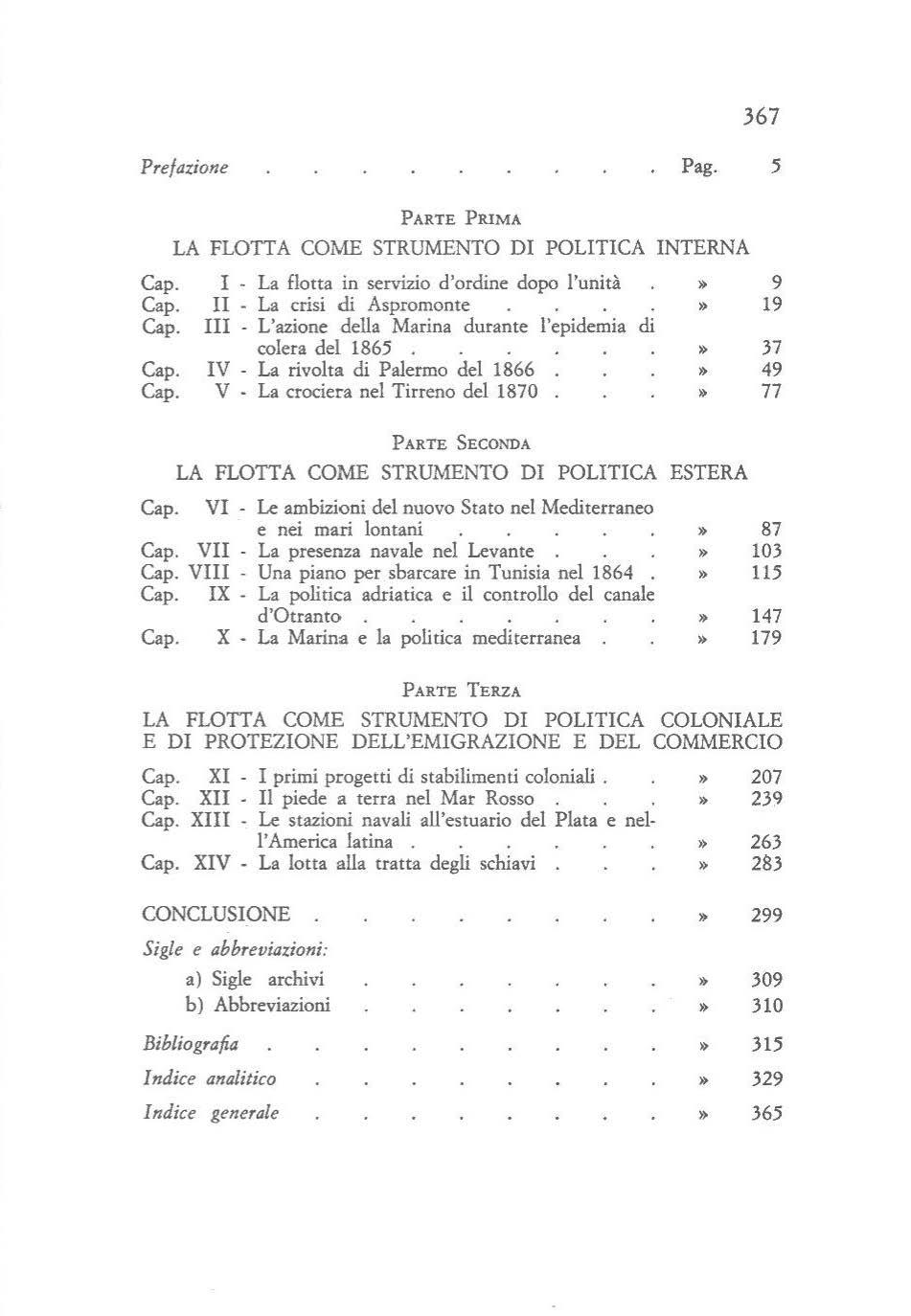 L'Ufficio Storico è lieto di pubblicare questa interessante indagine condotta dagli Autori - pro/. Gabriele e prof. Frizsull' impiego della marina militare italiana al servizio della politica nazionale - interna, estera, coloniale - nei primi decenni di vita dello Stato unitario, non con l'intento di lumeggiare problemi di storia navale riferiti ad episodi bellici, ma con quello di porre soprattutto in luce i compiti che ricadevano sulla Marina nei tempi di pace. Ed erano compiti primari e difficili, che si ponevano nel contesto dei gravi problemi interni e internazionali di uno Stato nuovo, con una posizione geografica peculiare. Essi potevano riguardare, da un lato, la stessa unità nazionale, troppo recente per non essere fragile e, dall'altro, le ambizioni di un Paese giovane che, non ancora consolidato, si trovava a vivere la sua prima stagione internazionale in un}età caratterizzata dalla politica di potenza.