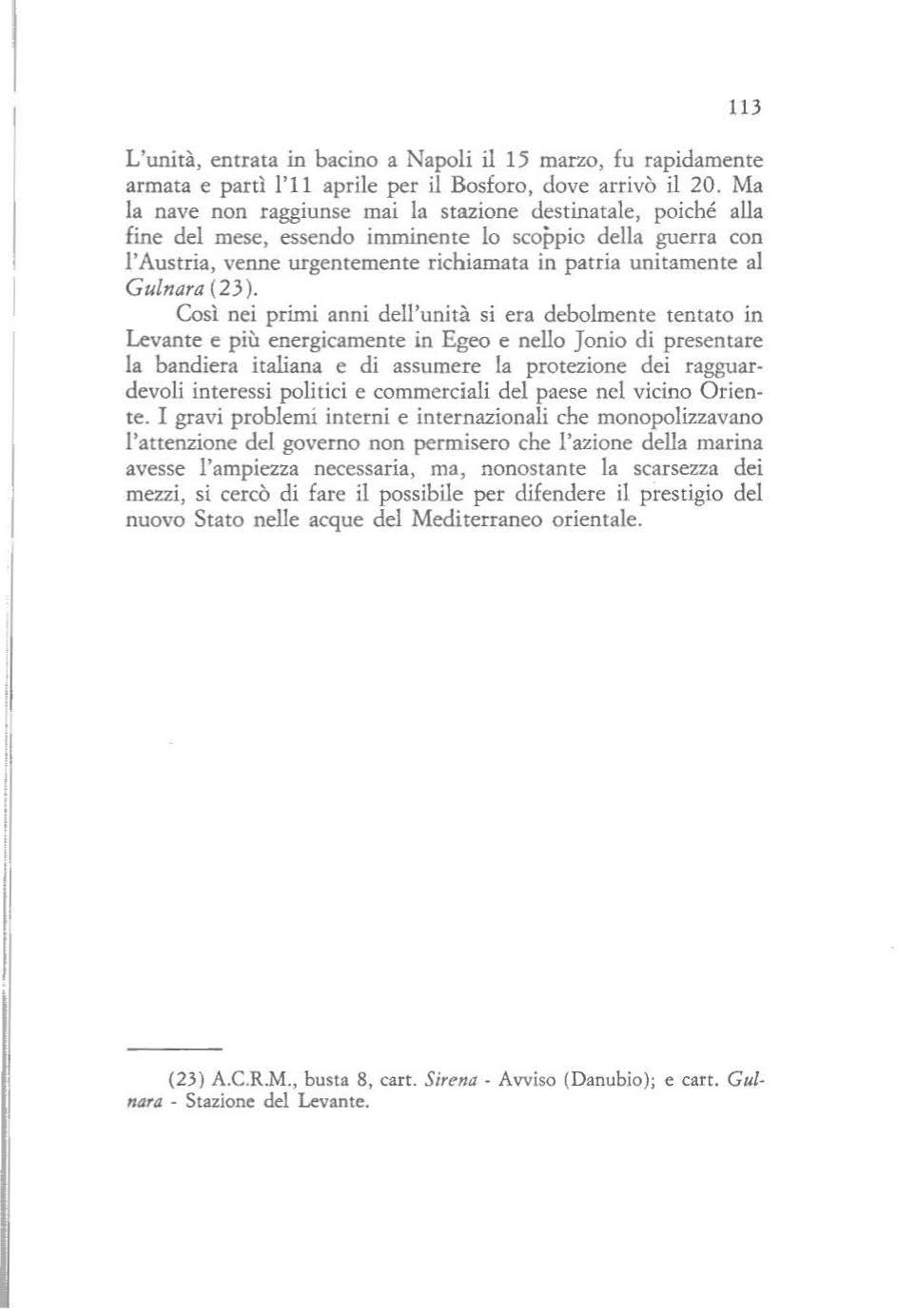 (13) A.C.R.M., busta 78, reg. copiai. corrisp. varia: istruzioni ai comandanti delle cannoniere; busta 80, cart. maggio: autorizzazione del ministero a che l'Albini compisse la progettata crociera intorno alla Sicilia.