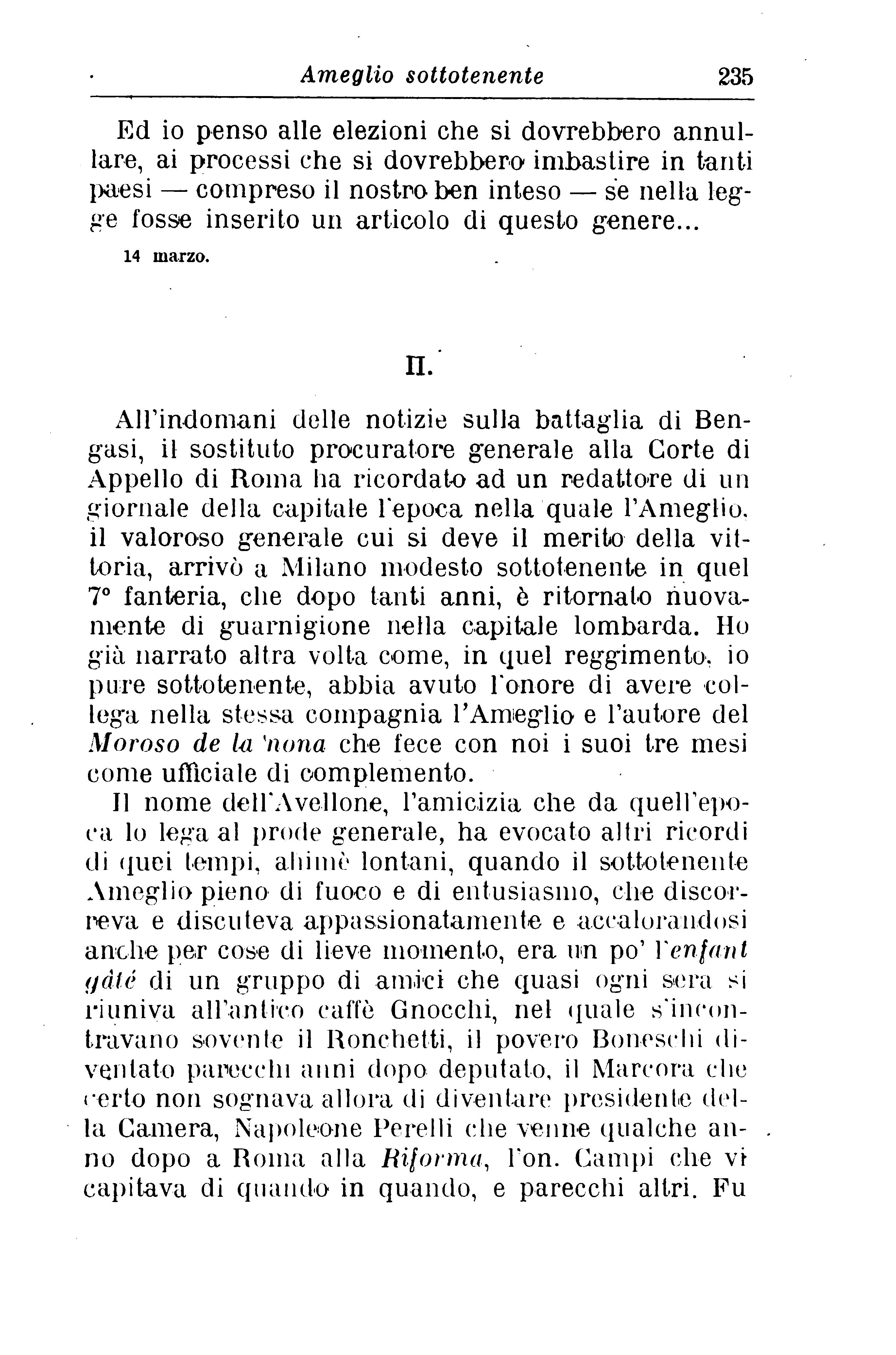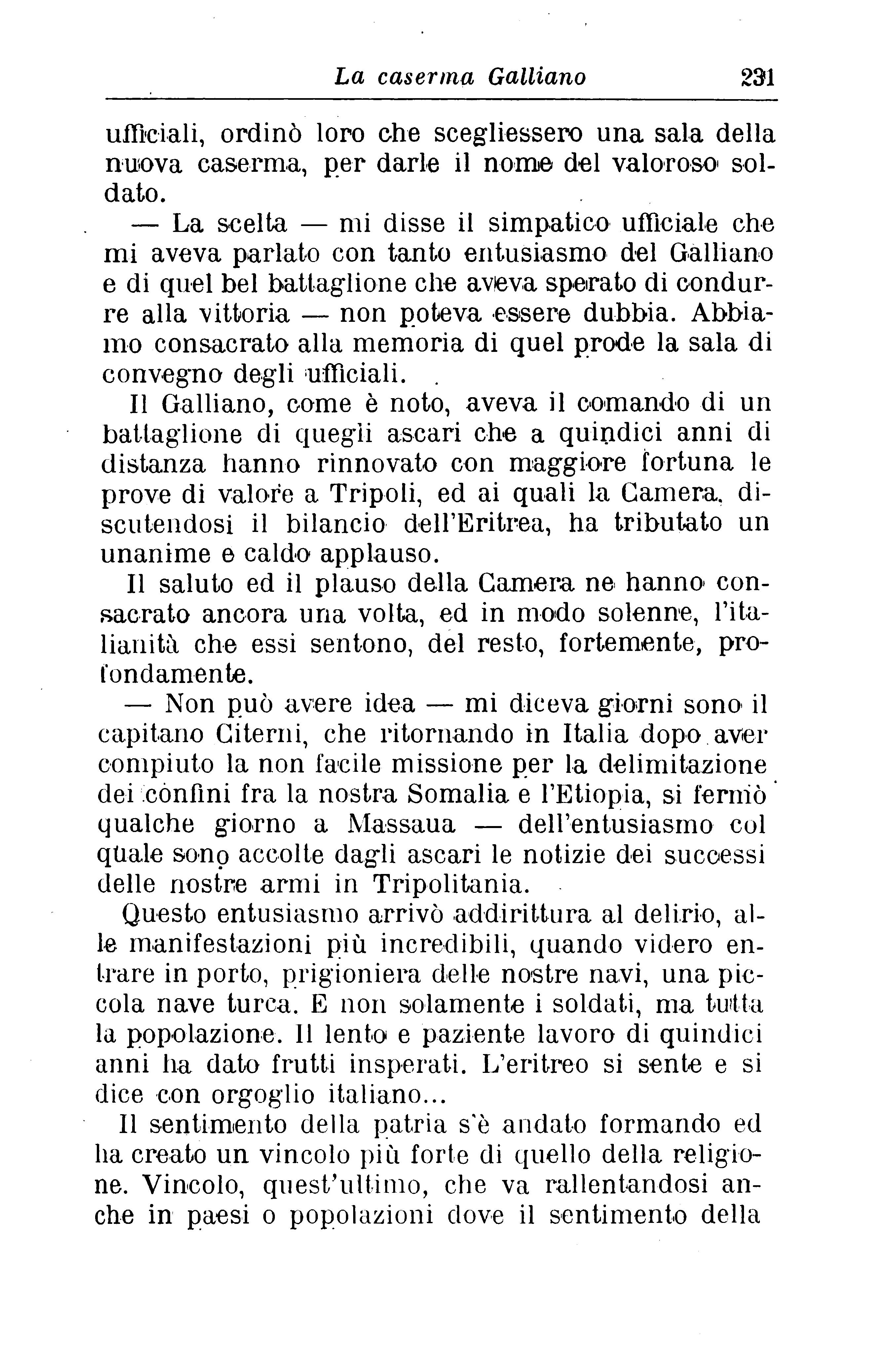 L'ammiraglio Faravelli. La concorrenza di due colleghi. Da corrispondente a ministro. In memoria del magg. Galliano. Gli ascari dell'Eritrea. L'elogio del thé. Una legge eletto rale draconiana II. .235 III.