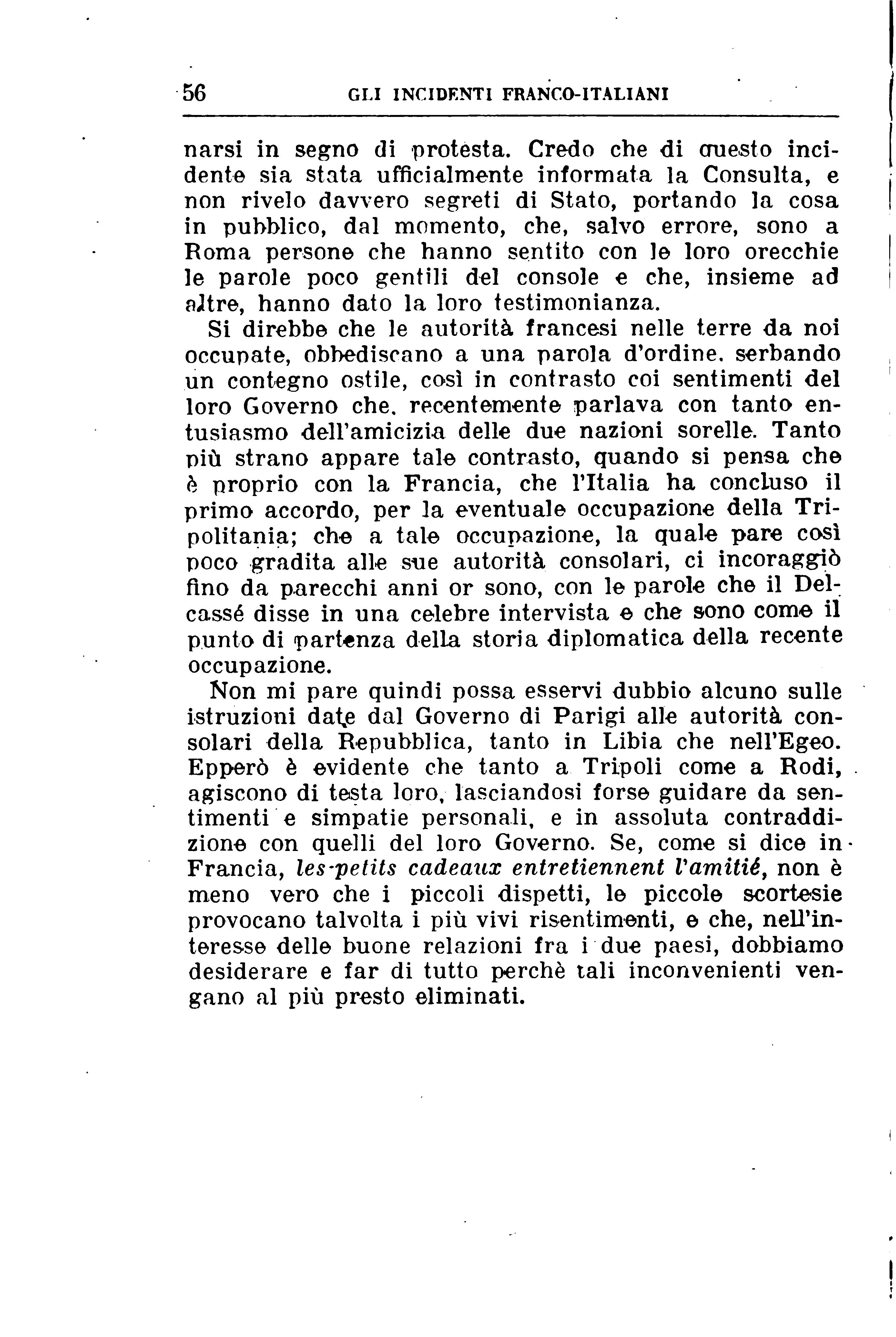 Manifesta 33 nerale. litica del sentimento. Contro Garibaldi. Le parole di un ge Alla vigilia del rinnovamento della Triplice III. I CONSOLI DI FRANCIA. A Tripoli e a Rodi. Il cavas del Con sole. La mehalla del Console Francese. I nostri ufficiali. Troppi reclami. ...e troppi arabi alla porta del Consolato. Le critiche di un console. Il rapporto mandato alla Con sulta Pag.