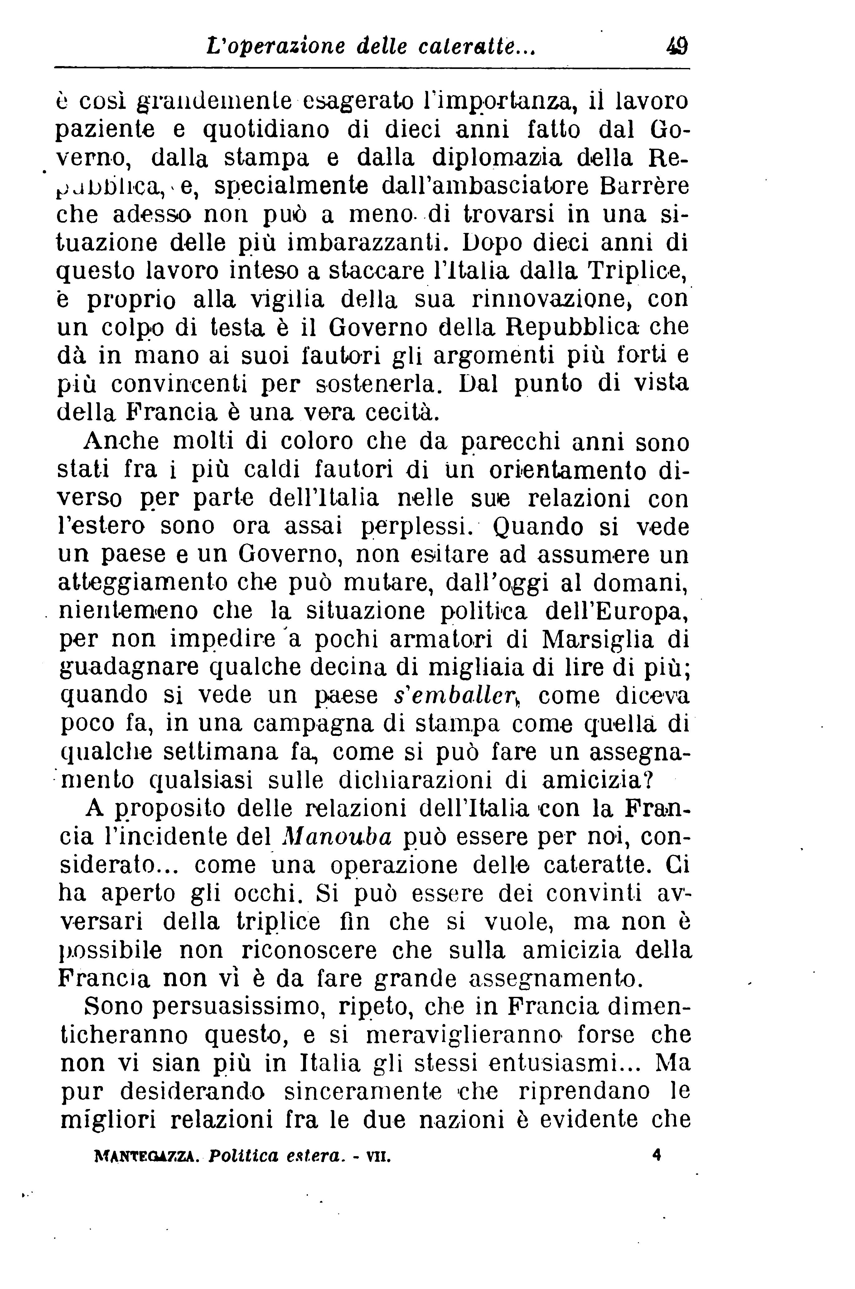 Ho detto ambasciatore. Veramente, da qualche tempo a questa parte, vi arrivano un po' meno. I MANTEGAZZA. Politica estera. - VII. 19.