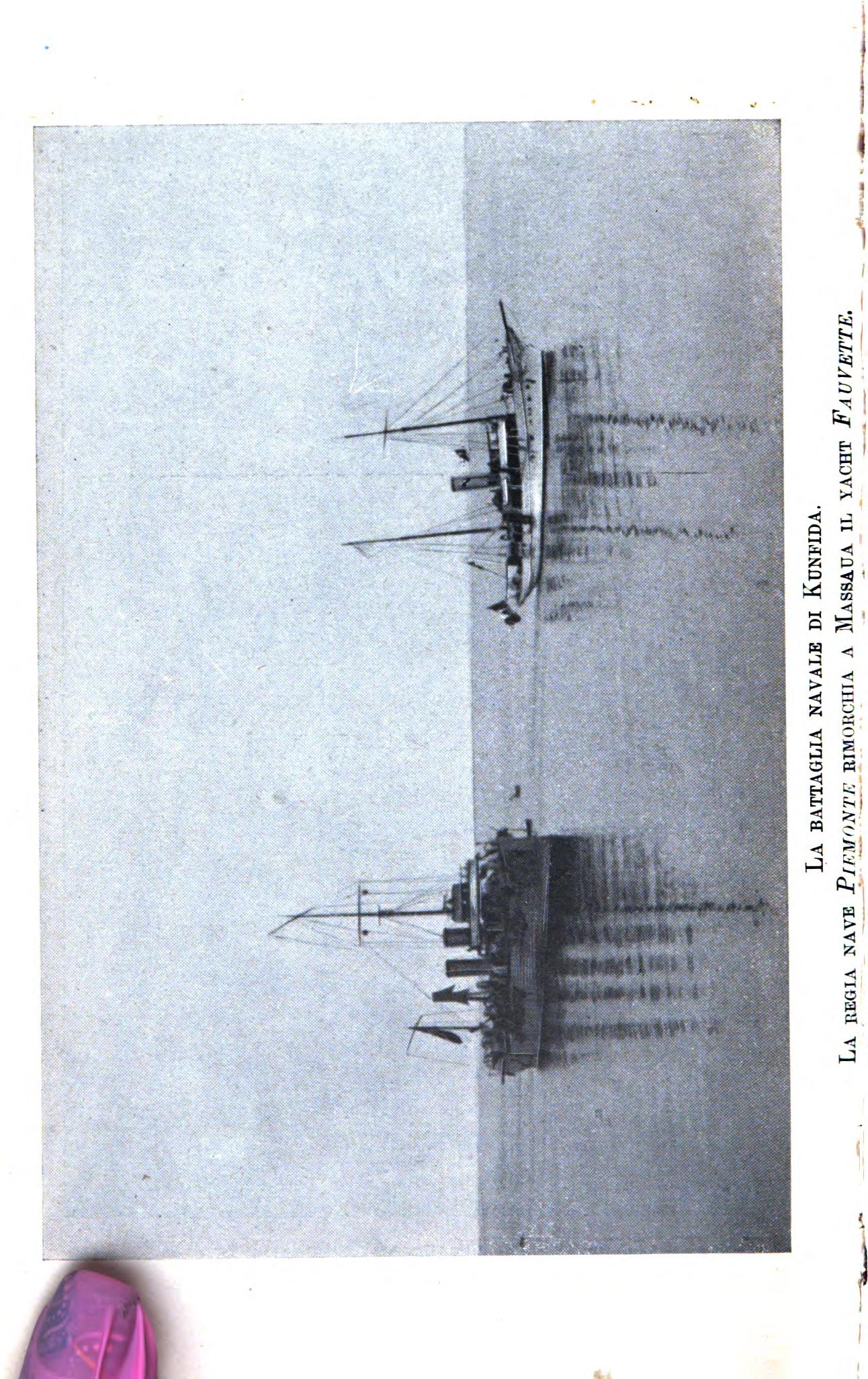La battaglia navale di Kunfida. La Regia nave Piemonte rimor chia a Massaua il yacht Fauvette Guglielmo, Imperatore di Germania, con lo Czar Nicola II al Con vegno di Porto Baltico · Lo sbarco a Sidi-Said delle truppe del generale Vincenzo Garioni Derna (11 febbraio -1912). Cumulo di beduini morti sotto il muro della ridotta Lombardia "