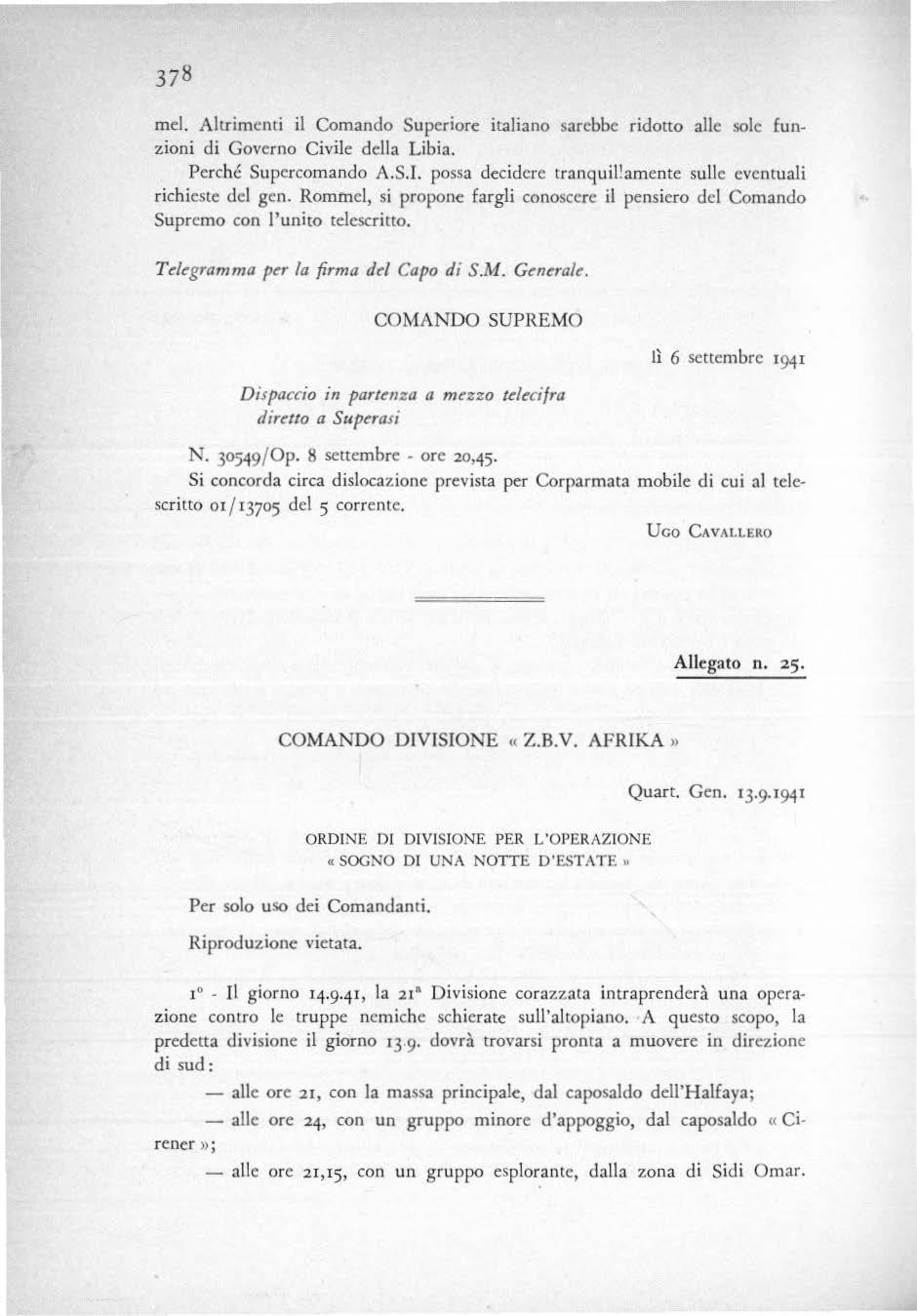 u 25 - Foglio del 13 settembre 1941, d el Comando Divisione « Z.B.V. Afrika >> per l'ope razione ((Sogno di una notte d'estate>>