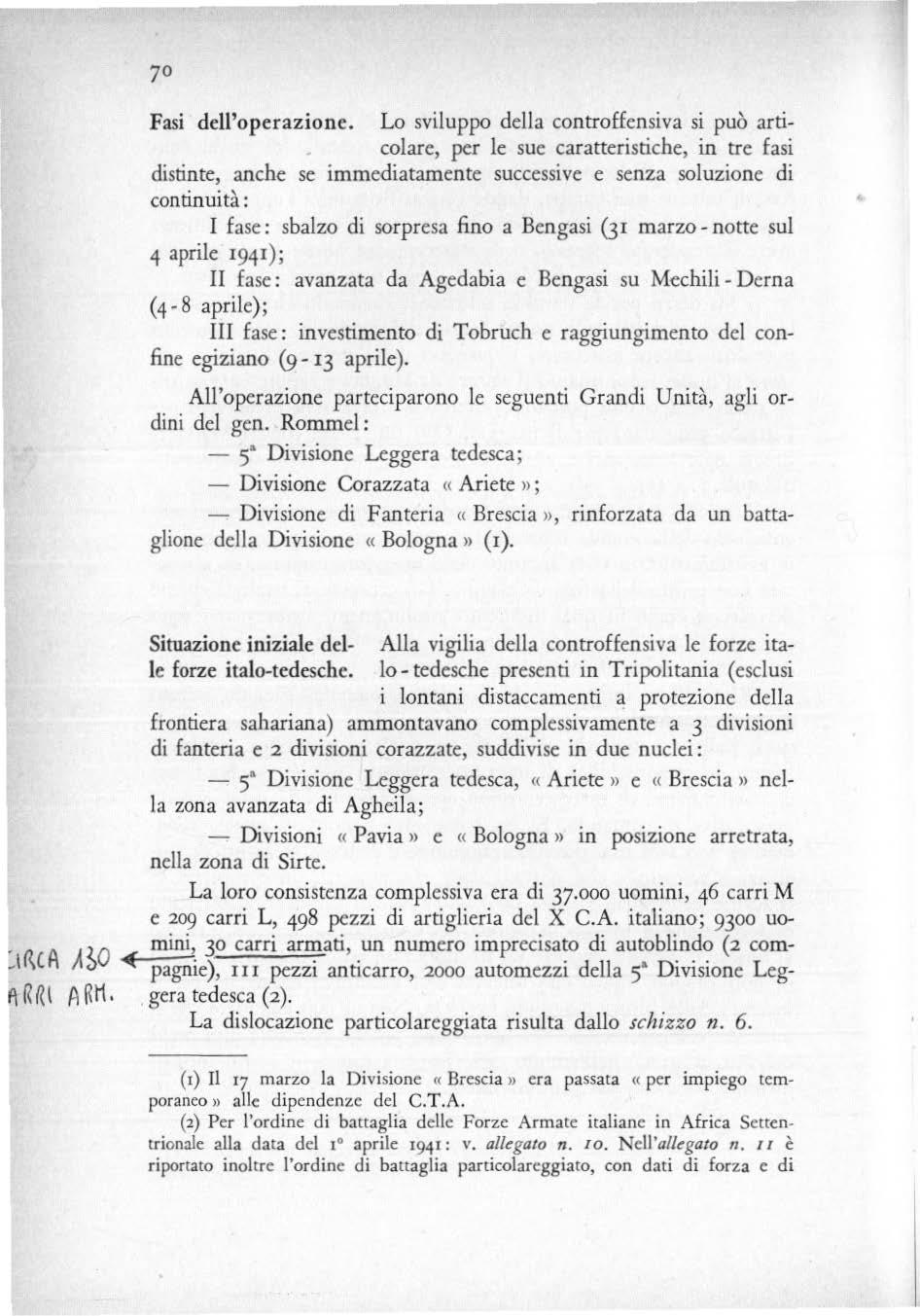 La travolgente ripresa dell'iniziativa, affidata prevalentemente ai mezzi moto- corazzati tedeschi, poco dopo il rovescio mbìto dalla nostra IO" Armata, destò grande risonanza in Italia c all'estero, diffondendo il convincimento che si trattasse di impresa esclusivamente o quasi esclusivamente tedesca (convincimento d'altronde accortamente sostenuto dalla propaganda tedesca e britannica: ansiosa la prima di esaltare, fino a monopolizzarlo, il successo delle proprie armi, avvolte ormai da un alone di invincibilità; sdegnosa l'altra di riconoscere ttna sia pttr modesta componente italiana nella spinta poderosa che aveva annullato di colpo i rimltati della recente vittoria).