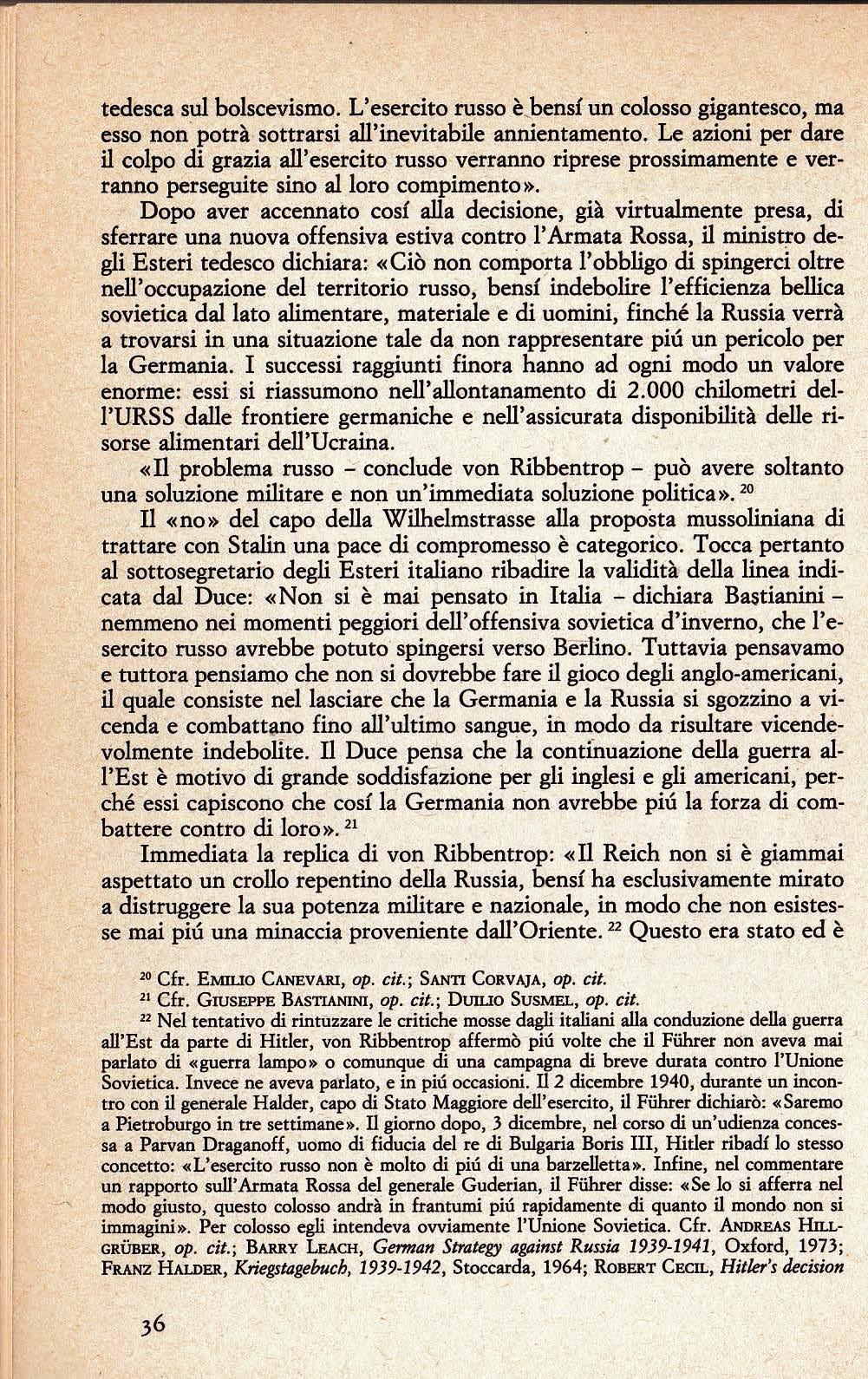 18 Subito dopo il vertice con Molotov, il 18 dicembre 1940, Hitler emanava la Direttiva n. 21: «La Wehrmacht - ordinava il Fuhrer - deve essere pronta a schiacciare la Russia Sovi etica con una campagna rapida ("Operazione Barbarossa") anchC prima dell a conclusione della guerra contro l'Inghilterra». I preparativi per la gigantesca offensiva dovevano e ssere completati entro il 15 maggio 1941. Cfr. A. RE.A.o-O. FISHER, L'abbraccio mortale, Milano, 1988; H A. JACOBSEN , Deutsch e Kriegsftihrung 1939-194.5, Hannover, 1961.