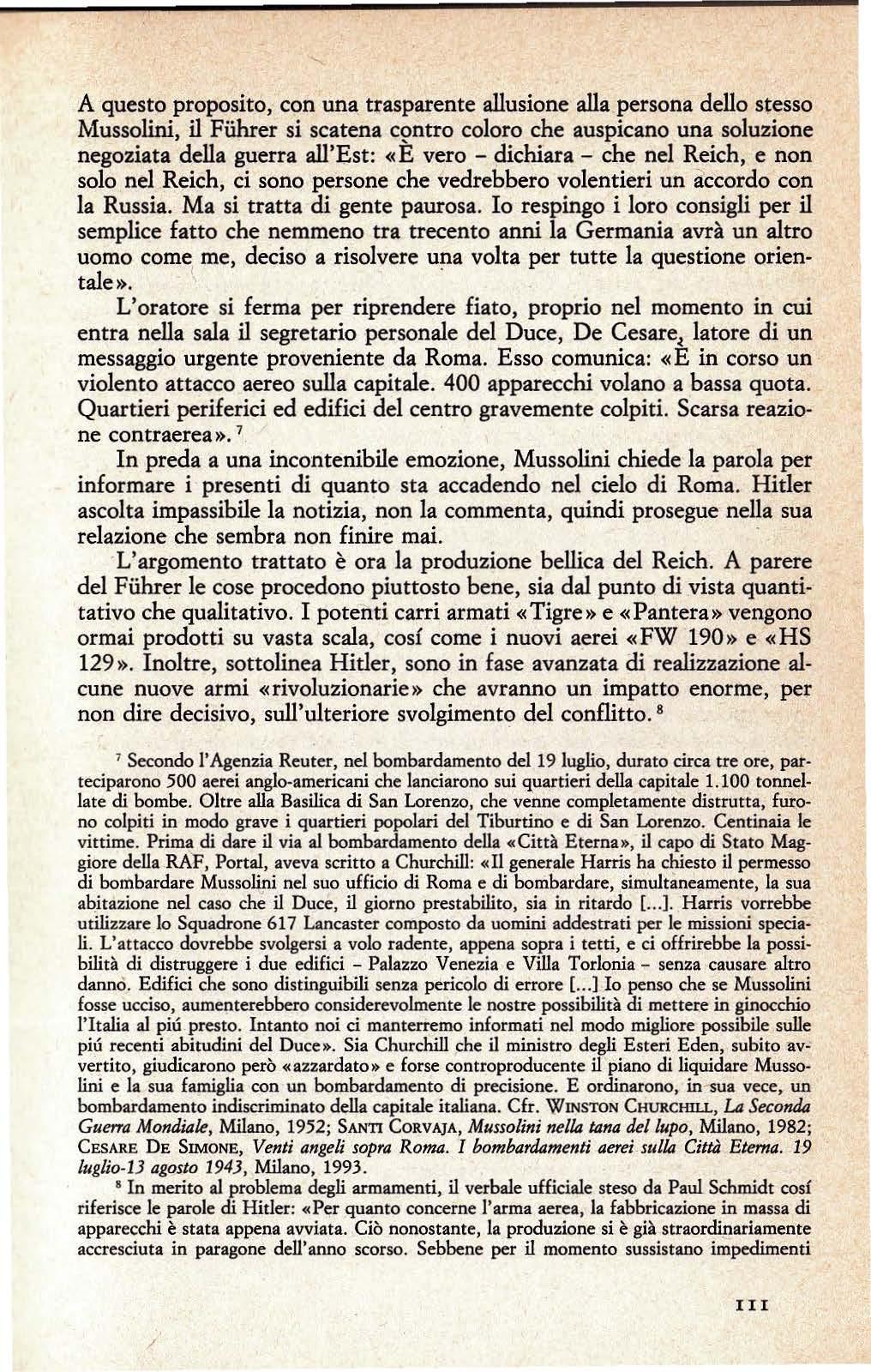 San Fermo di Belluno, lunedl 19 luglio 1943, 109; Roma, martedl 20 luglio, 113; Rastenburg, mercoledl 21 luglio, 114; Roma, giovedl 22 luglio, 115; Roma, venerdl 23 luglio, 116; Roma, sabato 24 luglio, 117.