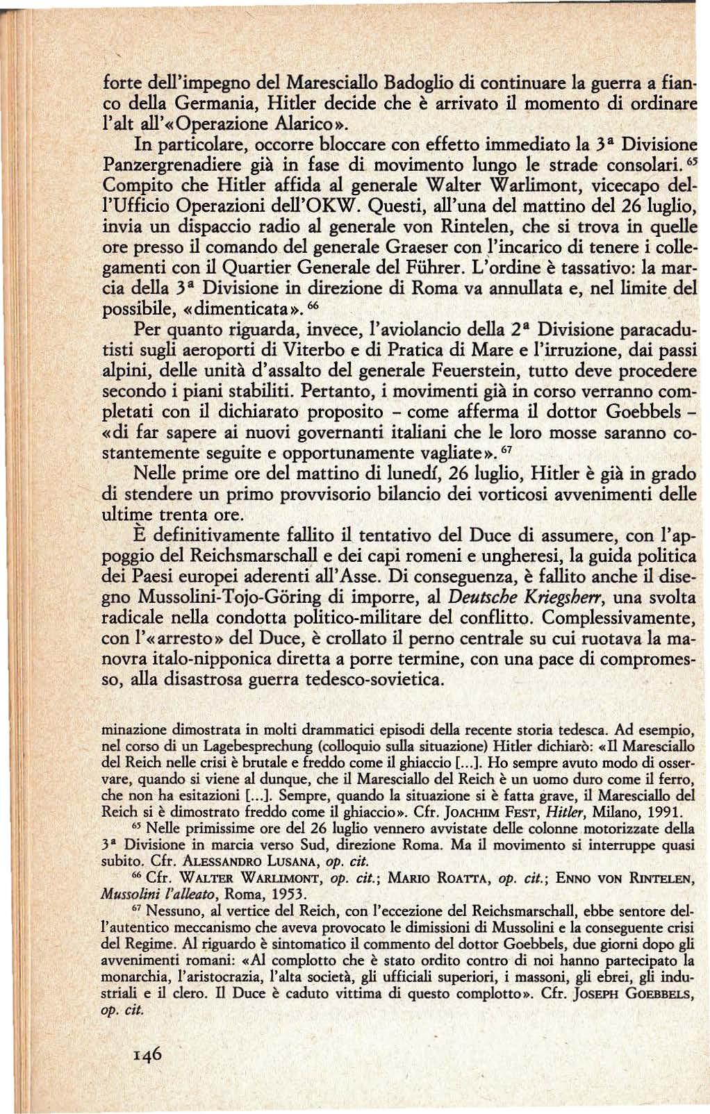 A sostegno di questa ardita ma anche fondata conclusione, Susme/ citava altri importanti documenti (che troveranno spazio nella presente na"azione) e, tra questi, il telegramma inviato il 2 7 luglio 1943, ossia due giorni dopo le dimissioni e il successivo «fermo » di Mussolini , dall'ambasciatore a Roma van Mackensen al ministro degli Esteri del Reich, van Ribbentrop.