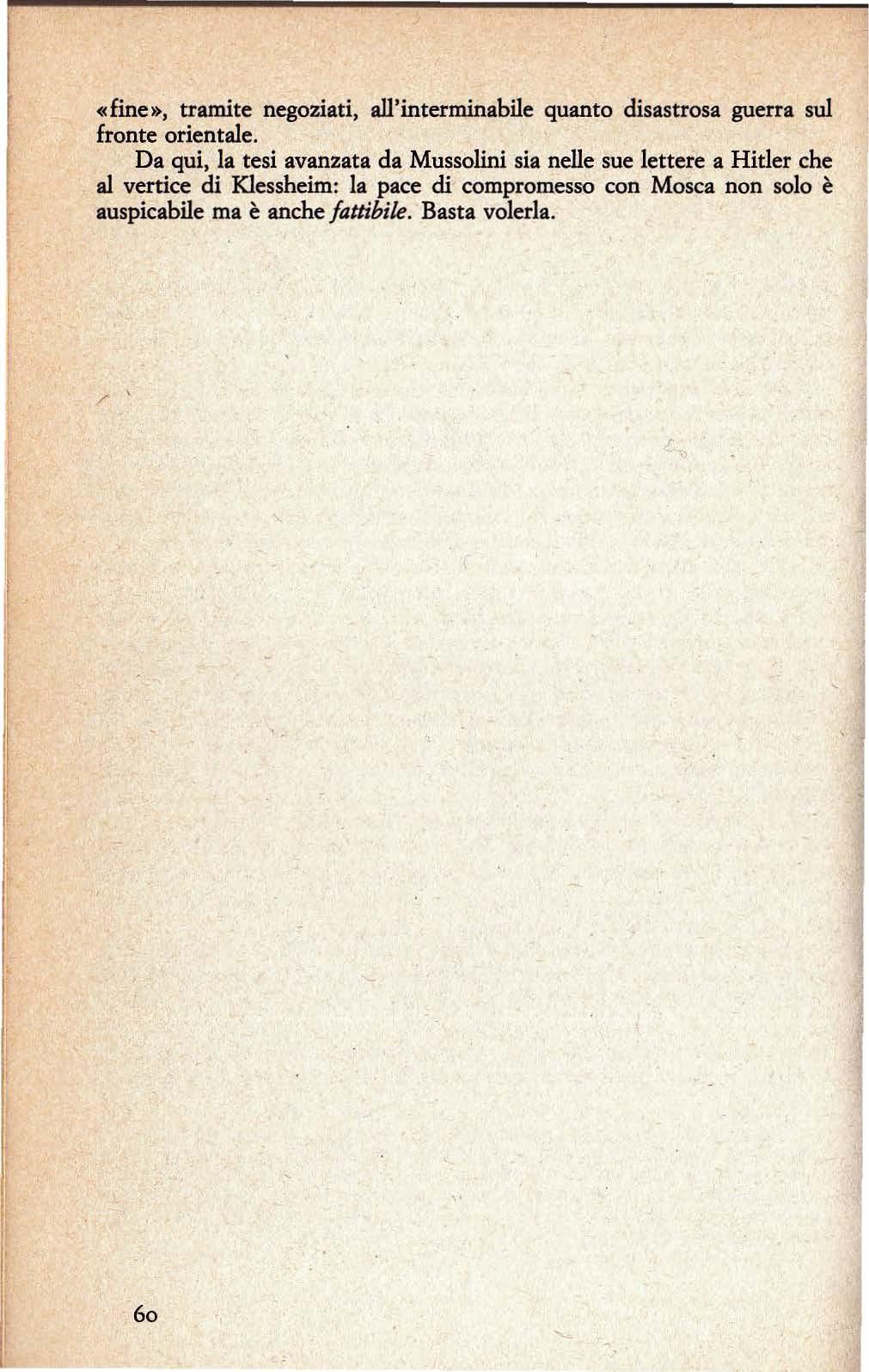 1942, in cui l'addetto militare presso l'Ambasciata tedesca a Roma, generale Enna van Rintelen, comunicava a/l'Oberkommando der Wehrmacht il riassunto del colloquio avuto con Mussolini la sera del 6 novembre: «Al termine della conversaziane sulla situazione militare, il Duce mi ha detto: "Vorrei esprimerle la mia opinione, e cioè che noi dobbiamo fare una pace separata con la Russia al piu presto possibile, altrimenti il corso della guerra diverrà troppo pesante. Lo dirò al Fuhrer alla fine di novembre"».