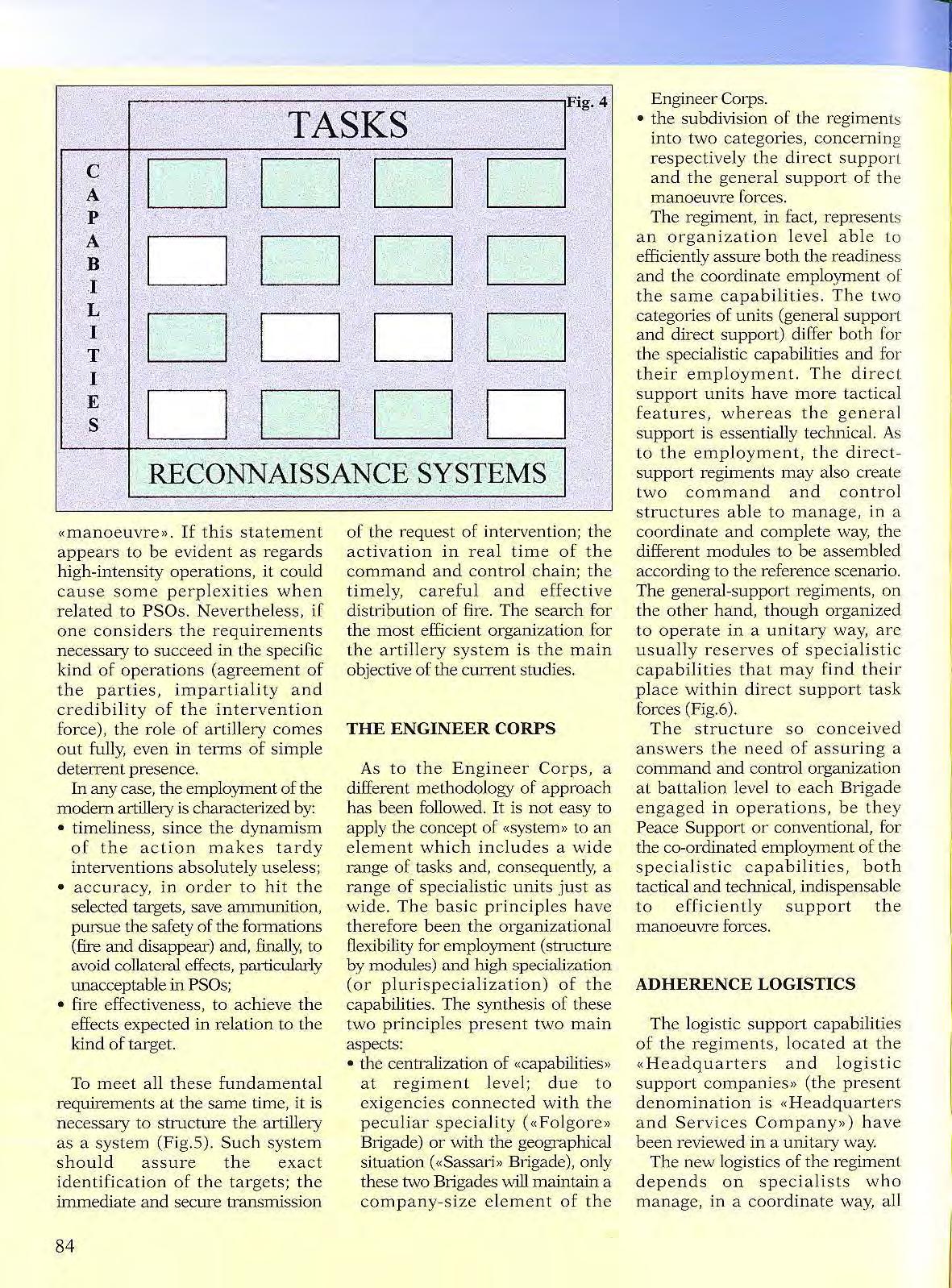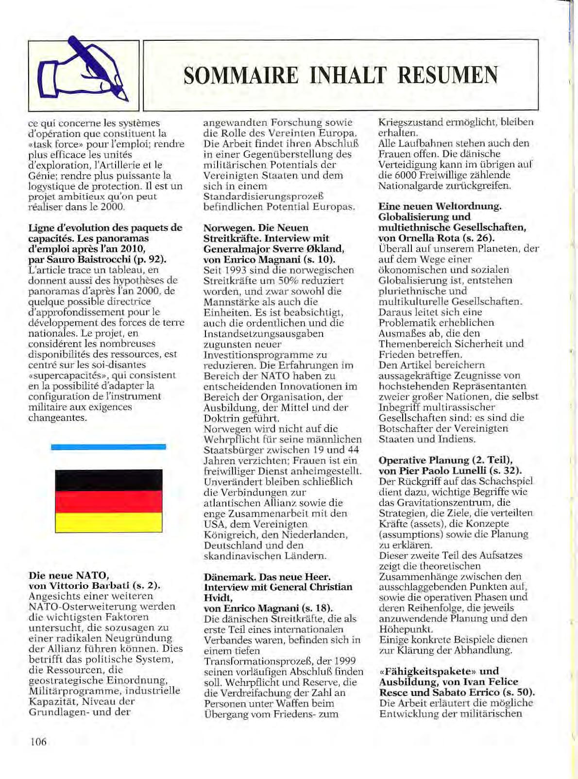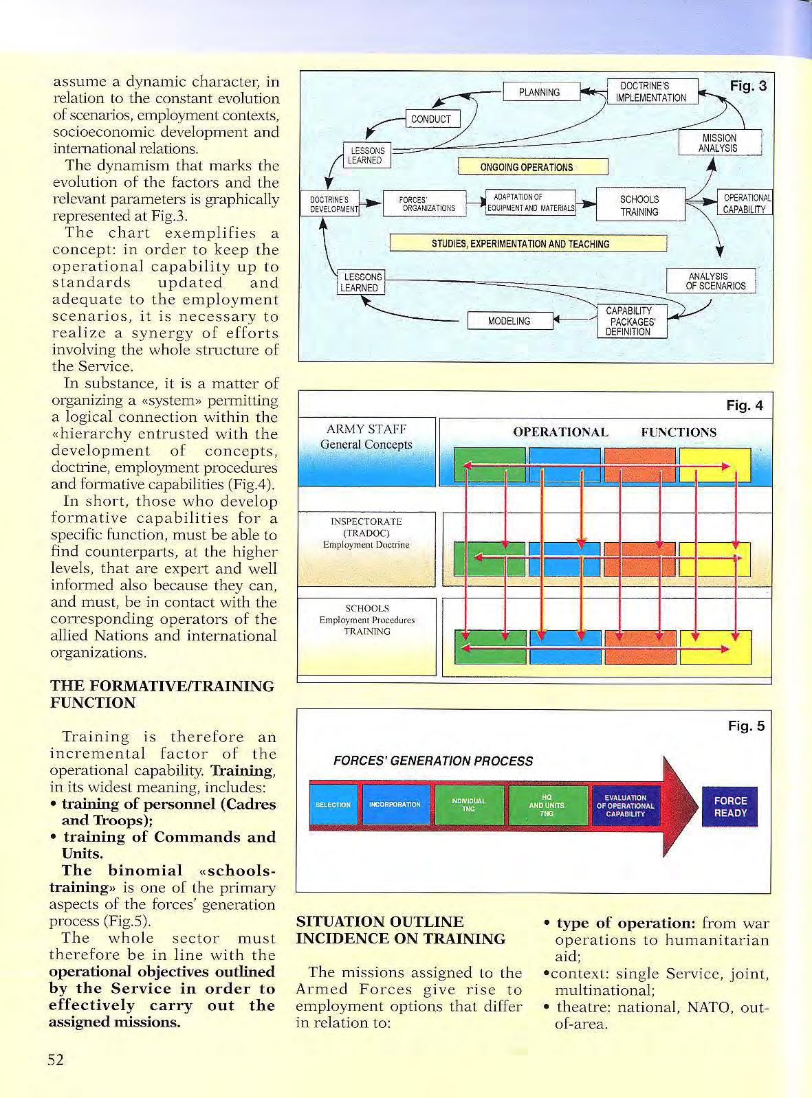 ligne d'evolution d es paquets de capacites. Les panoramas d' e mploi apres I'an 2010, par Sauro Baistrocchi (p. 92). L'article trac e u n tableau, e n donnent aussi des hypotheses d e panoramas d'apres l' an 2000, de quelq uc poss i ble directrice d'appro fondi ssement pou r le deve loppement d es forces de terre n at io nal es. Le proj et, e n consi d e rent les n ombrc u ses disponib ilites d es resso urces, est centre sur les soi-d isantes «s u per capacites», qui consistent en la possib ilite d'adapter la configu ra tion de !'instrument milita ire aux ex igences ch<mgeantes.