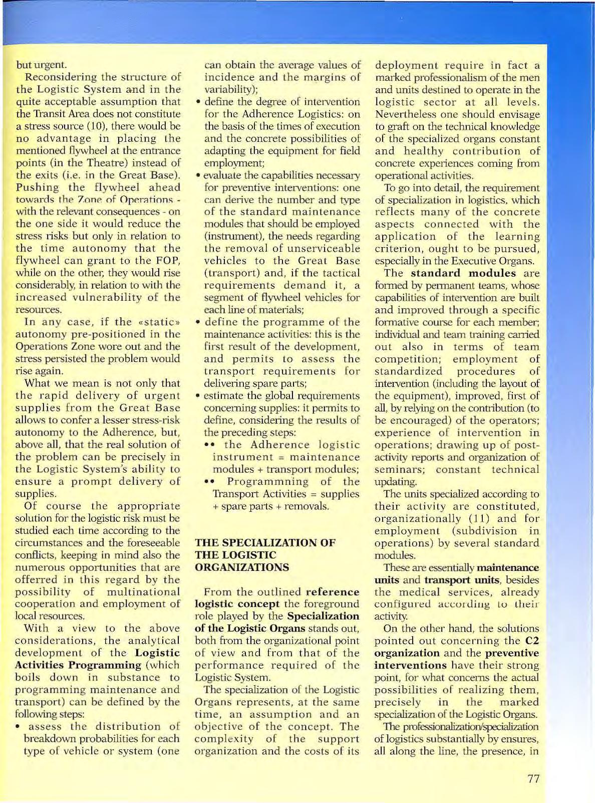 Finally, the specialization of the Logistic Organizations permits to effectively deal with the complexity of the Support organization and the cost of its deployment, through a mar·kecl professionalism of the men and units entrusted w .ith the operation of logistics at all levels.