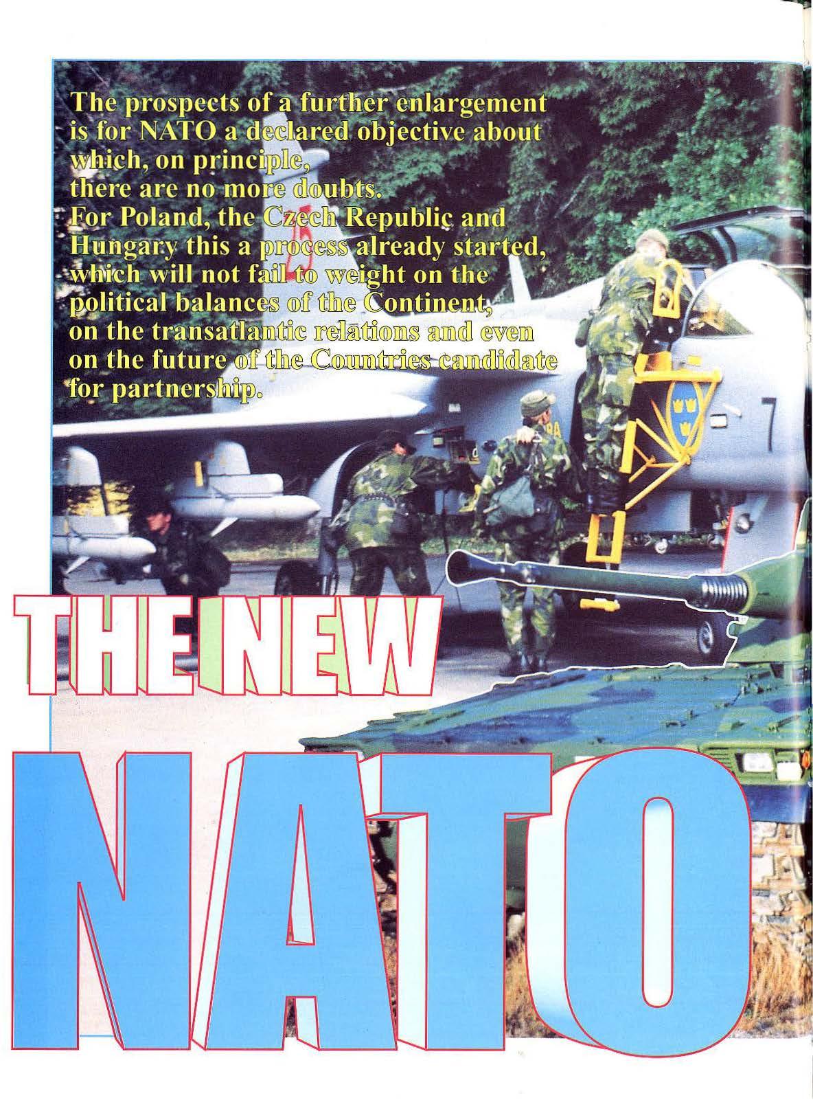 La nueva OTAN, de Vittorio Barbati (p. 2). Para otro ampliamento hacia Este de la OTAN , se analizan Ios principales factores que podrfan llevar a una definiti va re fondaci6n de la Alianza; regime politico, rccursos, colocaci6n geoes trategica, pro gramas militares , ca pacidad in d u strial, nivel de busca ve rd ad era, ro l de la Europa Unida E l trab ajo d e co ncluye con una comparaci6n entre el potencial m ili tar de Ios Estados Unidos y lo europeo que es ta para estandardizarse.
