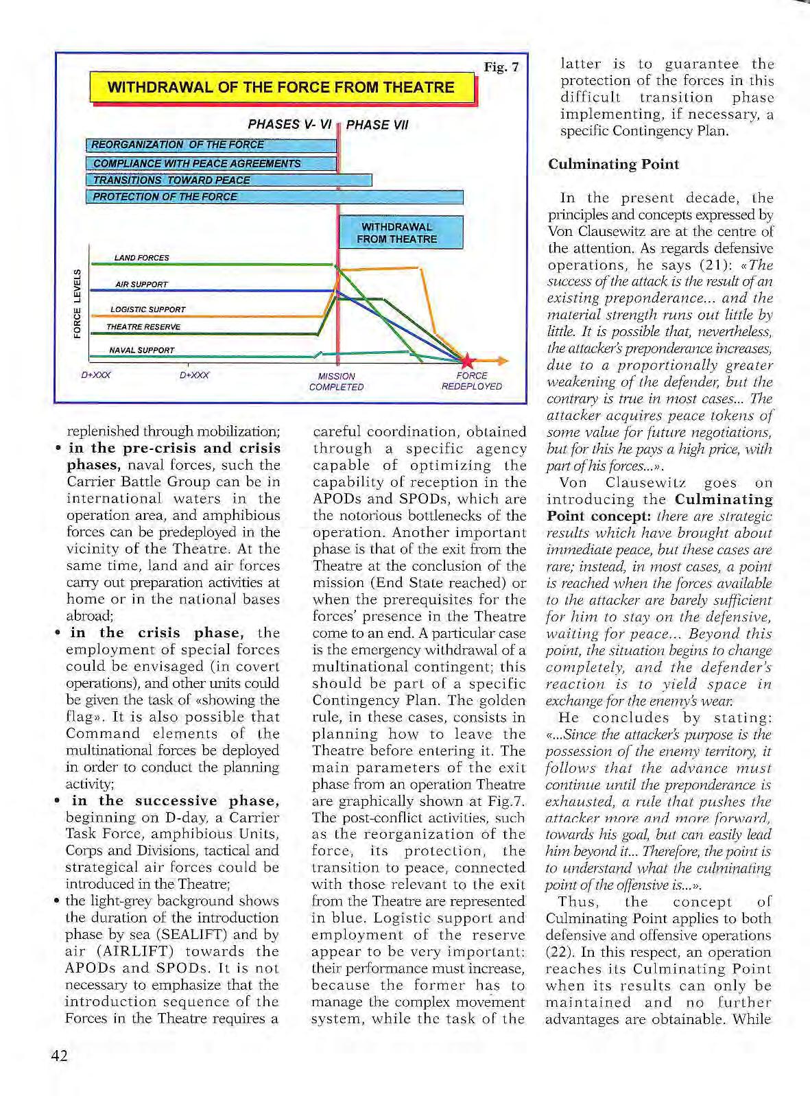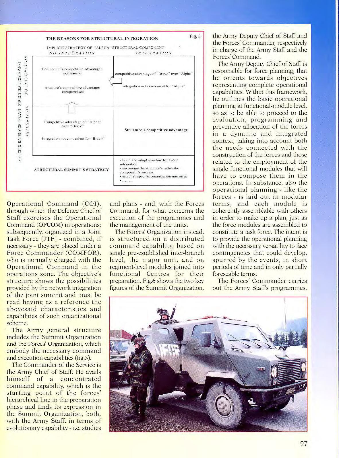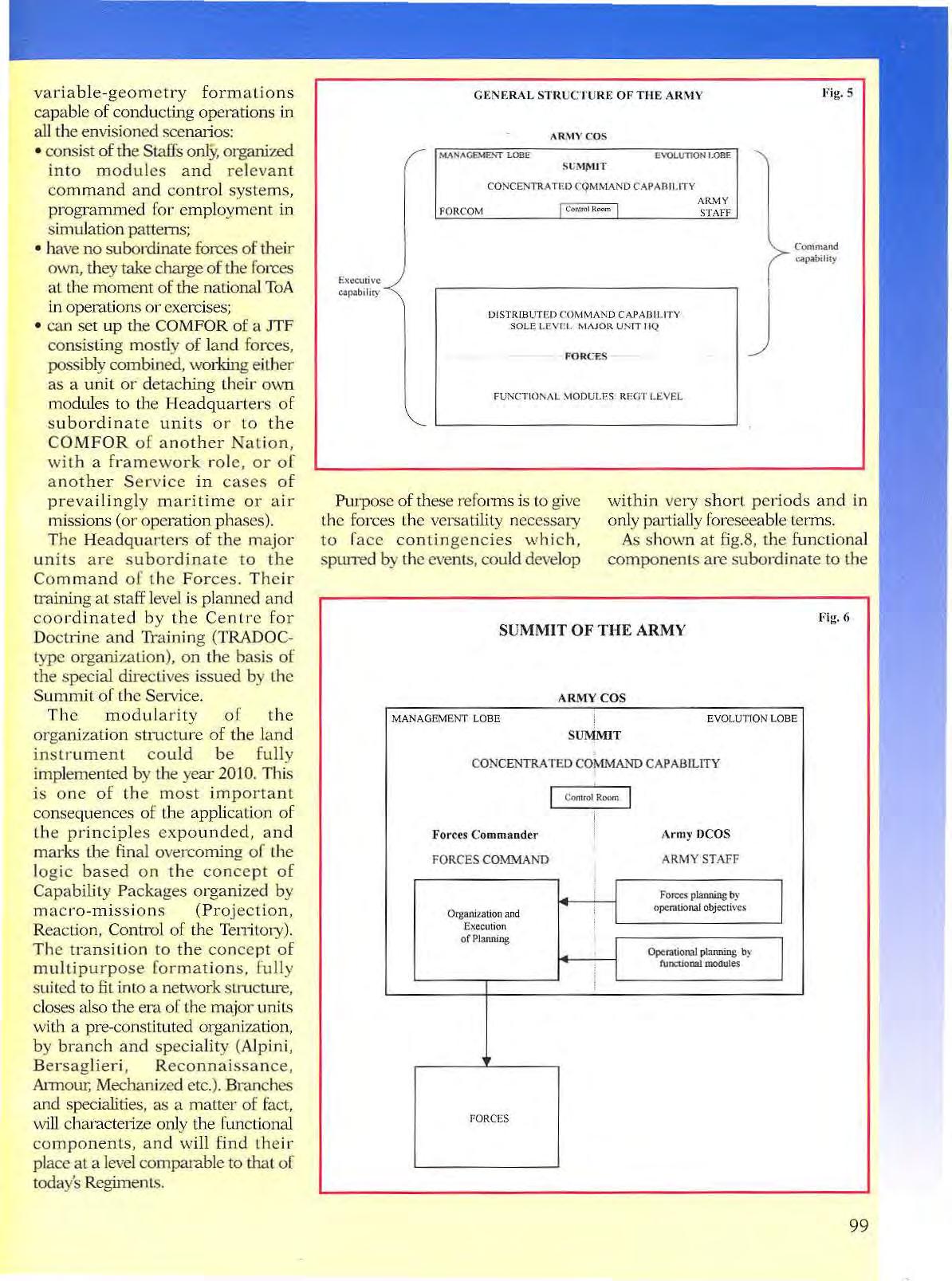 In conclusion, the result s of th e studies and researches conducted so far have led t o the co nviction that to run aft er scen ario s marke d by repeated and not always foreseeable cha nges is neith er productive nor co mp atib le wi t h t h e in stitu tio na l rea lit y of the Army I t wou ld b e nec essary to invert the o rder of causality of the capability-scenarios, but this is a hyp othetical prerogat ive of the political leve l o nly.