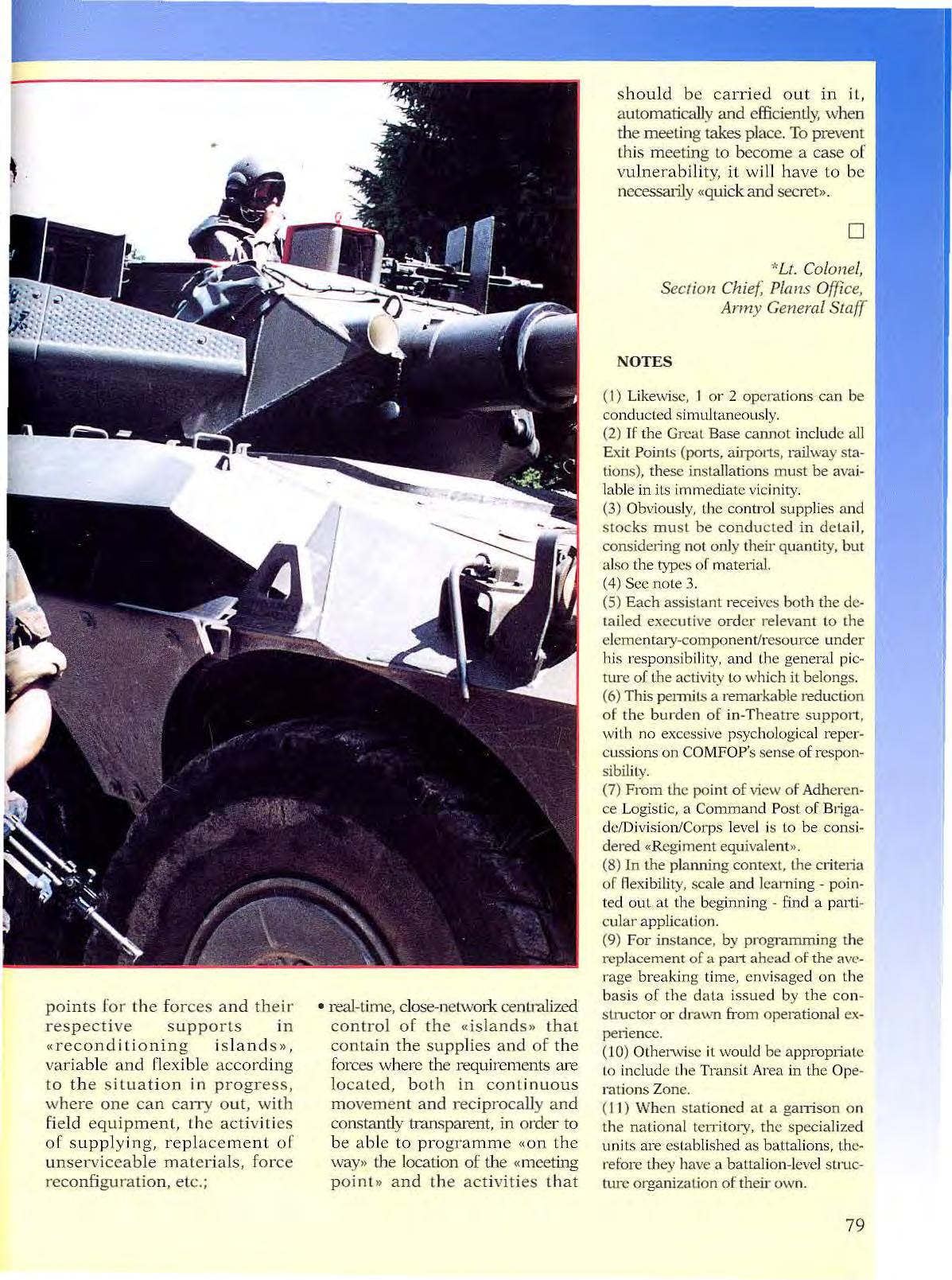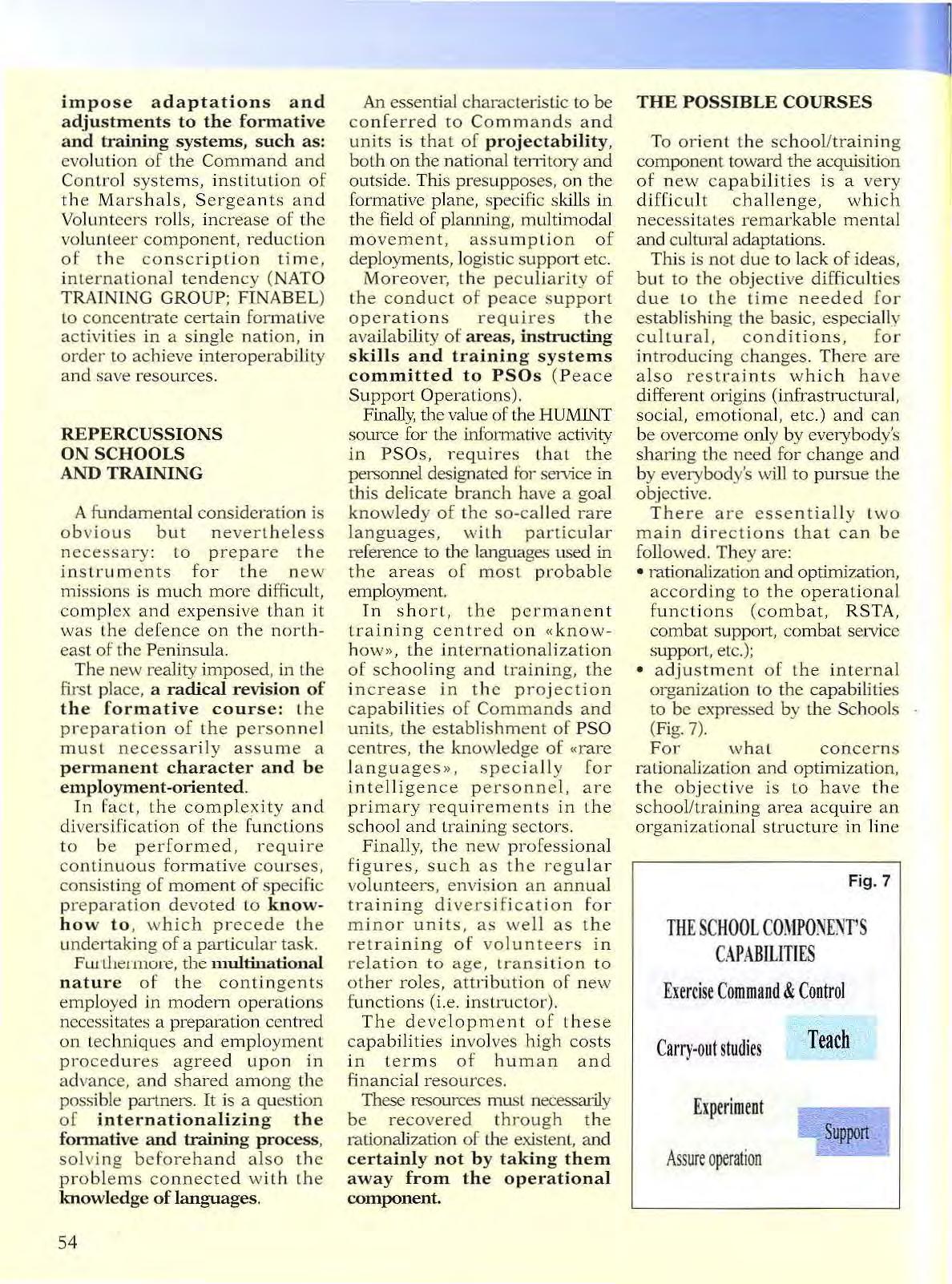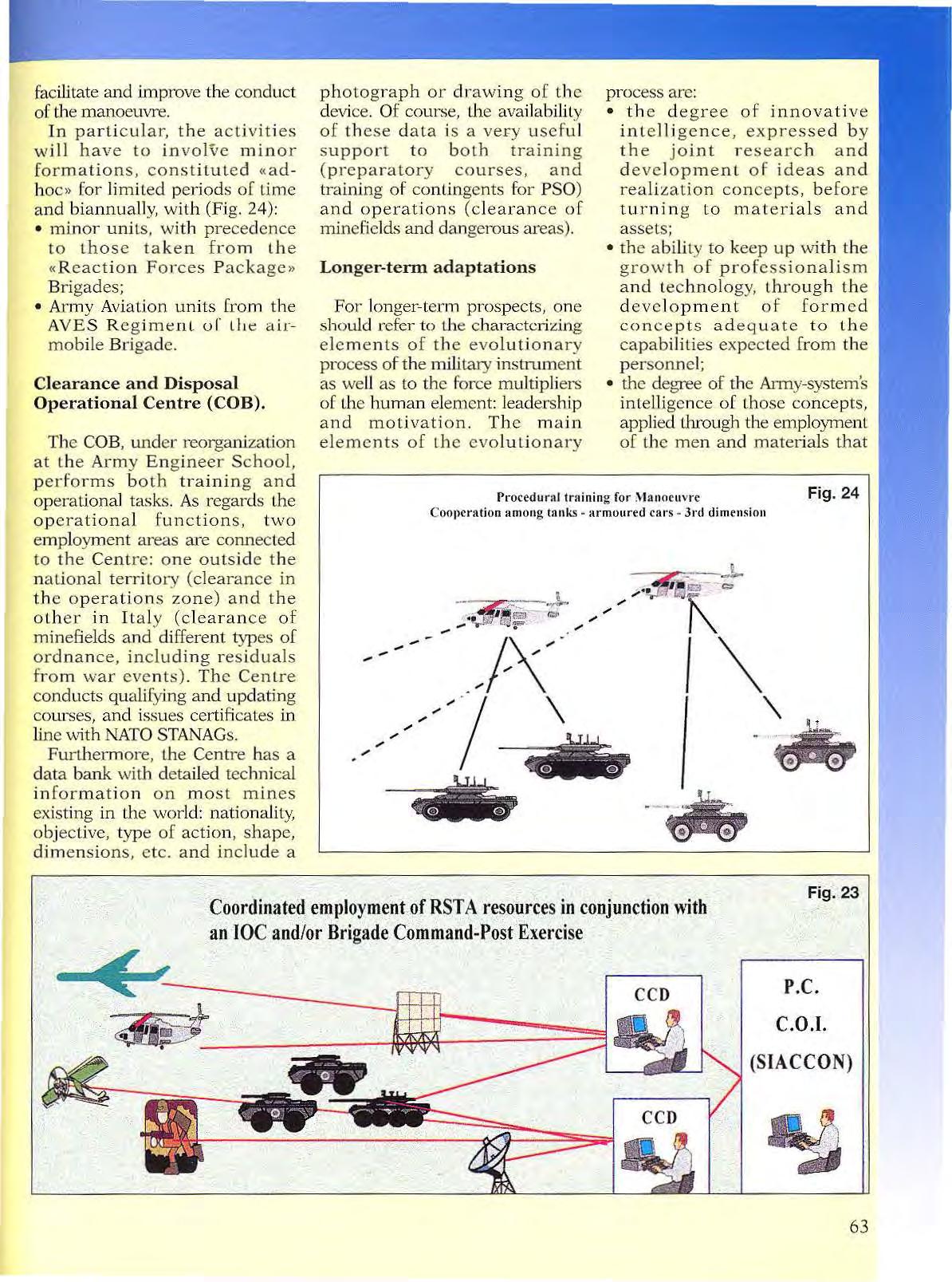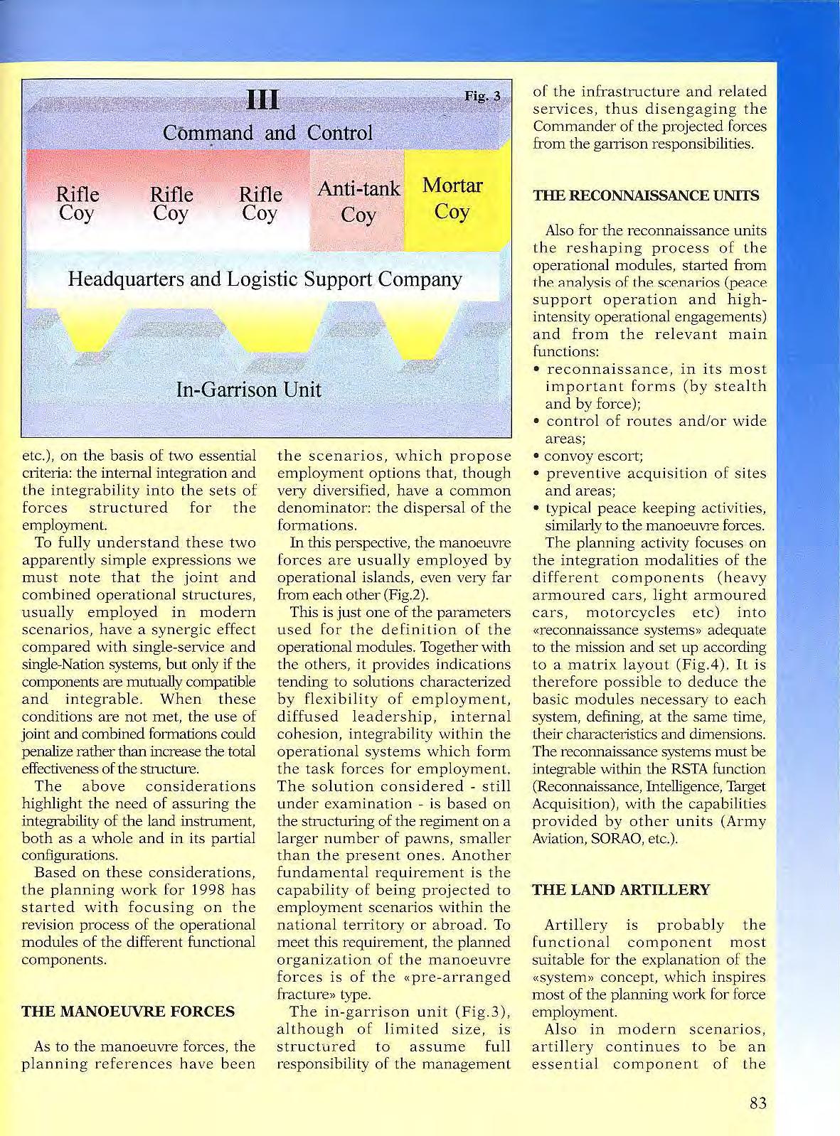 cc qui conceme le.s .sy.s t emes d'operation q u e constituent la «task force >> p o u r l'emploi; re nd re pl u s e ffic a ce les unites d'exploration, l'A r till er ie e t le Genie; r endre plus p u issa nt e la logyst iq u e de p r otection. Il est u n projct amb it ie u x qu'on peut realiser da n s le 2000.