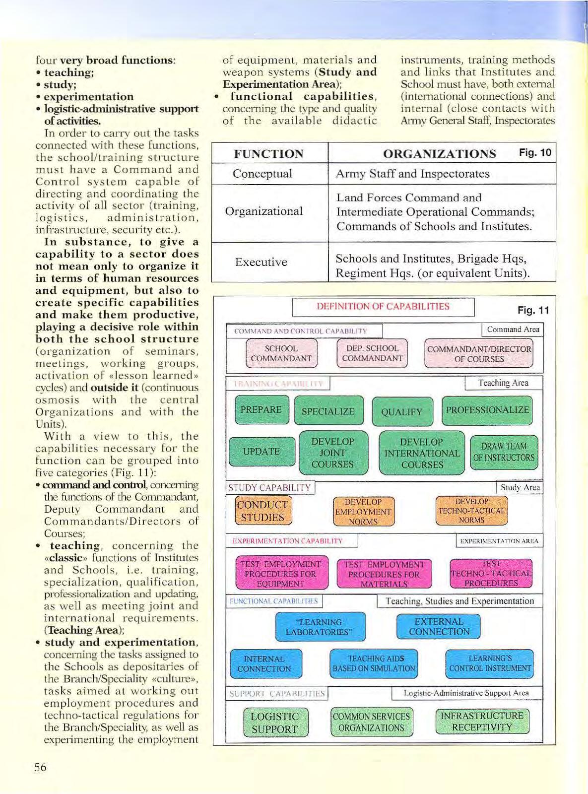 Ce travai l p arle de la possible evolu tion de !'organisation des eco les e t de l'instruction militaire, une co rnp osa nl e de s upport essc nt ie ll c de !'instrum e nt operation n e l. Tout ya a le but de rea liser un e syne rgie d'efforts qu e perl11et d e creer une liaison log iqu e, a l' inter ie ur du sy steme, parmi lcs precedes d'emploi , la doctr in e e t les capacites de format ion.