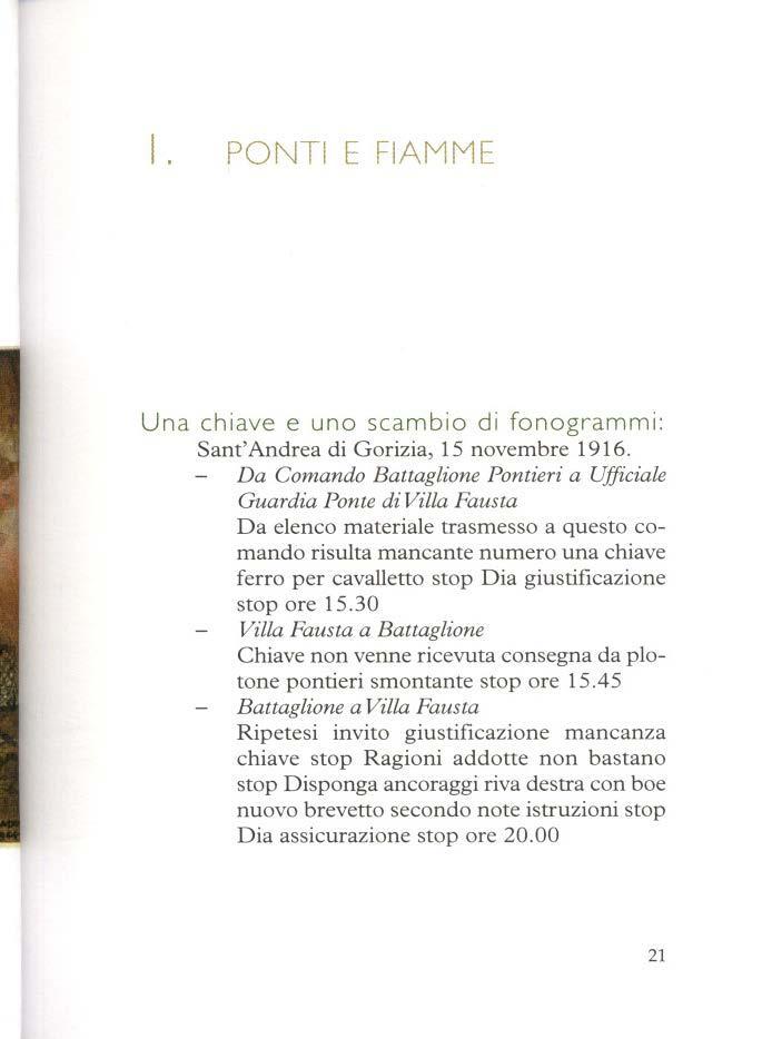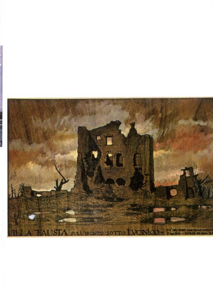 in ambito militare, riservando Caccia Dominioni a quello civile - raggiunga il fronte. Sant' Andrea di Gorizia, Gabria Alta, Cascina Medeol e Villa Fausta sono le tappe delle settimane fra la fine delJ'cstate e i primi di novembre del 1916 , con ponti gettati sull'Isonzo, distrutti dall'artiglieria austriaca, gettati di nuo\'o, squassati e portati via dalle piene d 'a utunno .