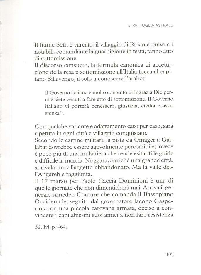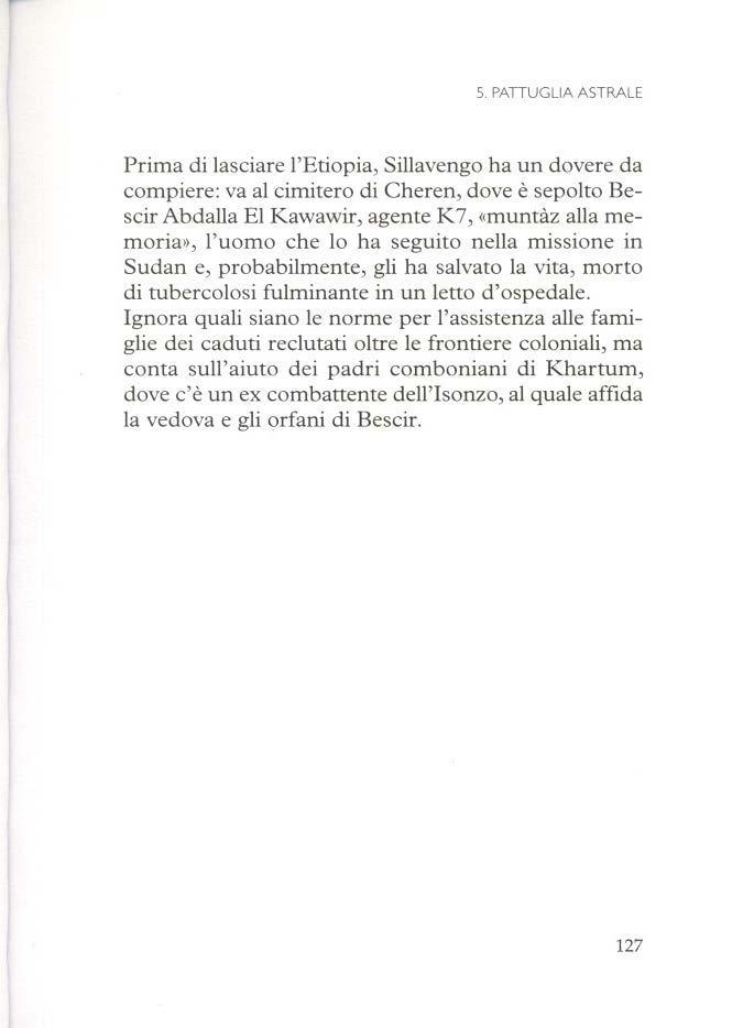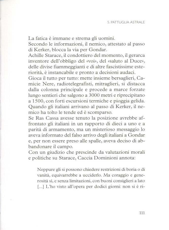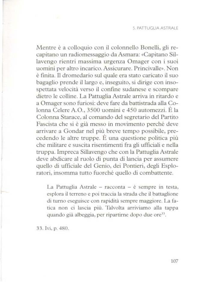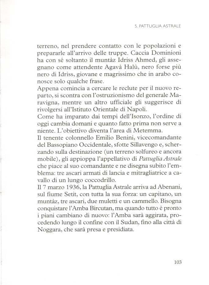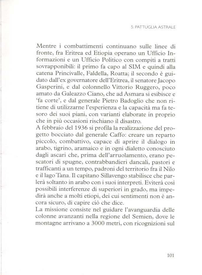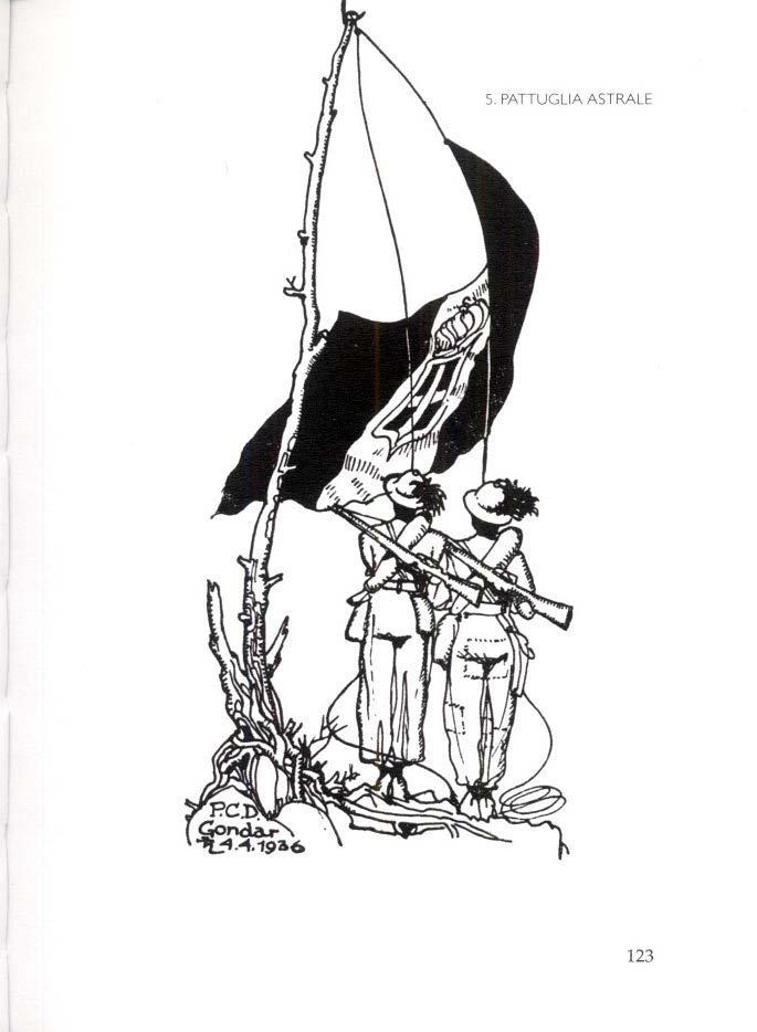 Animato da un codice d'onore ispirato a modestia eriservatezza e forte di u n bagaglio di gran dissima solidar ietà e profonda conoscenza de l mondo in c u i operava, ha ricoperto anc h e l ' incarico di Coman dante de ll a Pattug li a Astra le, potendo apprezzare le qua l ità de ll e truppe co lonjali, uomjni da lui definiti eccez io n ali e consegnati alla memoria attraverso una serie di immagini che ne perpetuano sia gli aspetti più minuti e semplici sia i momenti solenni ed epici.