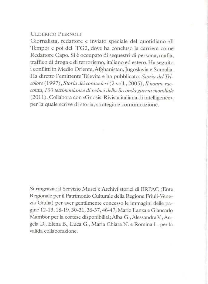 Si ringrazia: il Se r vizio Musei e Archivi storic i d i ERPAC (Ente Regionale per il Patrimonio Culturale della Regione Friuli-Venezia Giulia) per aver gentilmente concesso le immagini delle pagine 12-13, 18-19, 30-31, 36-37, 46- 47; Mario Lanza e Giancarlo Mambor per la cortese d isponibilità; Alba G ., Alessandra V., Angela D., Elena B., Luca G., Maria Chiara N. e Rom ina L. per la valida collaborazione.