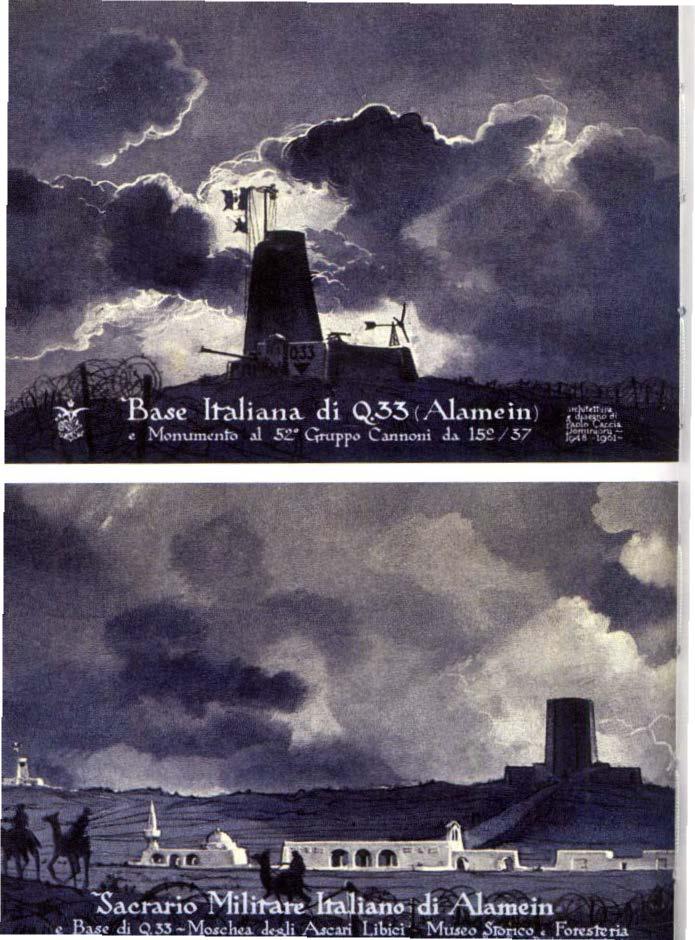 p. 2 00: Cartoline, Base I taliana di Q. 33 (Alamcin); in basso, Sacrario ,\liliwre ftaliano di Alamein ( 1961 ).