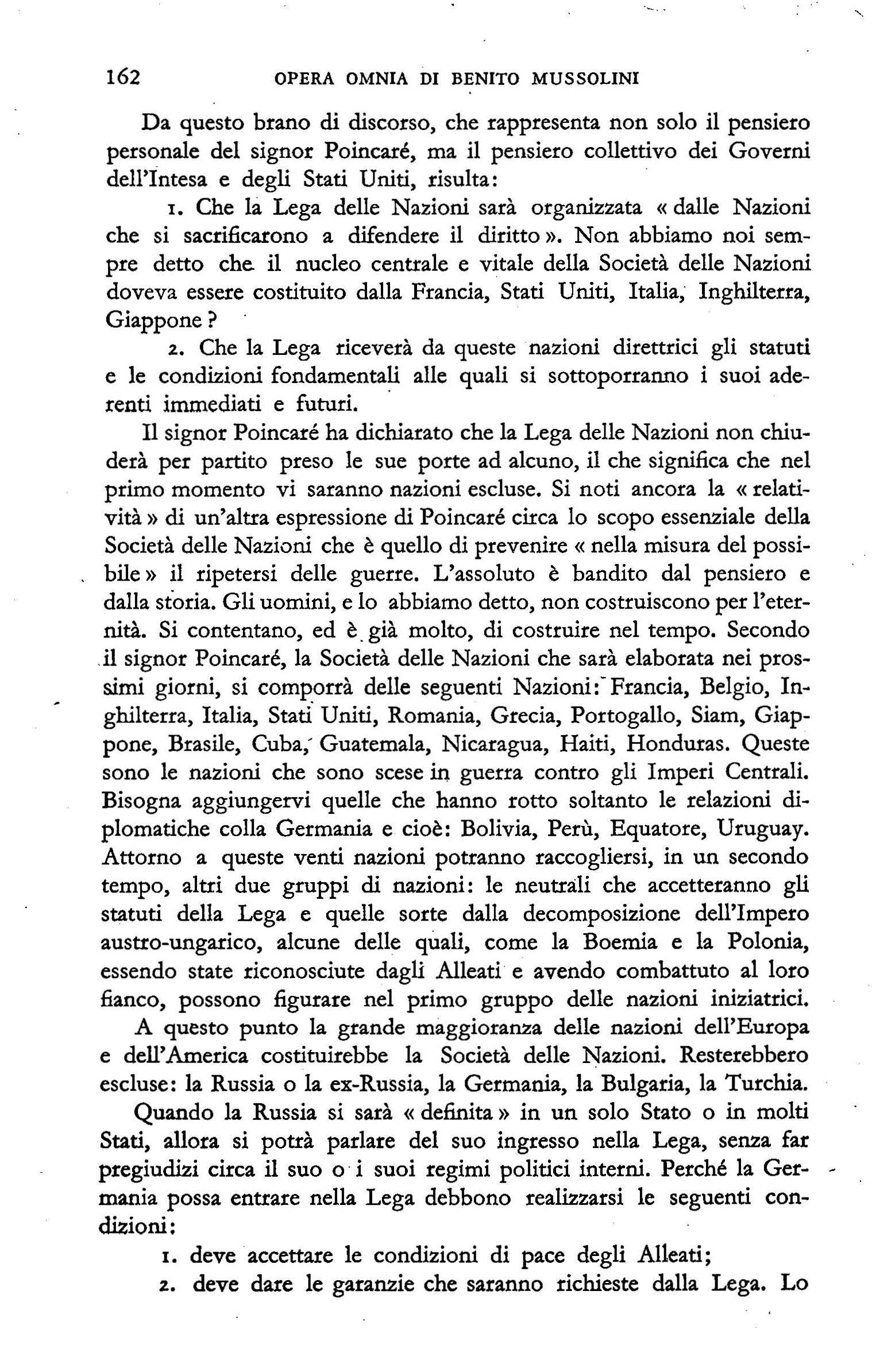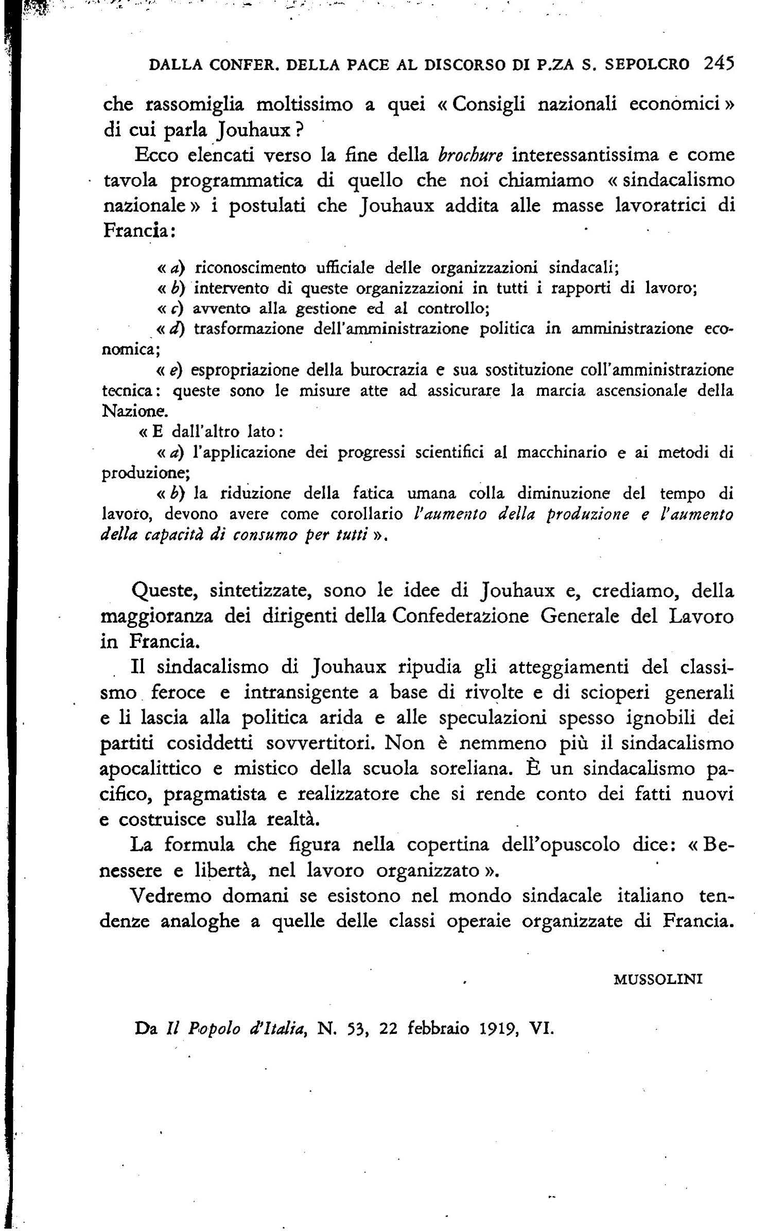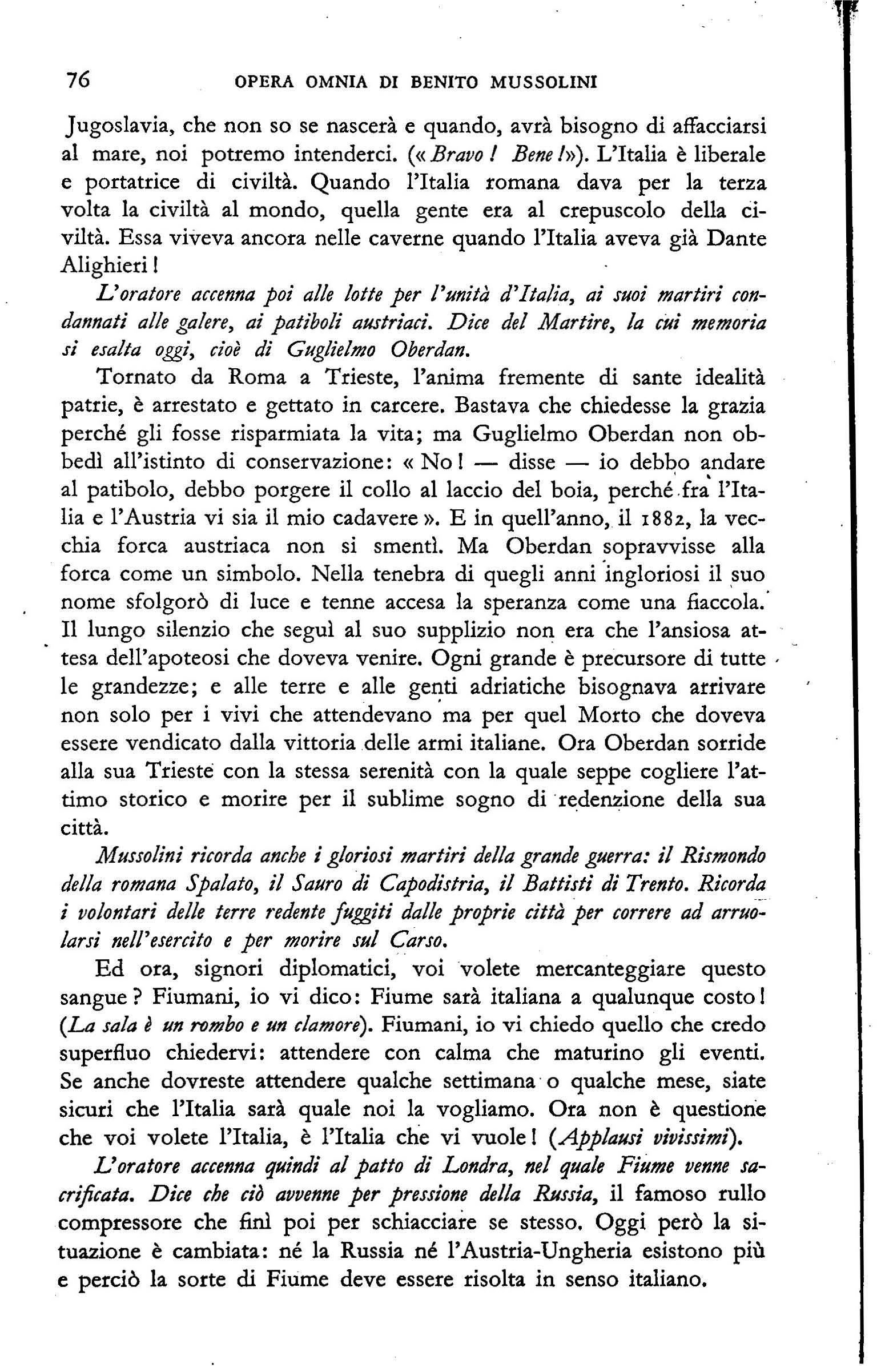 N oi tutti çhe volemmo l'interv ento siamo necessariamente legati al fatto storico che contribuimmo con tutte le nostre forze e tutte le nostre passioni a determinare e siamo quindi legati alla situazione che si è d elineata in conseguenza dell'intervento. Se nostra, in un certo senso, fu la guerra, nostro dev'essere il dopo-guerra, poiché tra l"uno e l'altro evento non esiste soluzione di continuità. Il d opo-guerra deve trovarci in linea, all'avanguardia, noi che volemmo la guerra e la volemmo per ragioni che hanno avuto la più alta, la più p ura, la p iù decisiva delle consacrazioni.