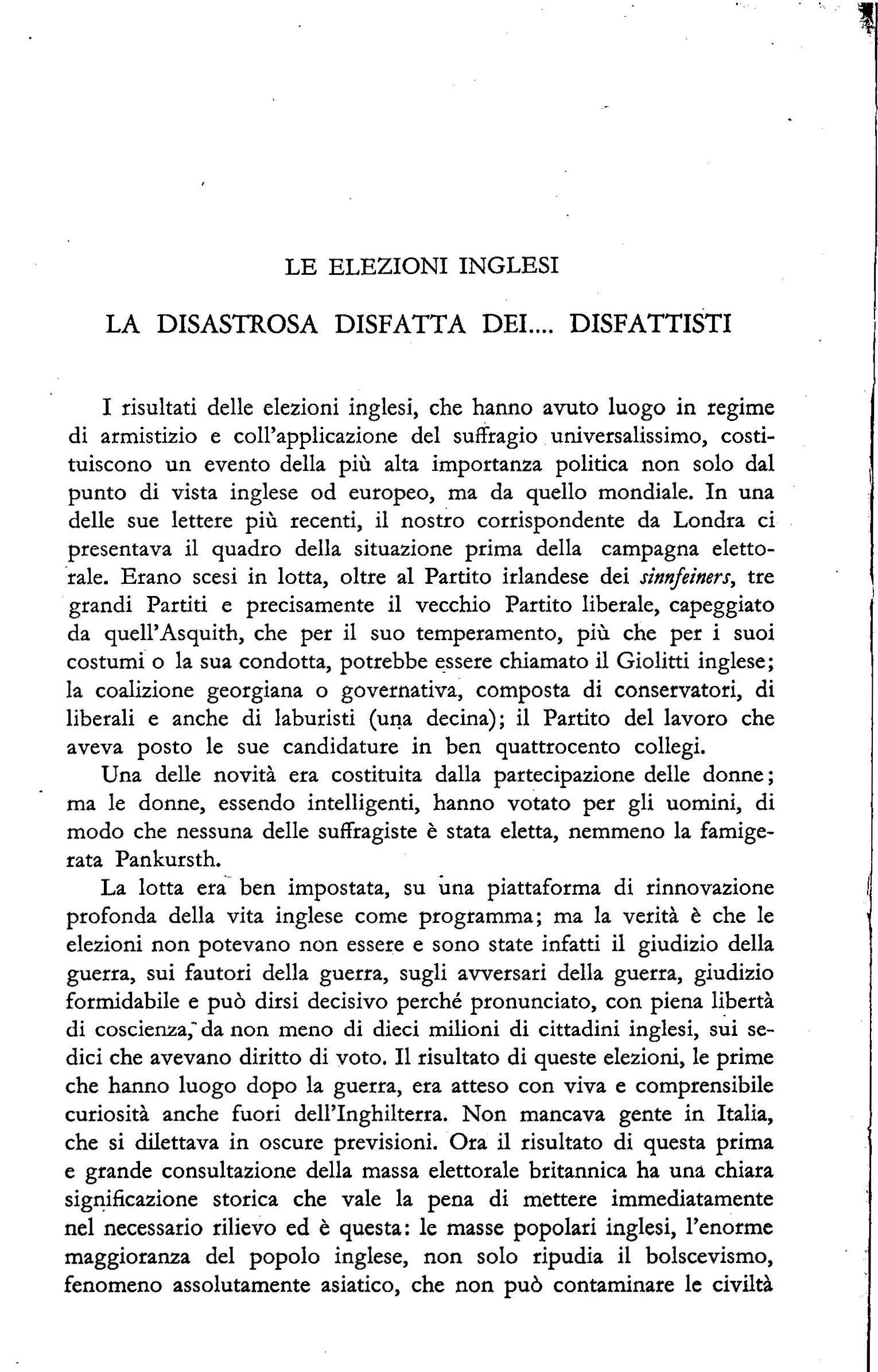Da Il Popolo d'Italia, N 316, 14 novembre 191 8, V.