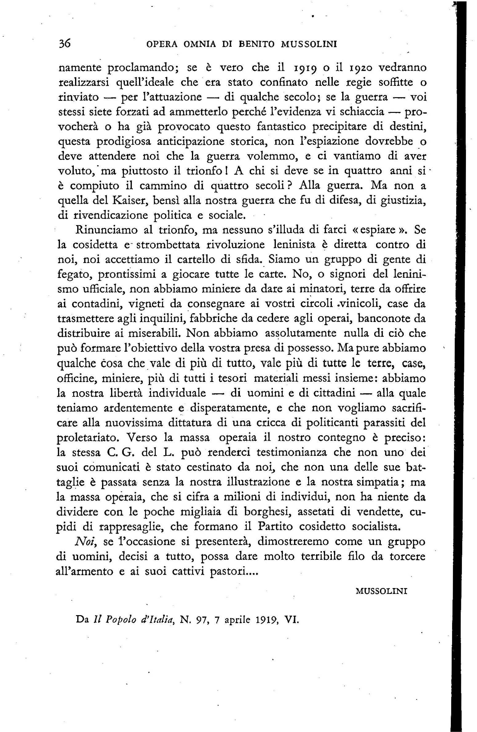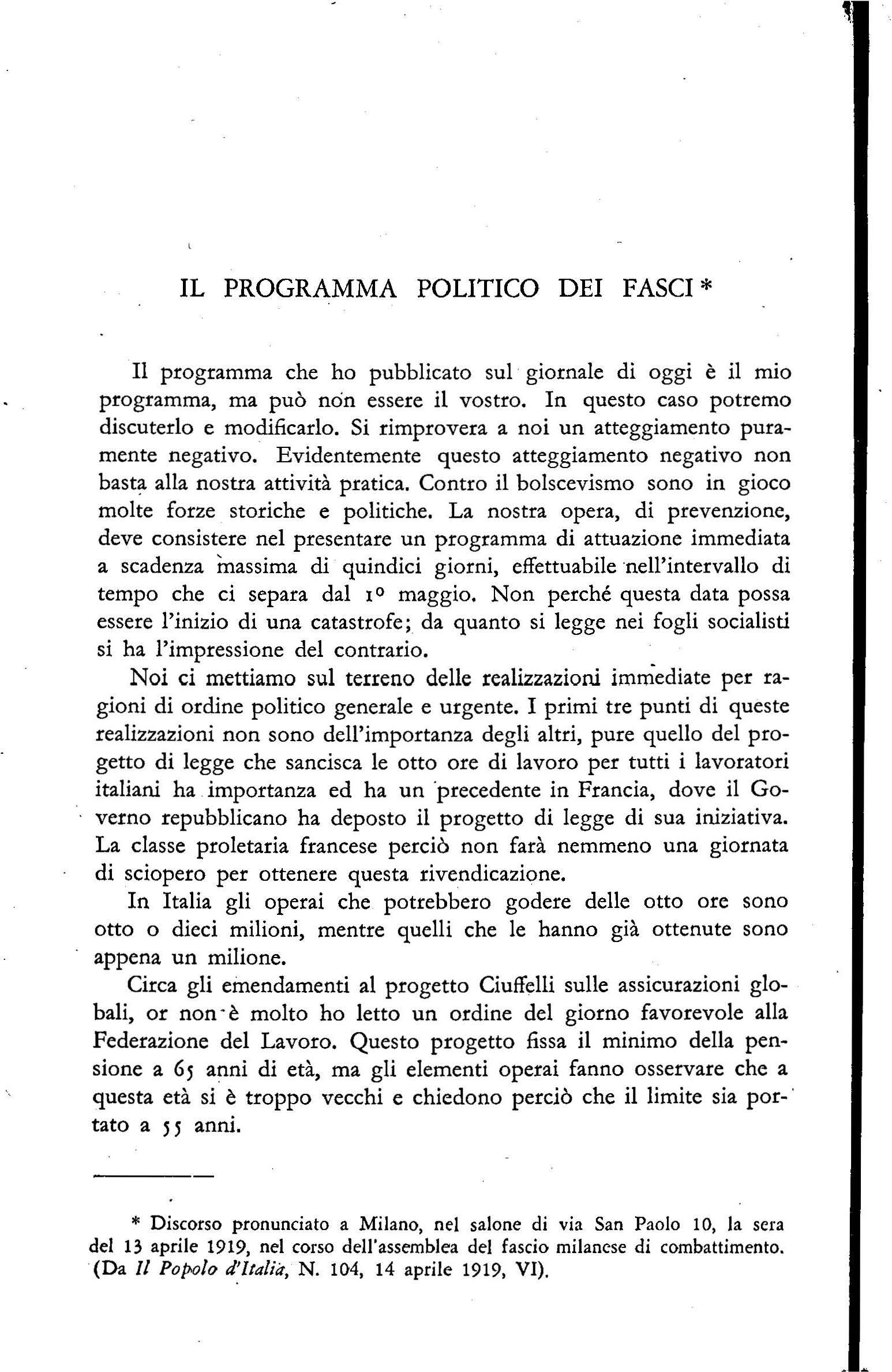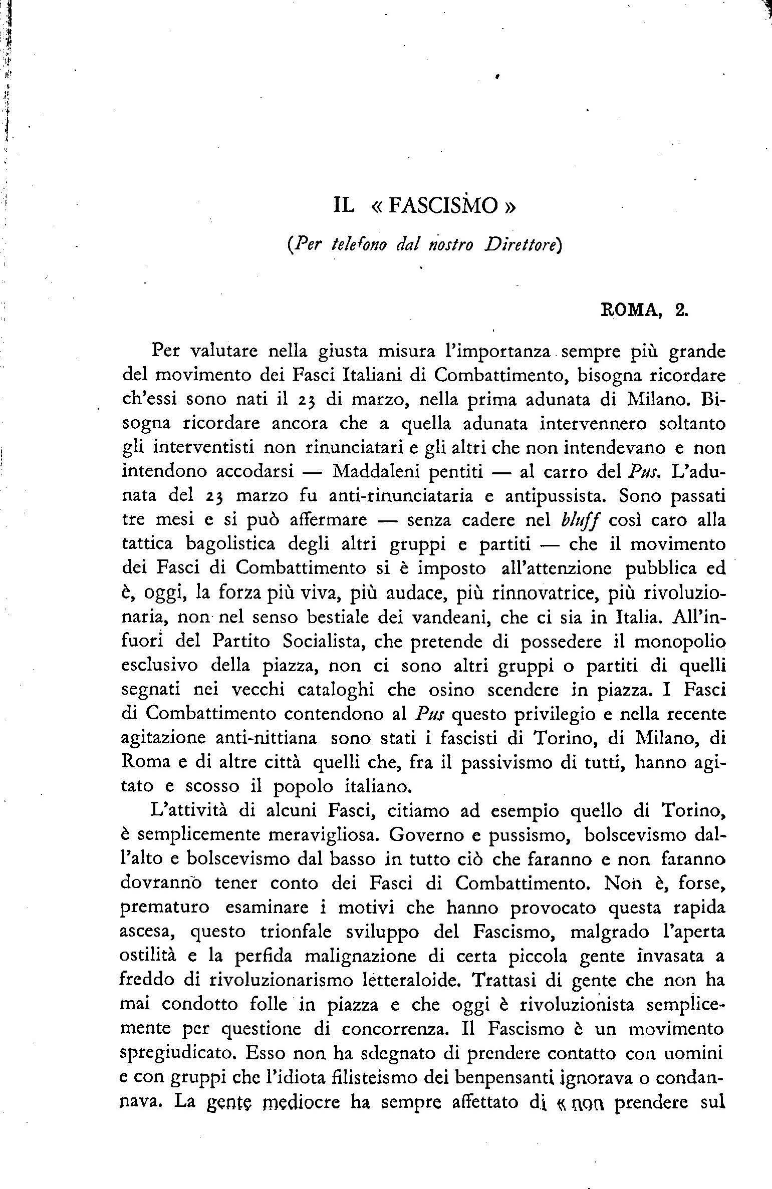 Da Il Popolo d'Italia, N. 8), 26 marzo 1919, VI.