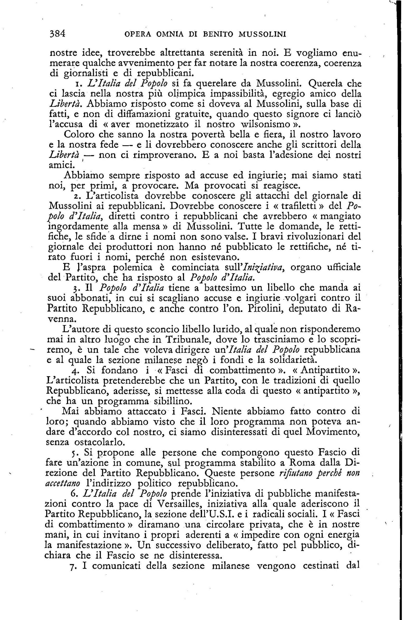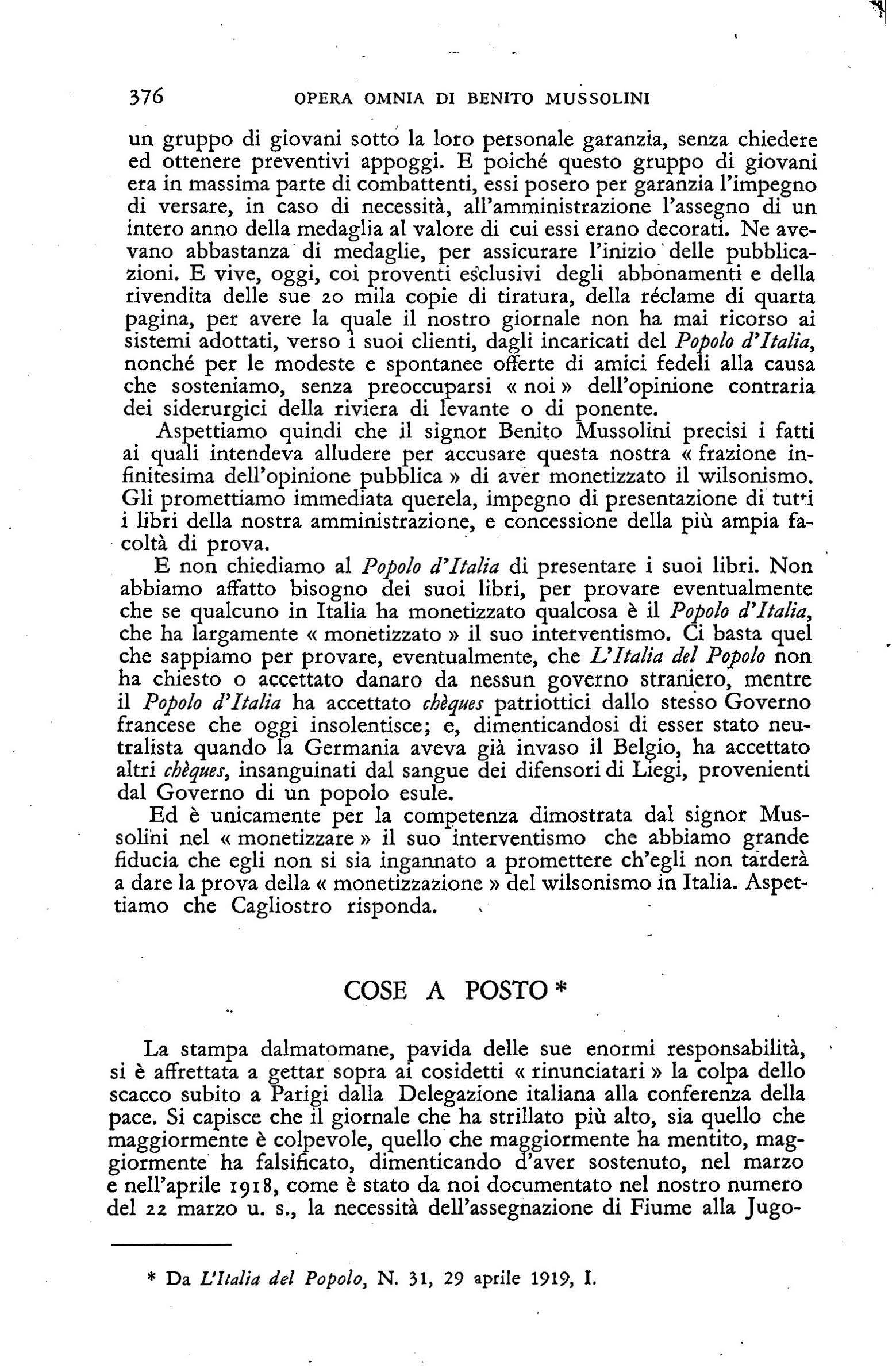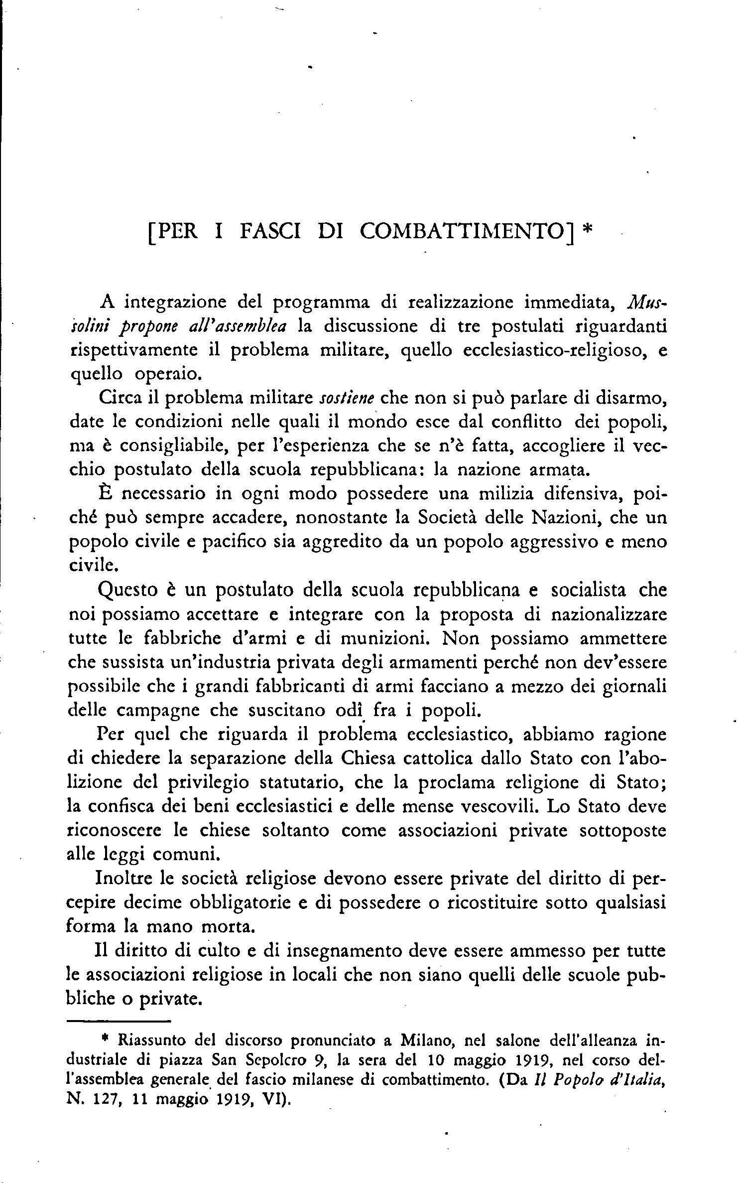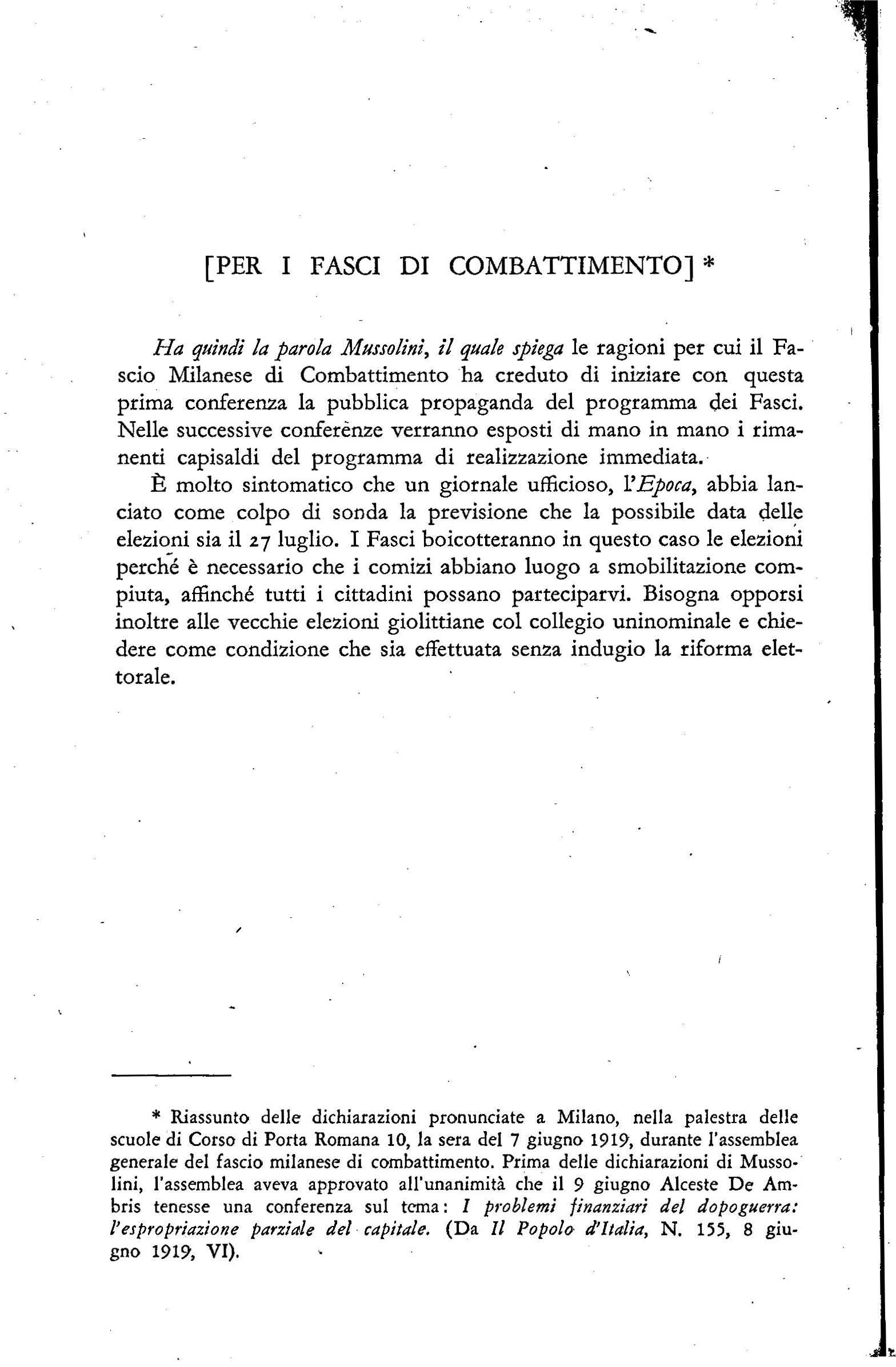 Da Il Popolo d'Italia, N. 8), 26 marzo 1919, VI.
