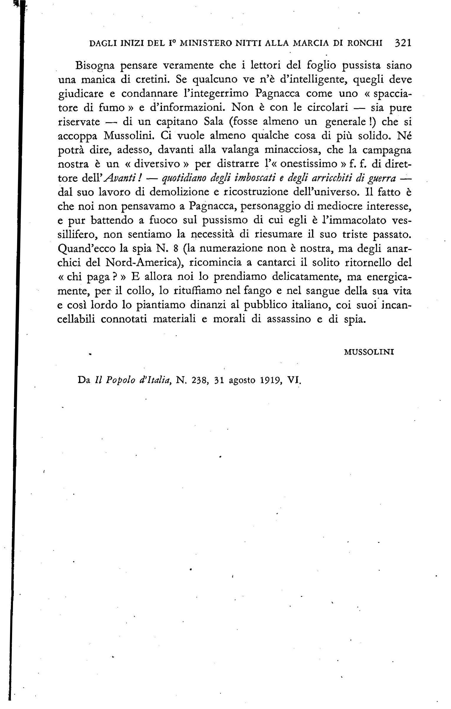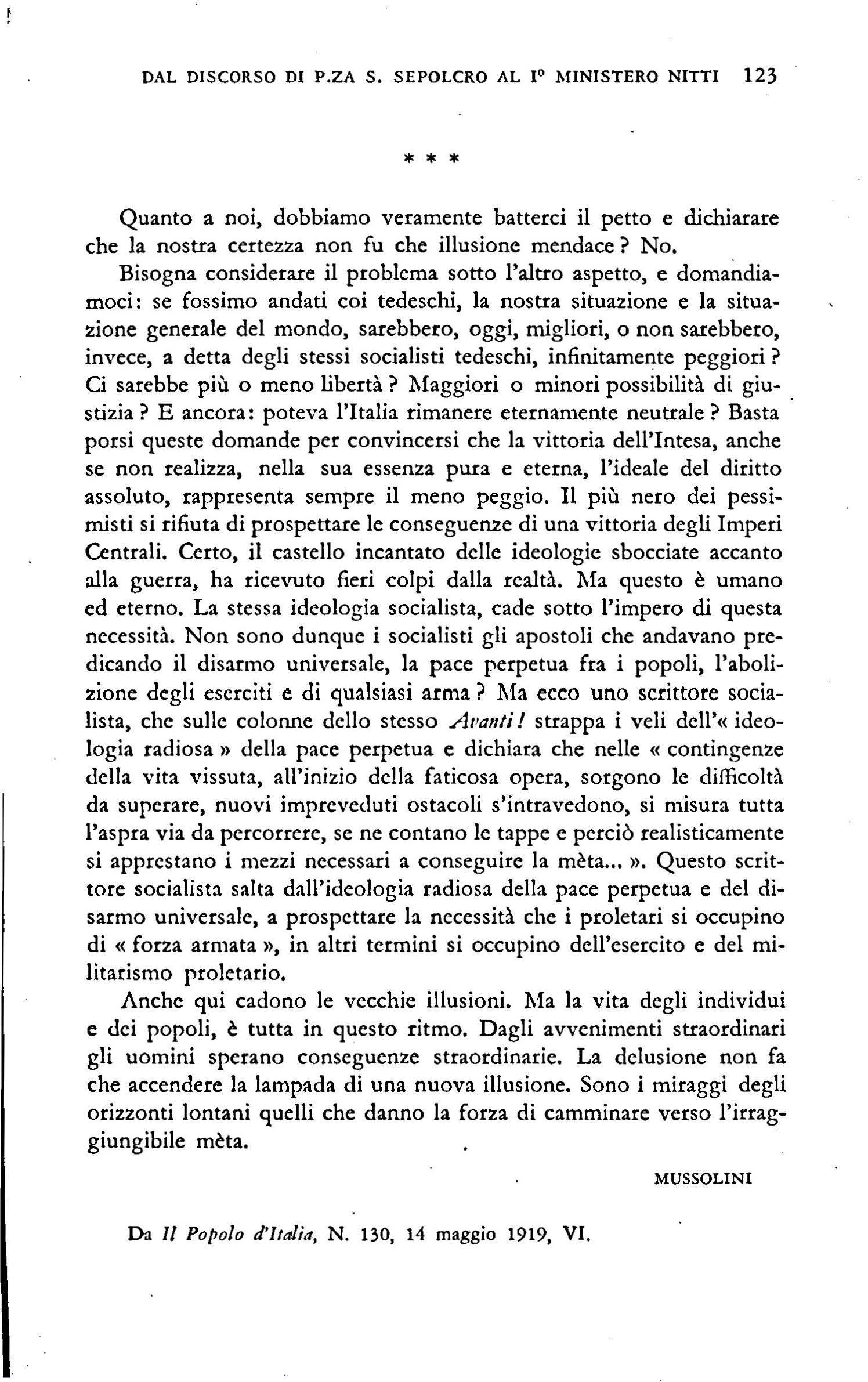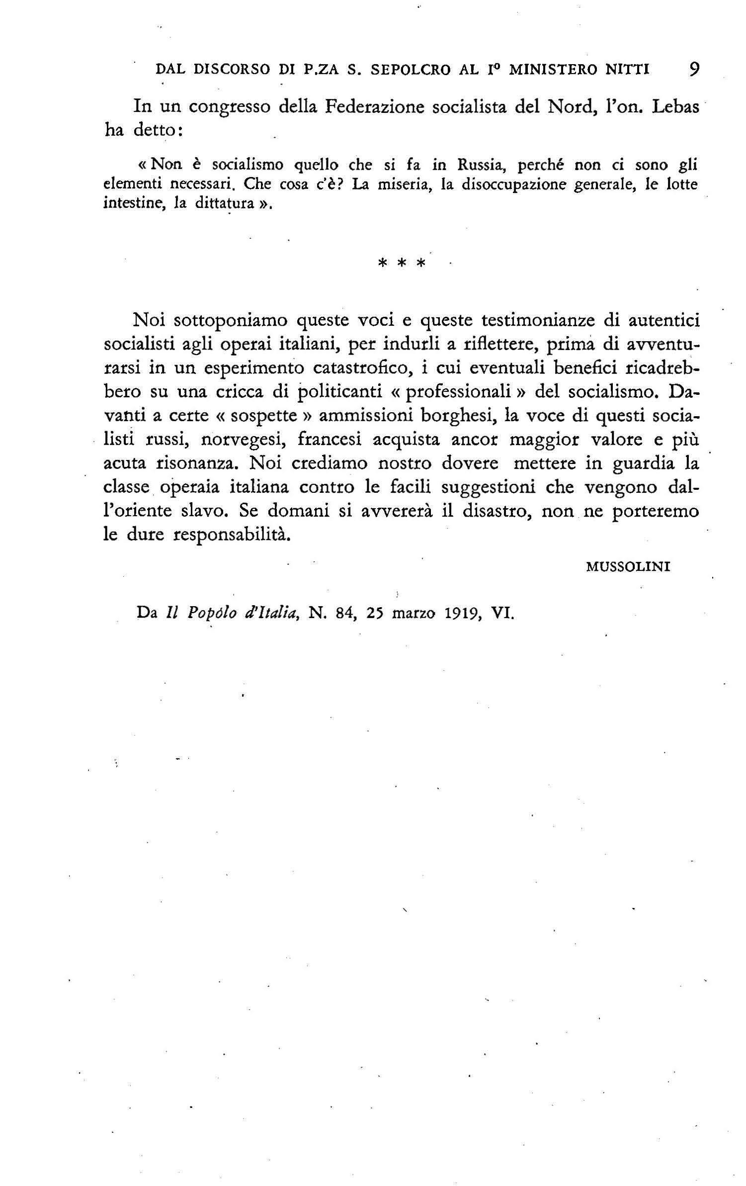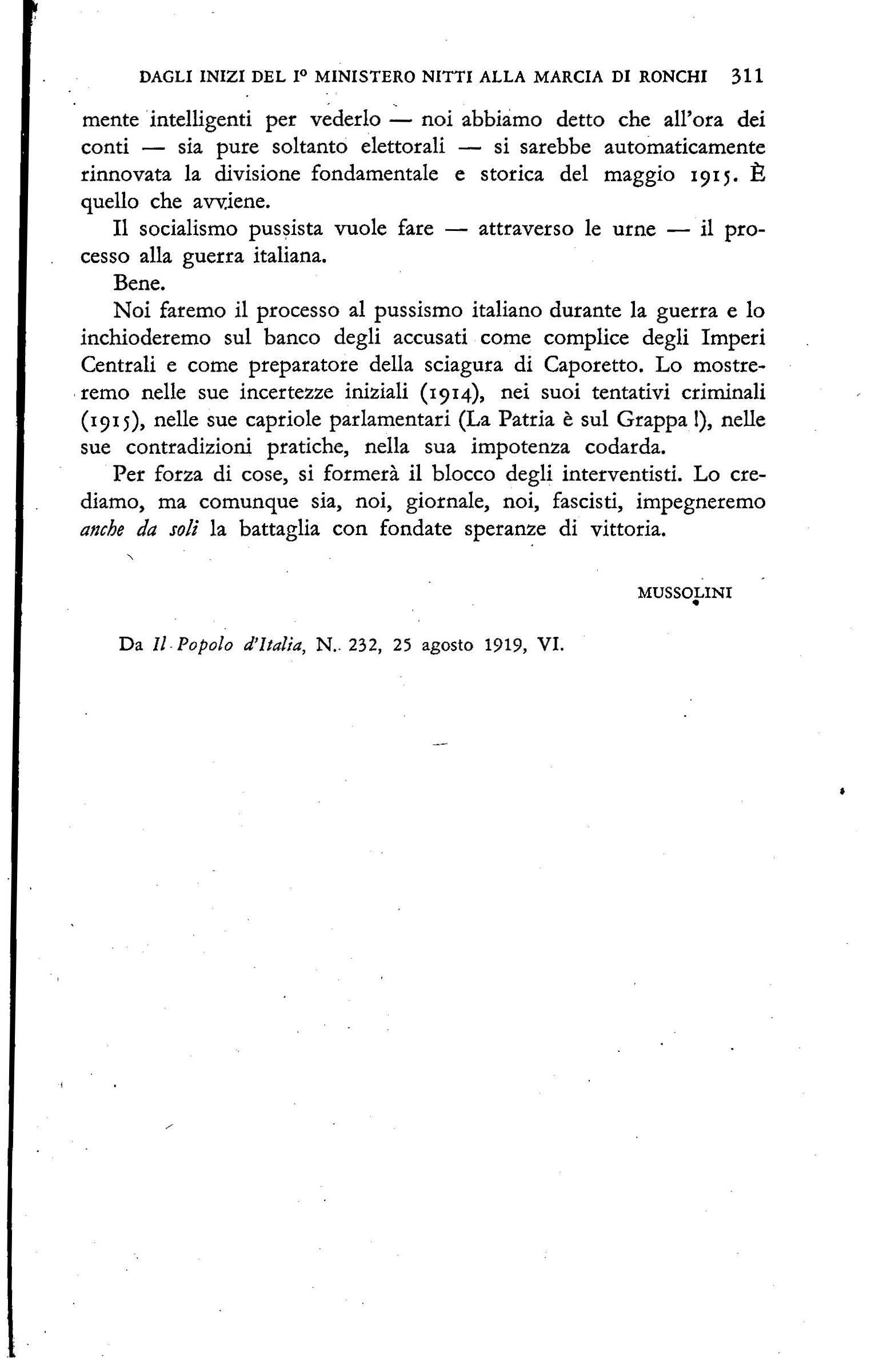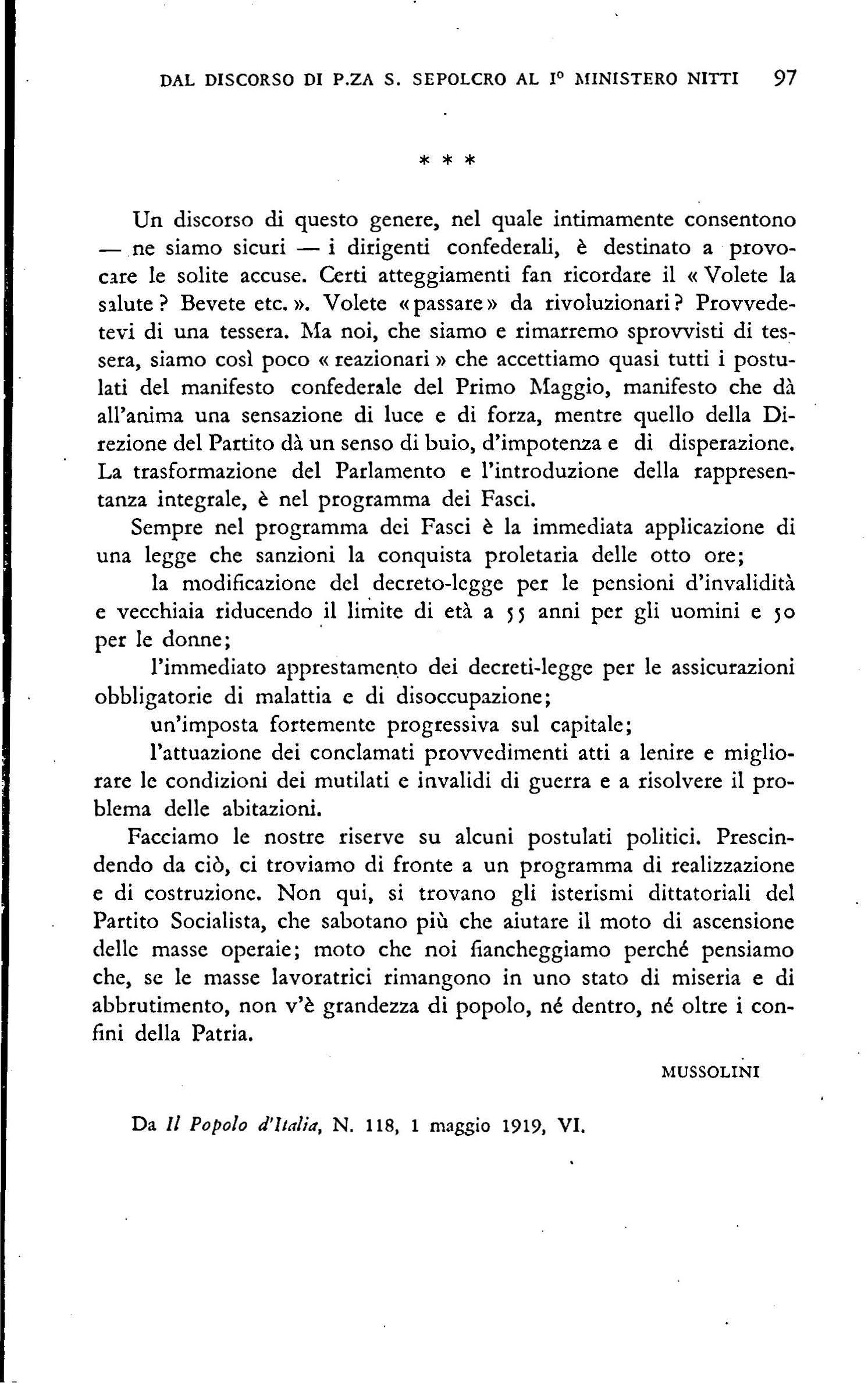 lo ~critto anonimo contrassegnato con (p) è attribuito a Benito Mussolini da G. A. Chiurc:o in : St0ritJ della rivoluzione ftU.is ta (1919-1922) , voi. IVallecchi, Firenze, 1929