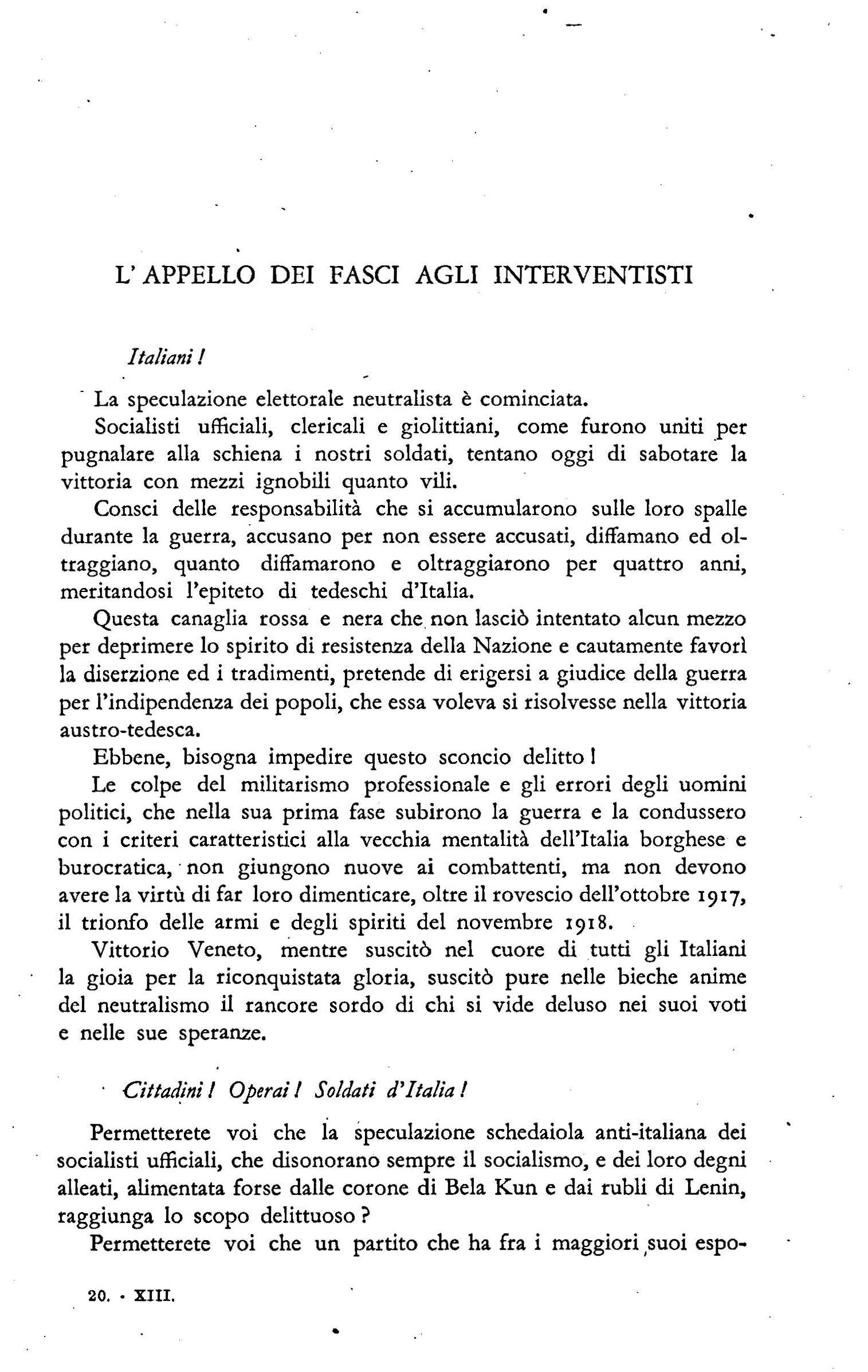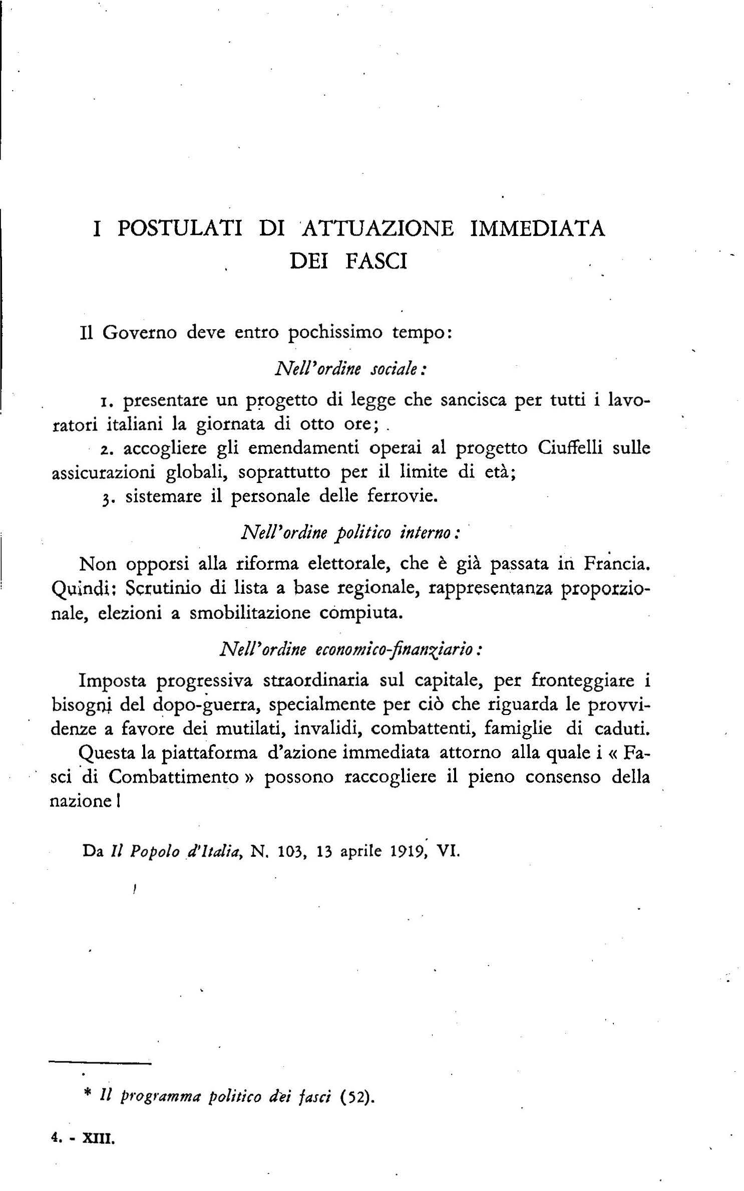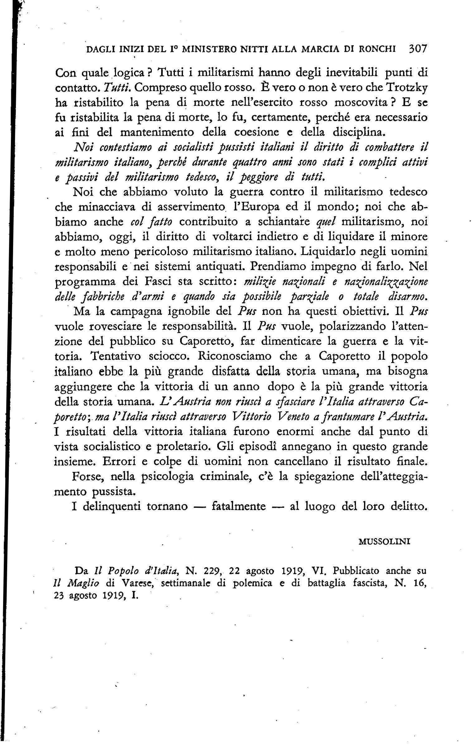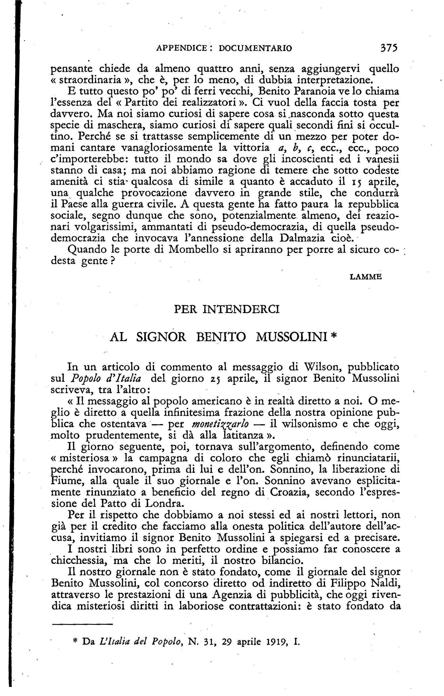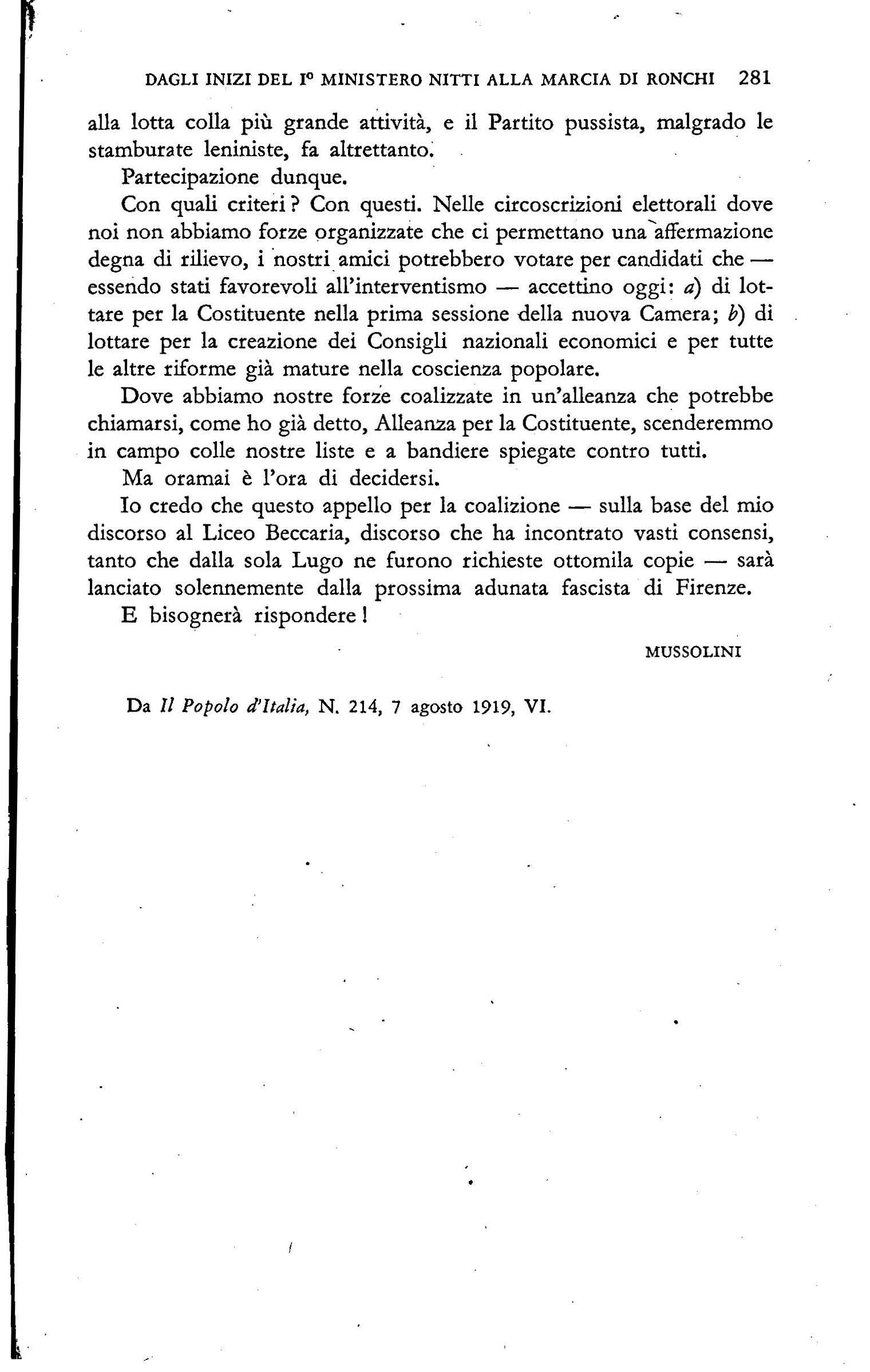 lo ~critto anonimo contrassegnato con (p) è attribuito a Benito Mussolini da G. A. Chiurc:o in : St0ritJ della rivoluzione ftU.is ta (1919-1922) , voi. IVallecchi, Firenze, 1929
