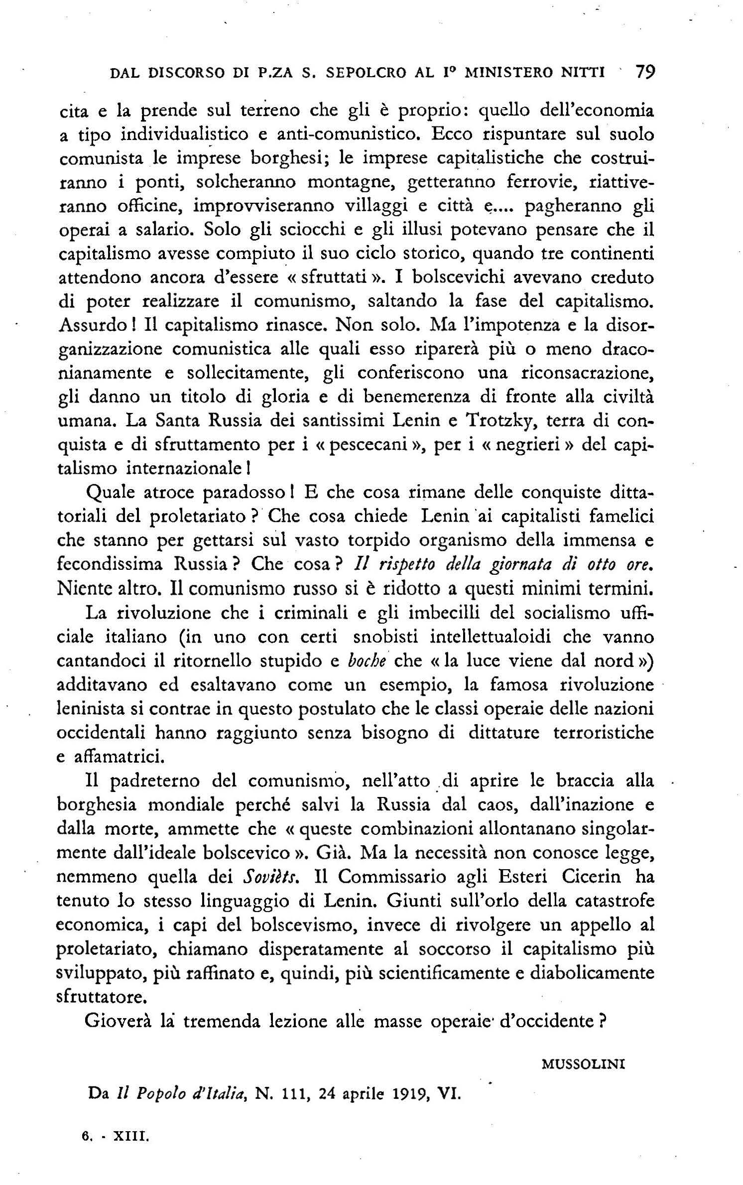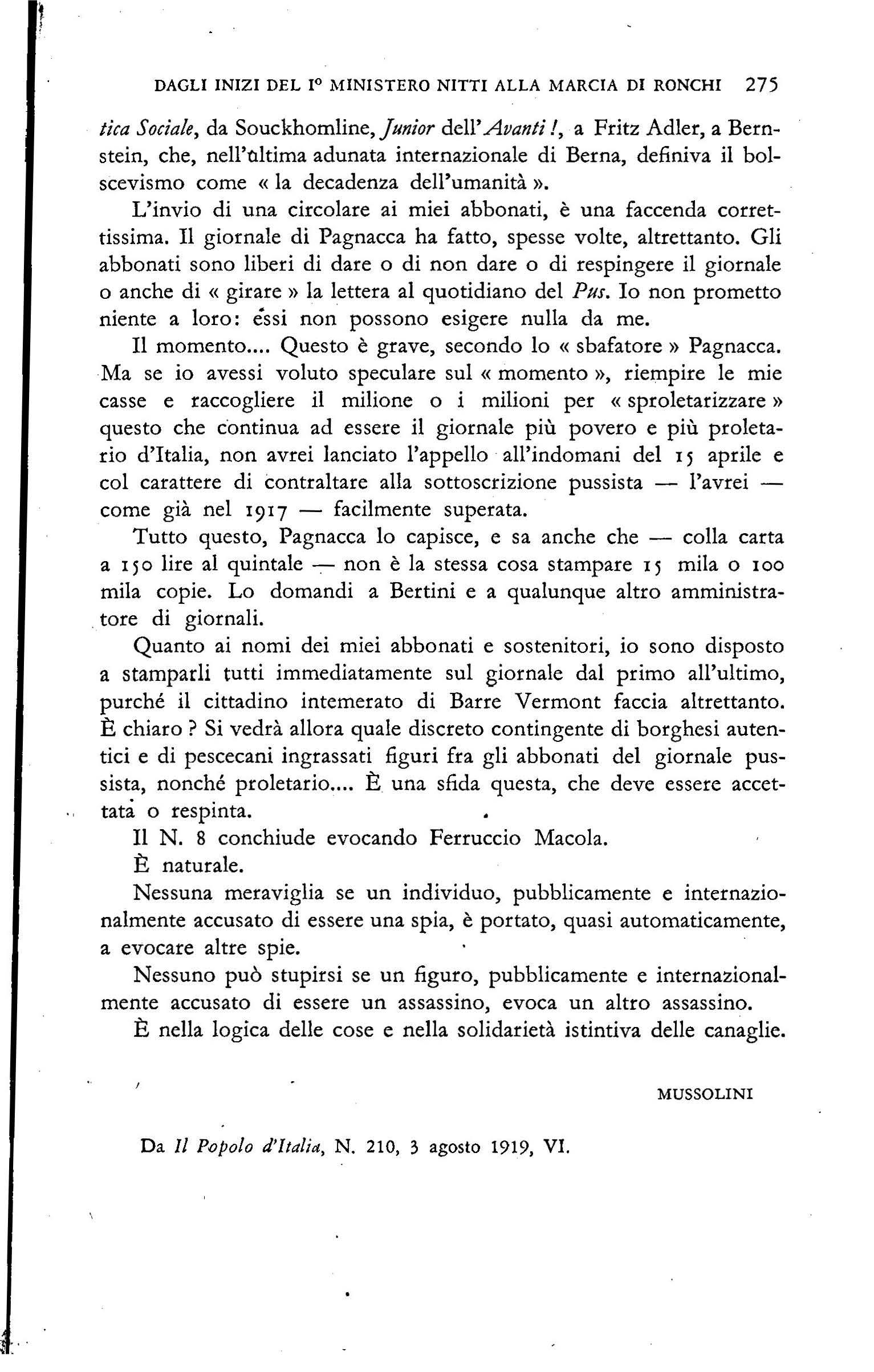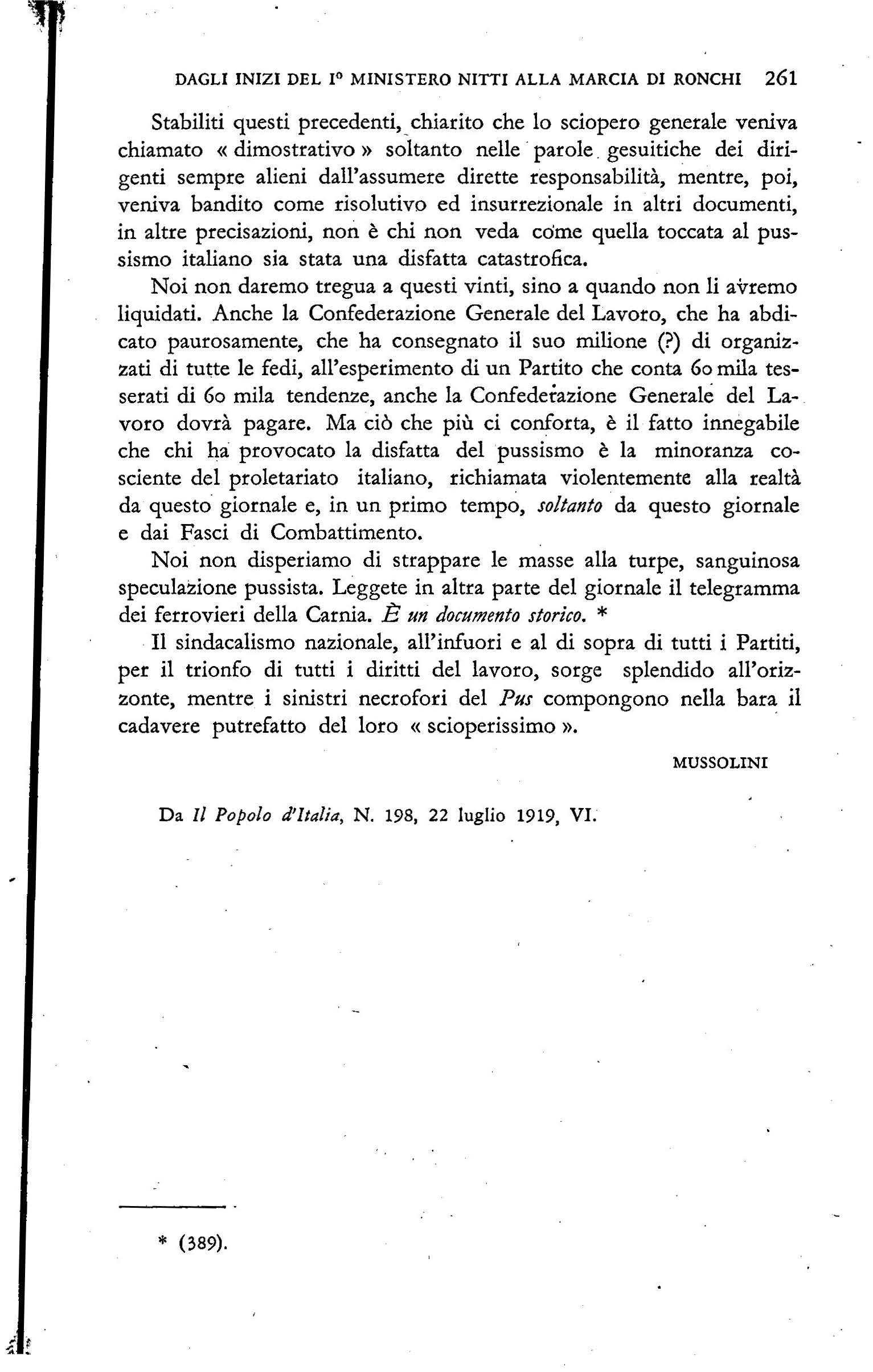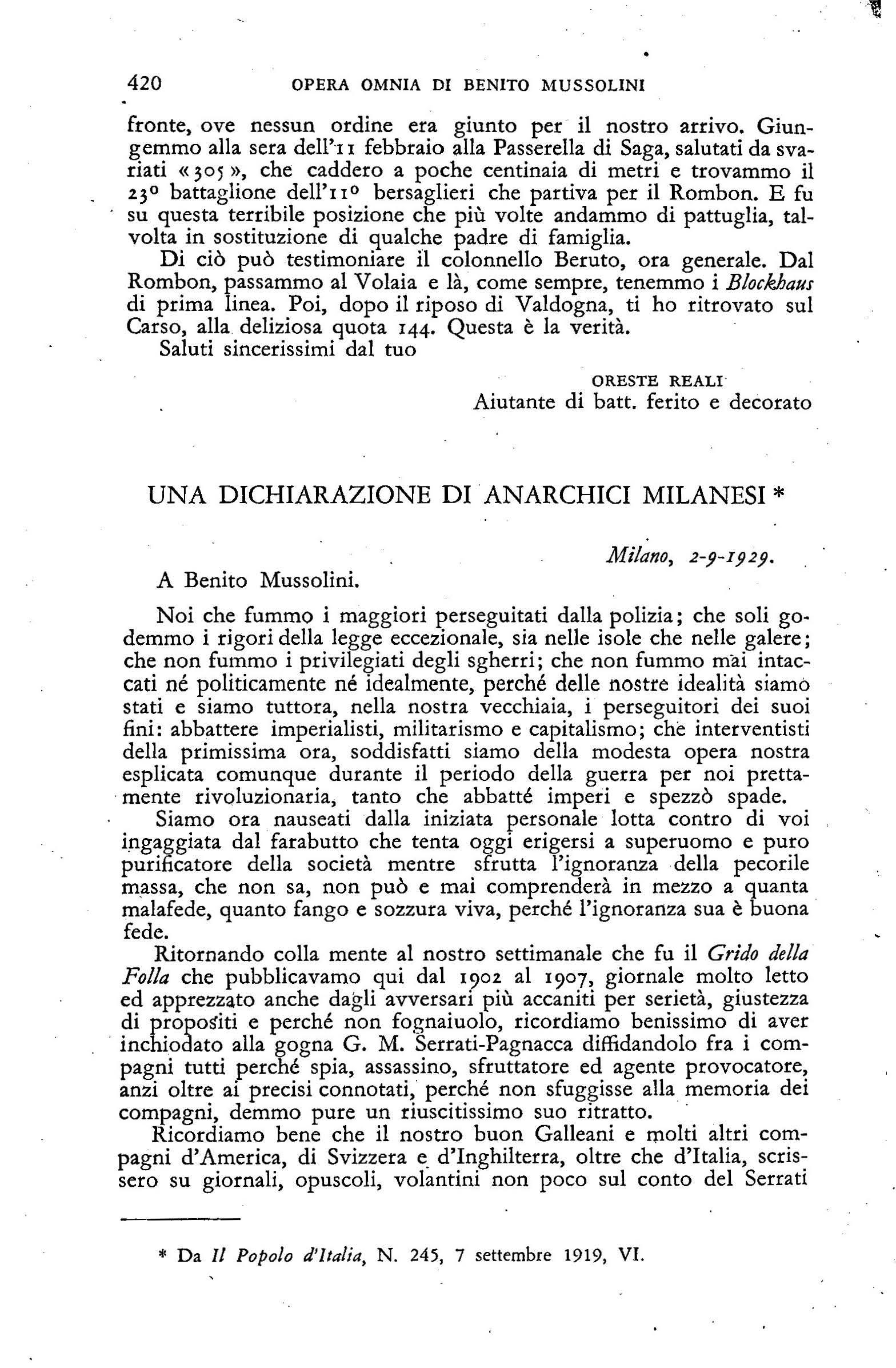 lo ~critto anonimo contrassegnato con (p) è attribuito a Benito Mussolini da G. A. Chiurc:o in : St0ritJ della rivoluzione ftU.is ta (1919-1922) , voi. IVallecchi, Firenze, 1929