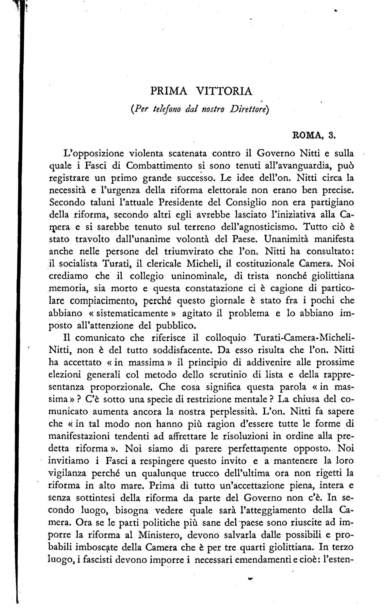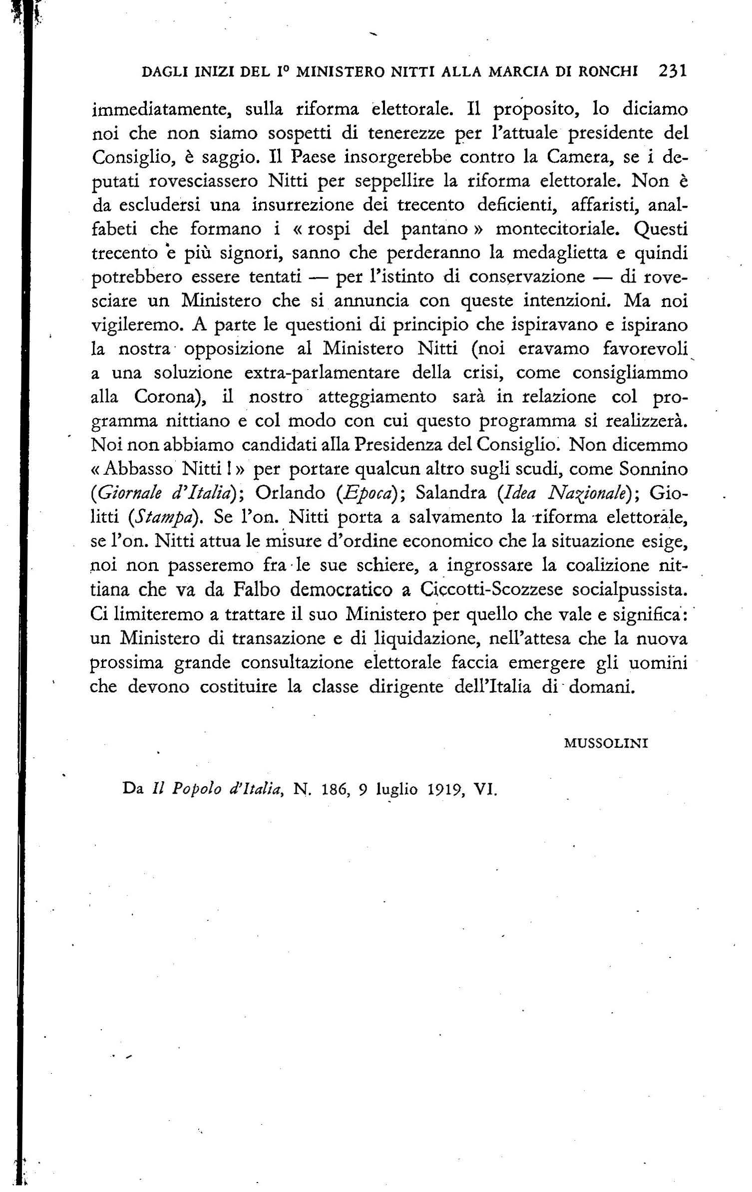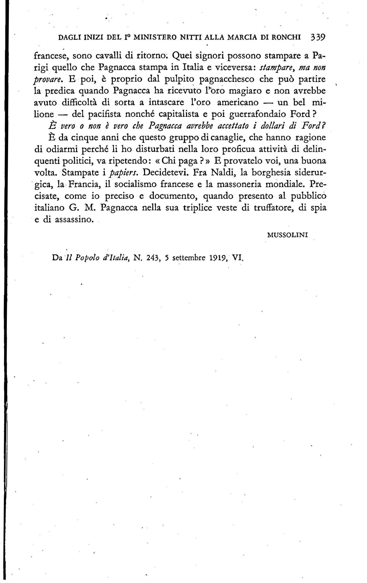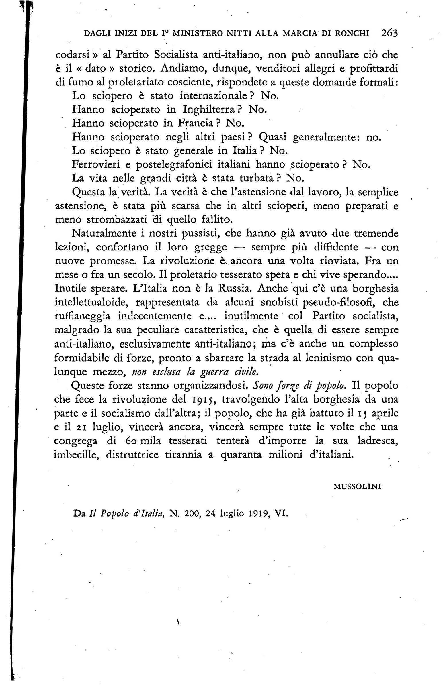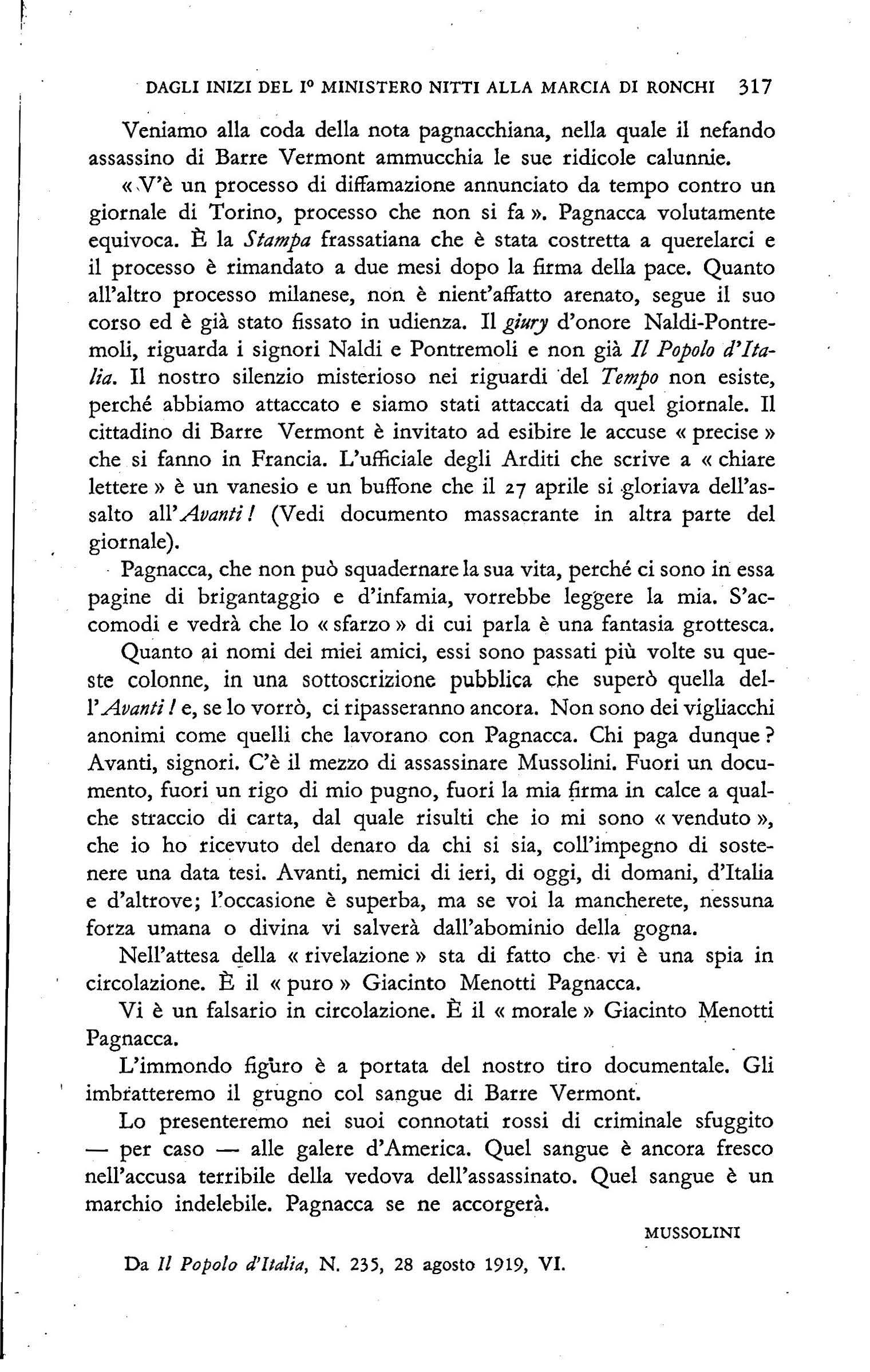 lo ~critto anonimo contrassegnato con (p) è attribuito a Benito Mussolini da G. A. Chiurc:o in : St0ritJ della rivoluzione ftU.is ta (1919-1922) , voi. IVallecchi, Firenze, 1929