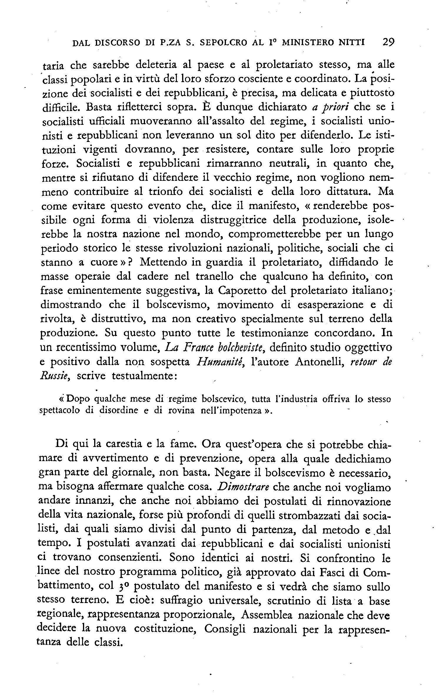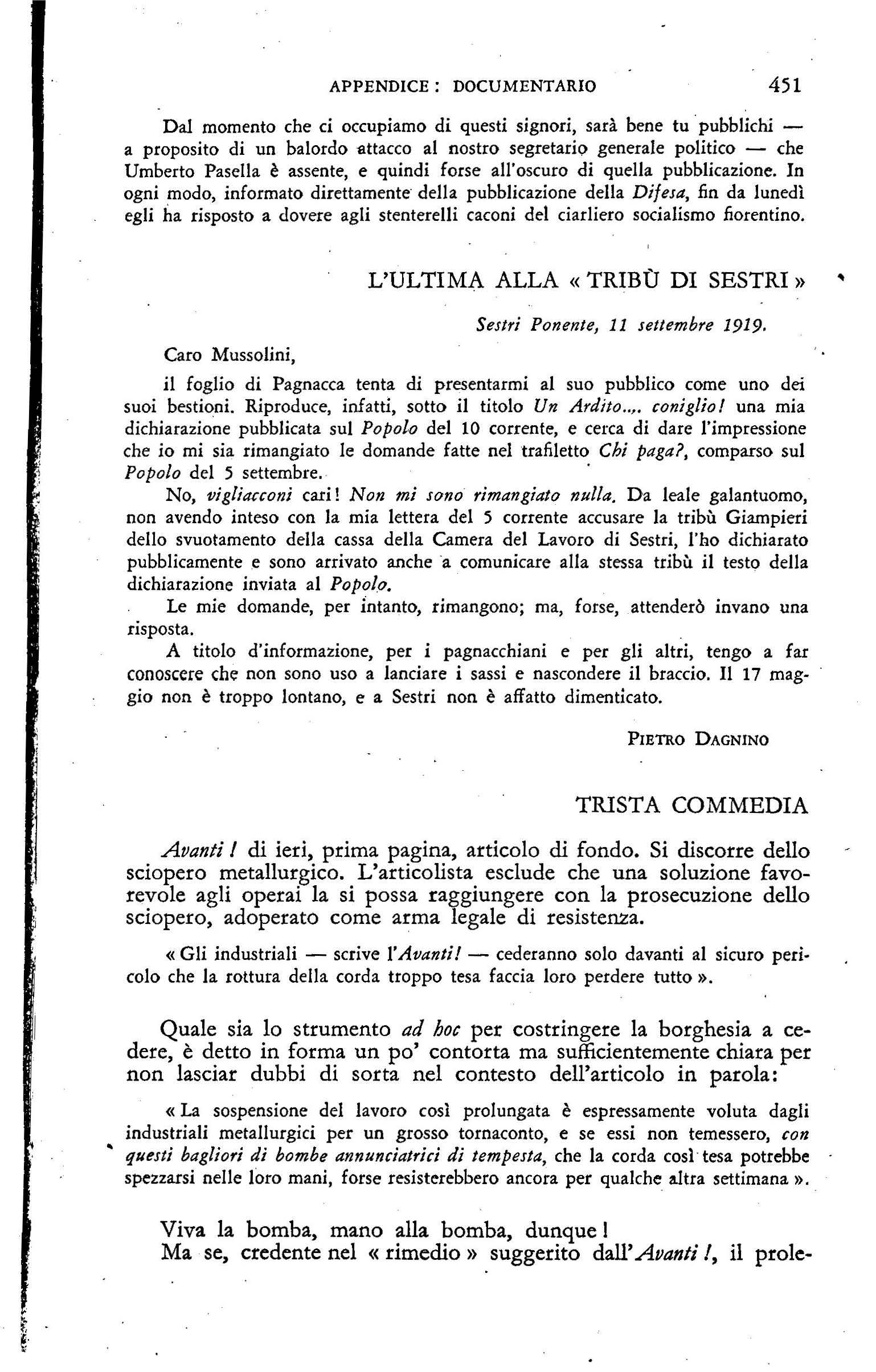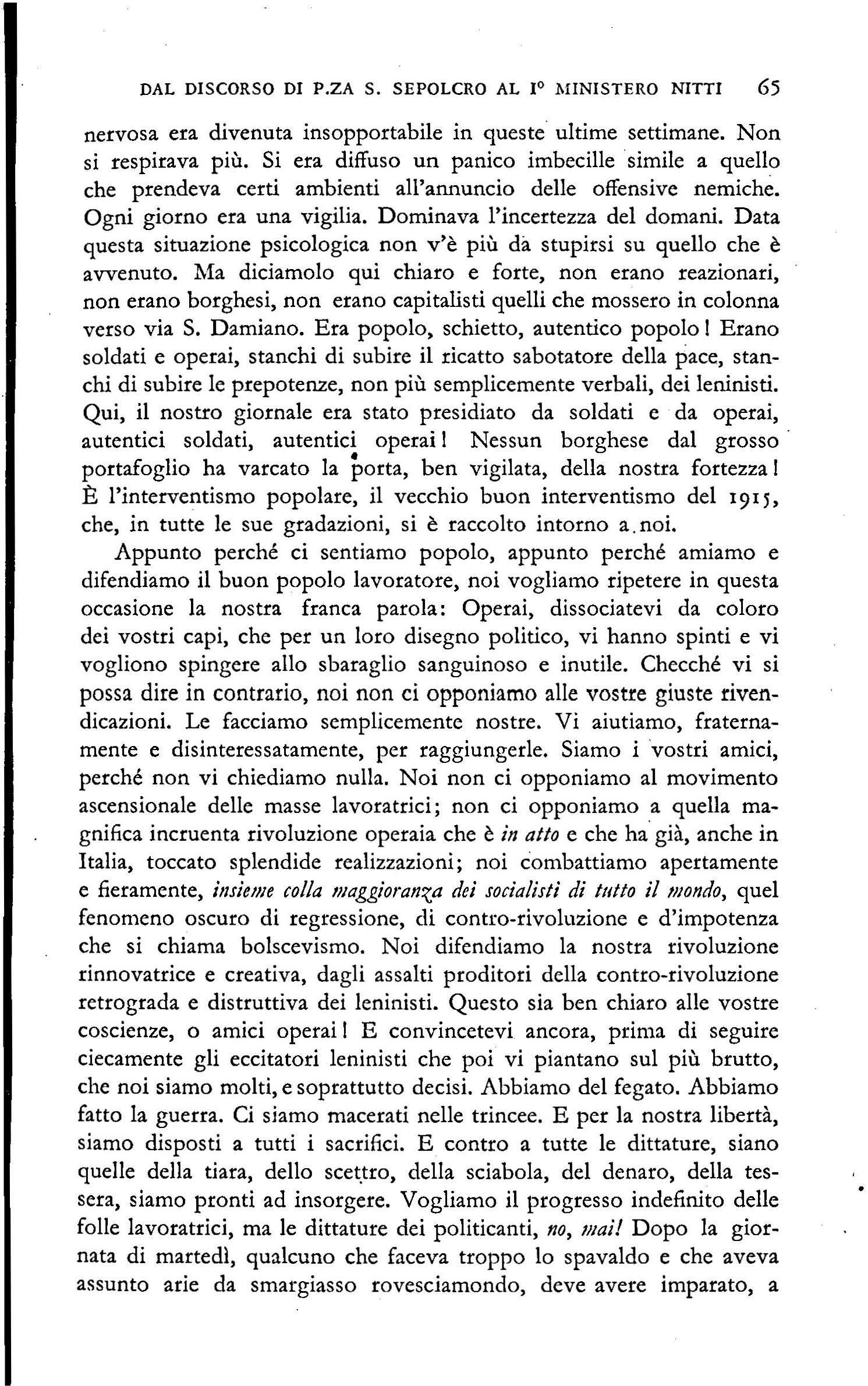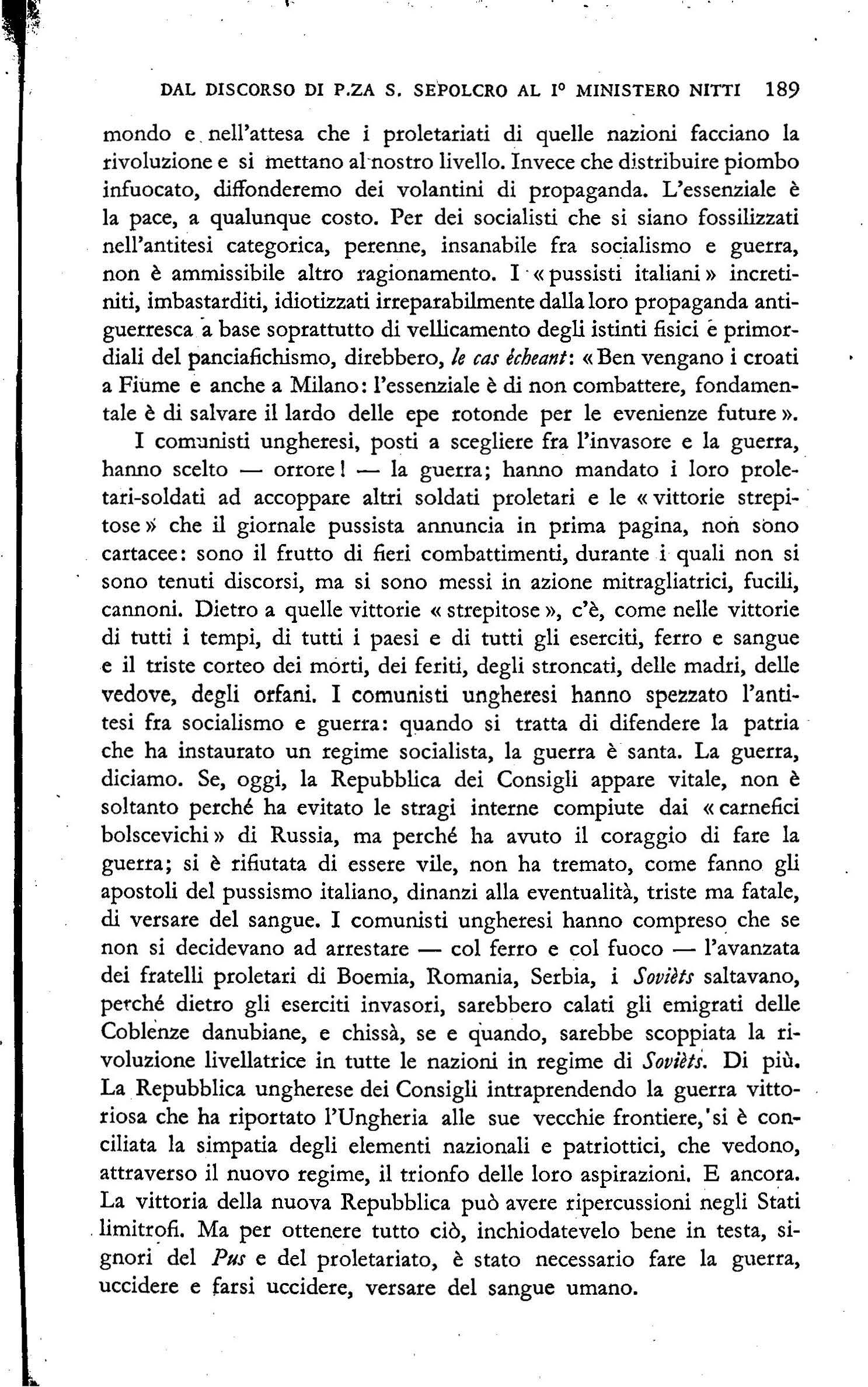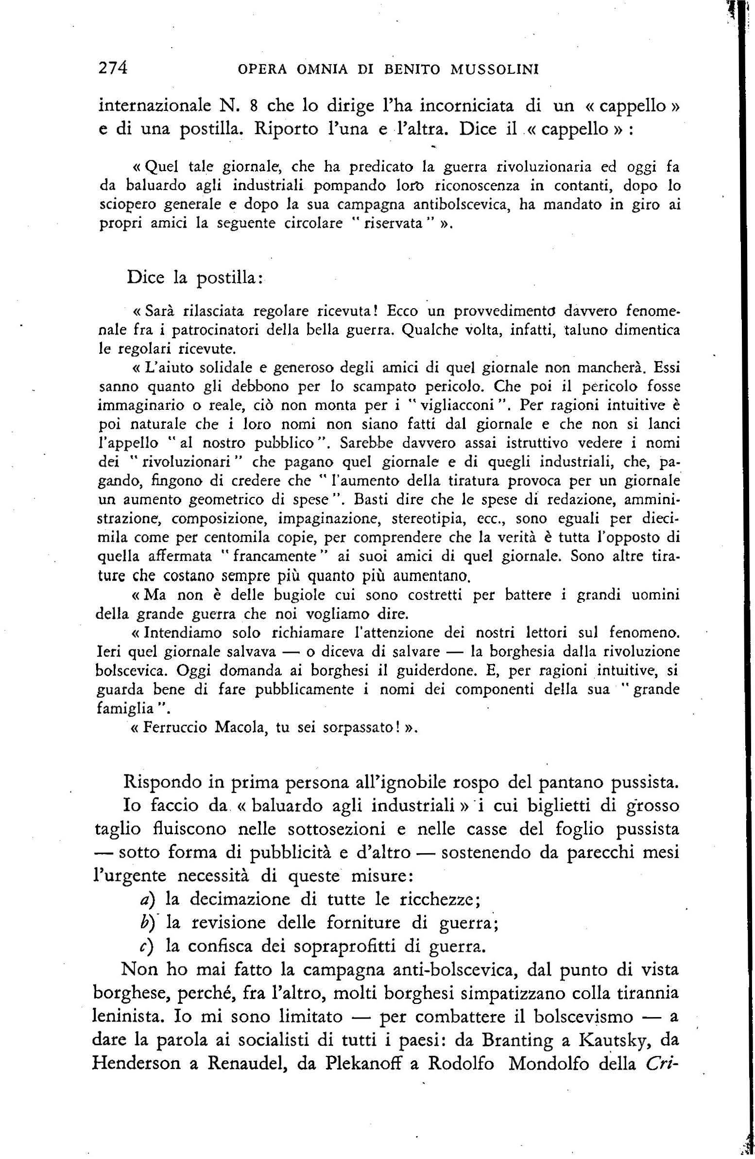 lo ~critto anonimo contrassegnato con (p) è attribuito a Benito Mussolini da G. A. Chiurc:o in : St0ritJ della rivoluzione ftU.is ta (1919-1922) , voi. IVallecchi, Firenze, 1929