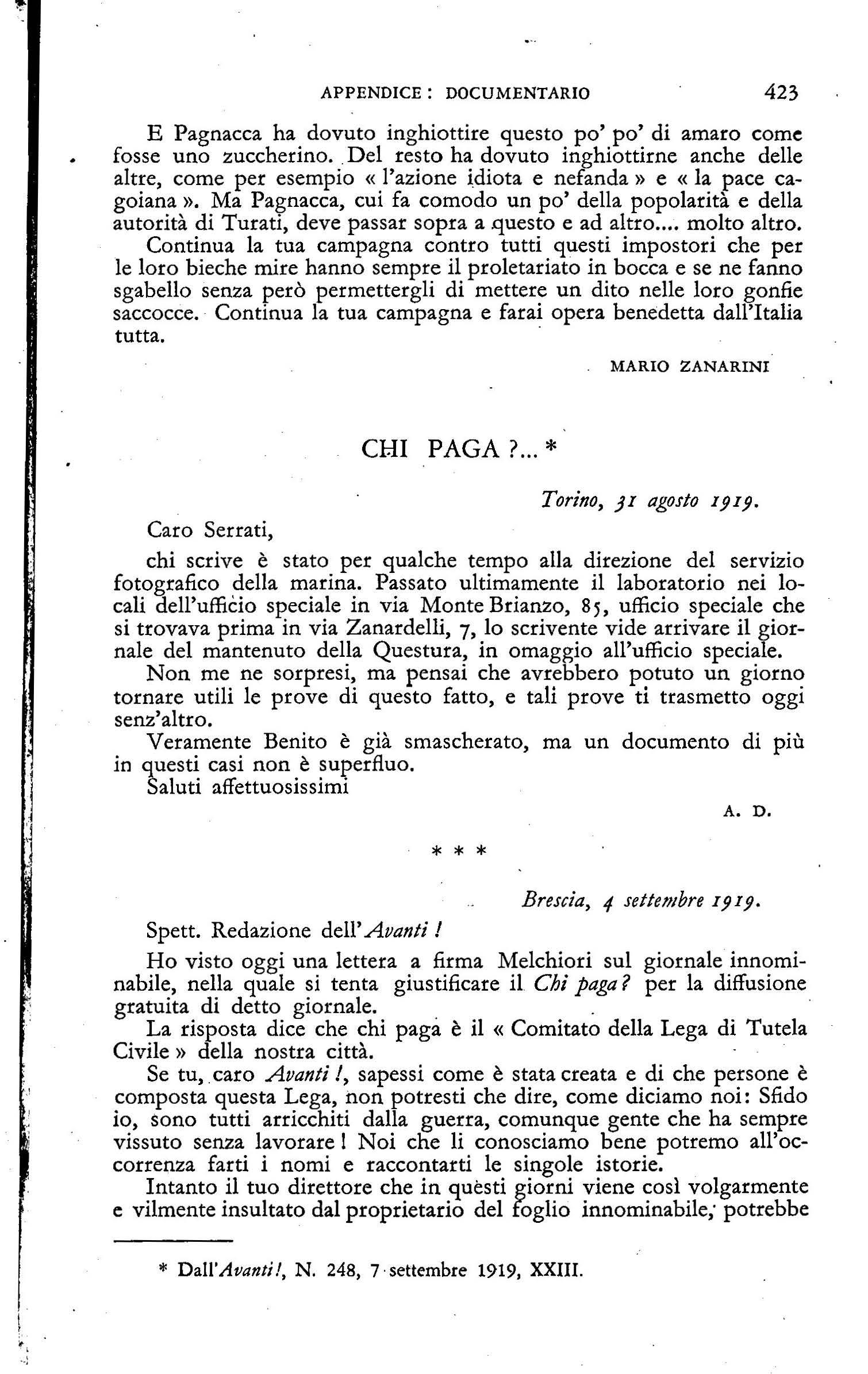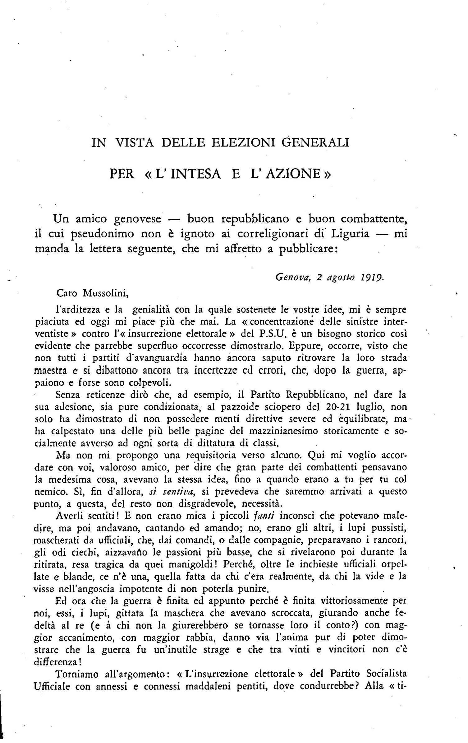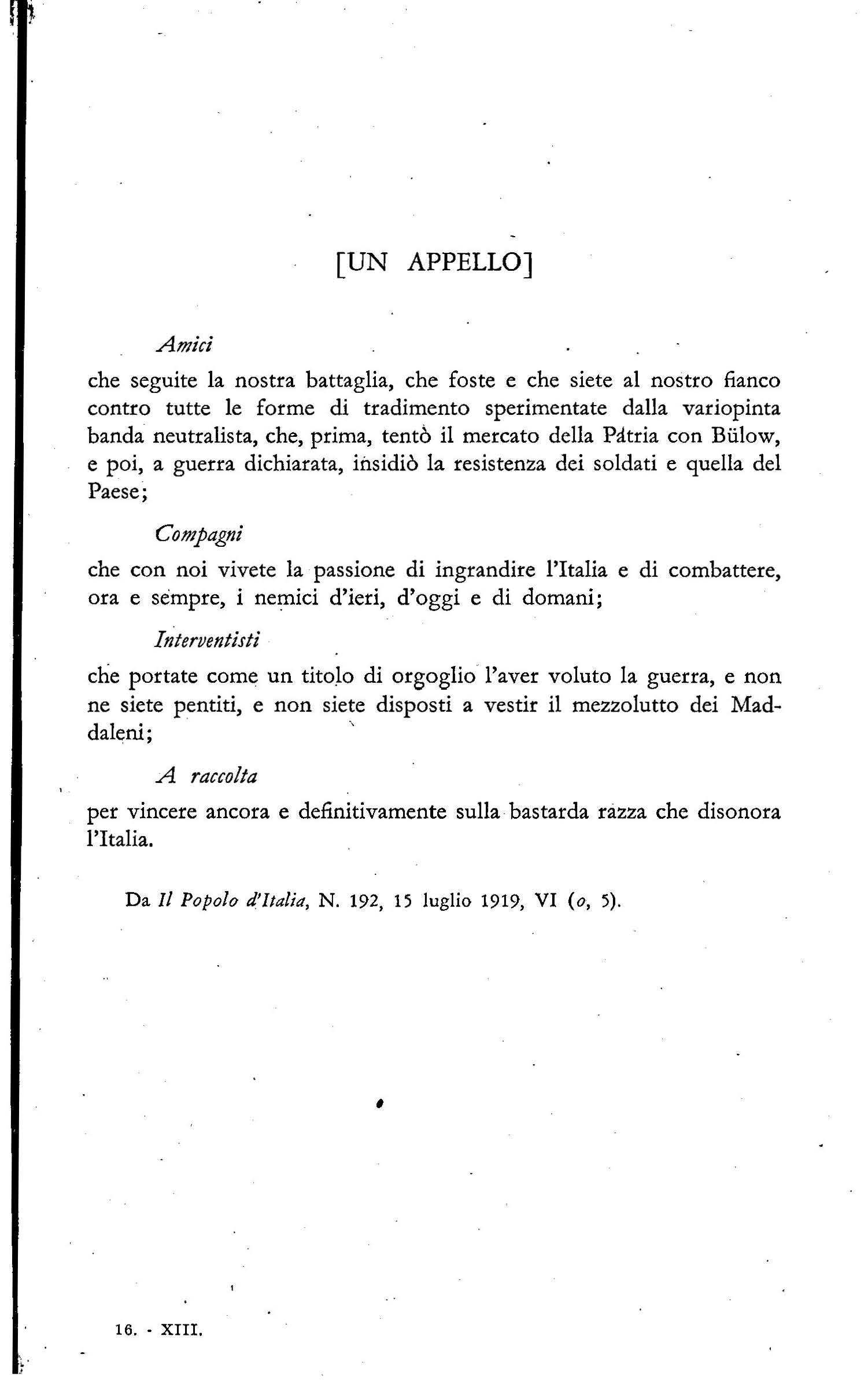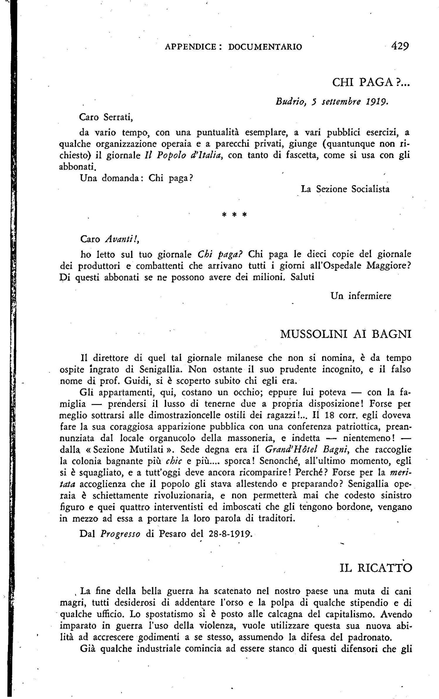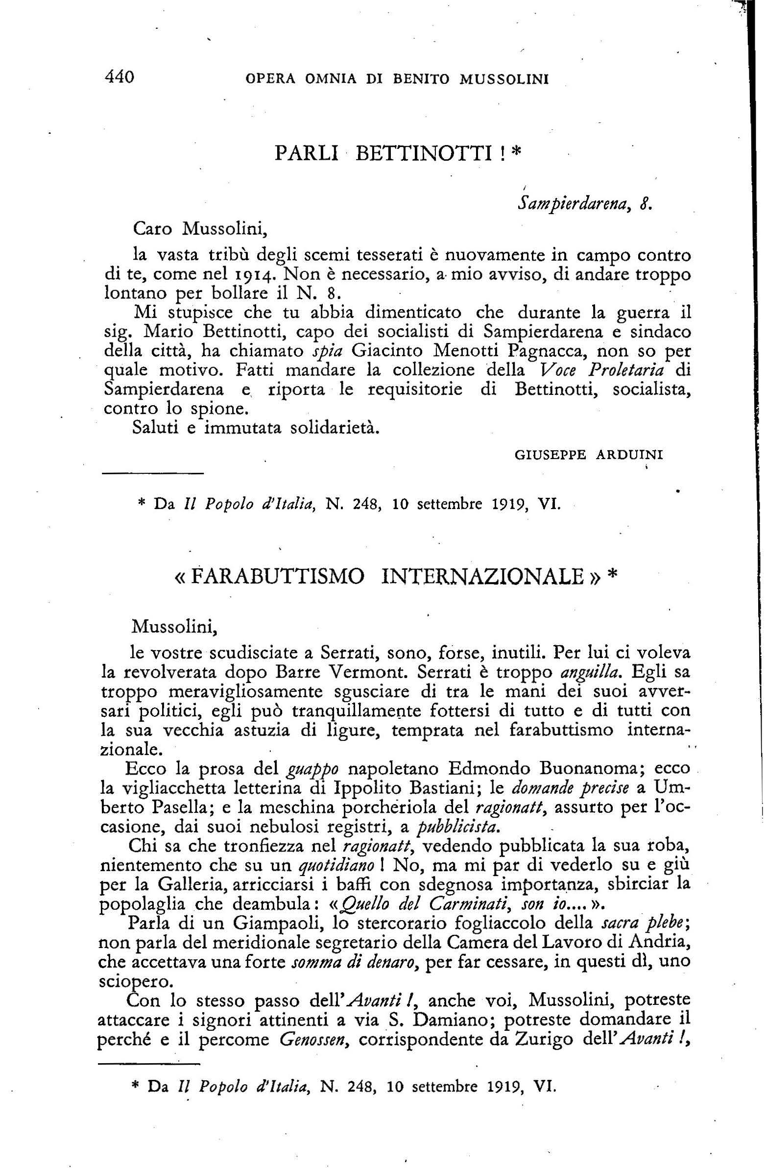 lo ~critto anonimo contrassegnato con (p) è attribuito a Benito Mussolini da G. A. Chiurc:o in : St0ritJ della rivoluzione ftU.is ta (1919-1922) , voi. IVallecchi, Firenze, 1929