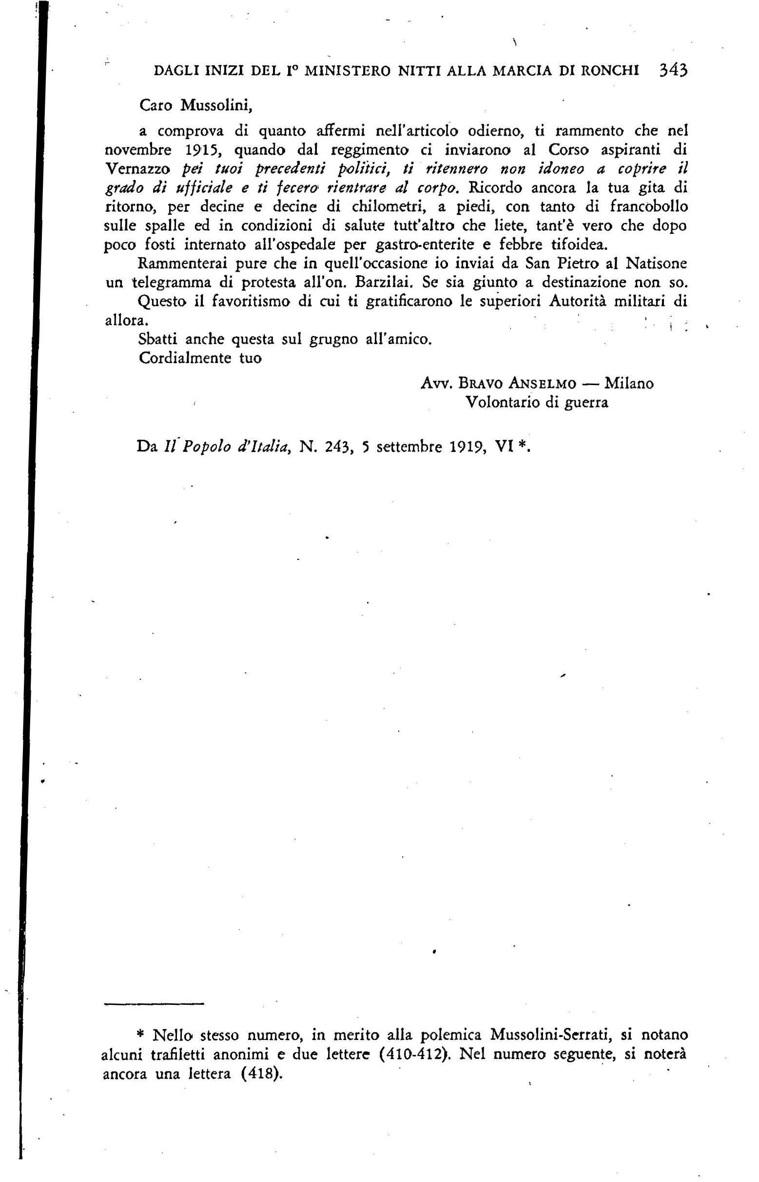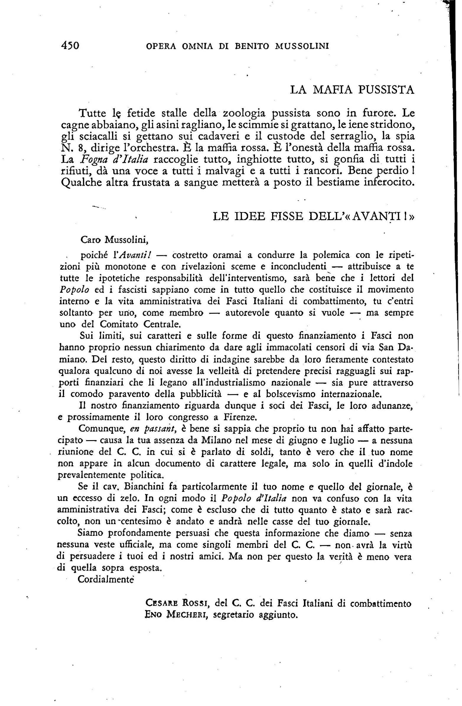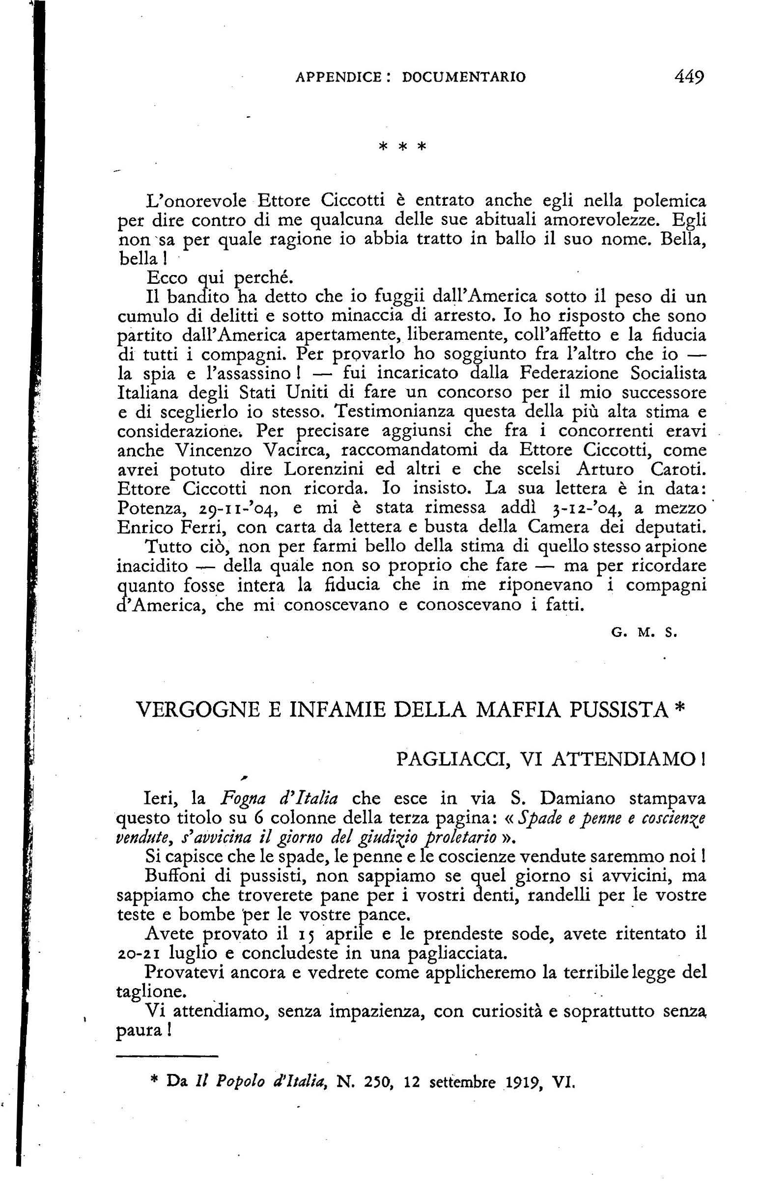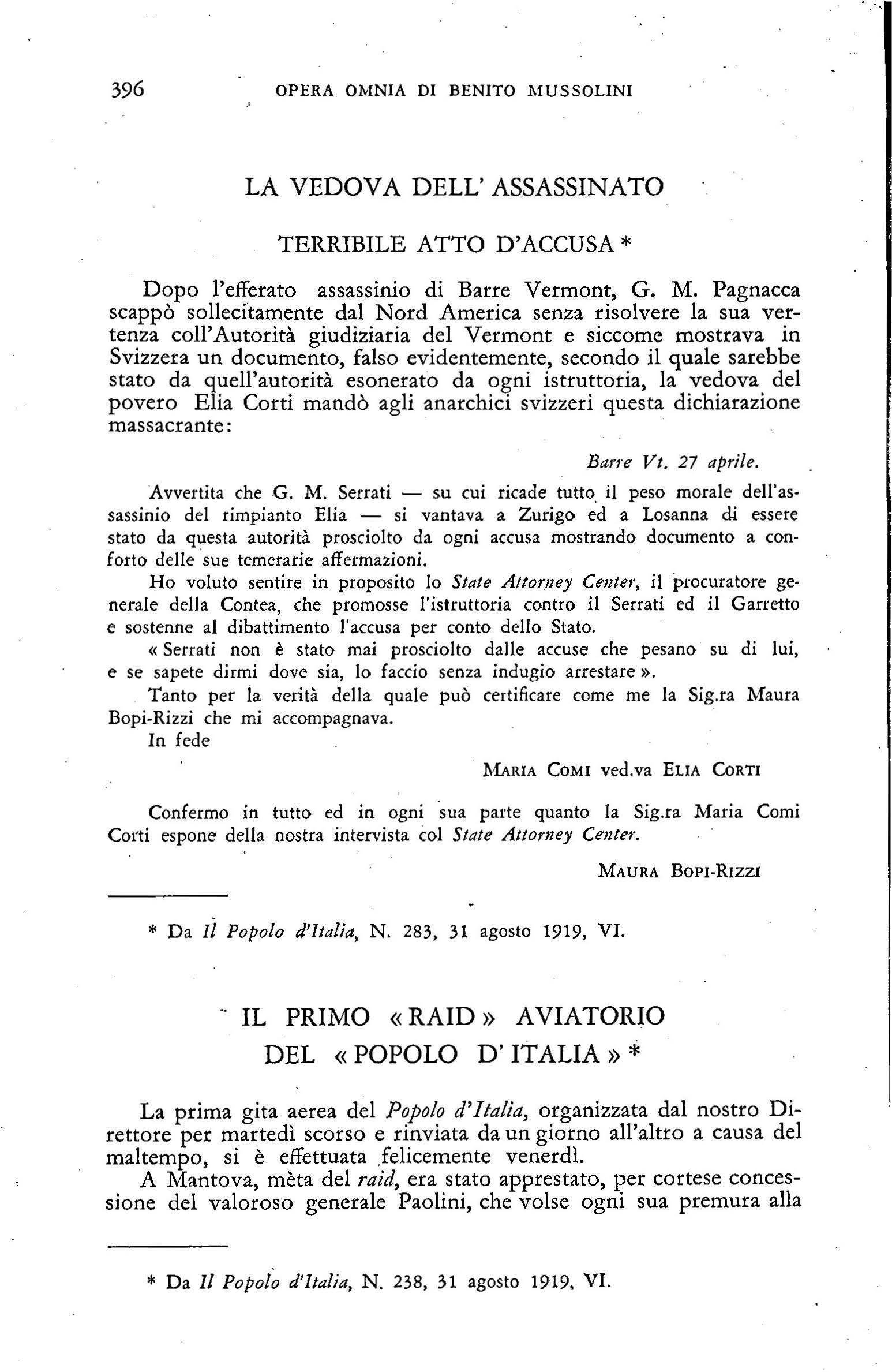 lo ~critto anonimo contrassegnato con (p) è attribuito a Benito Mussolini da G. A. Chiurc:o in : St0ritJ della rivoluzione ftU.is ta (1919-1922) , voi. IVallecchi, Firenze, 1929
