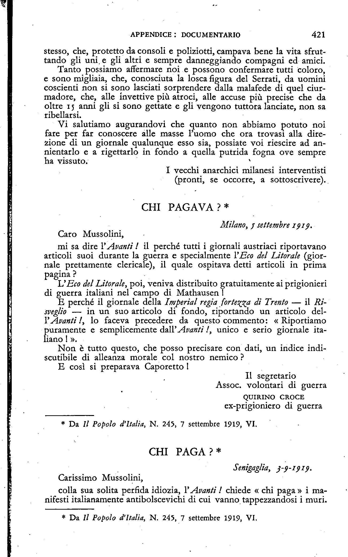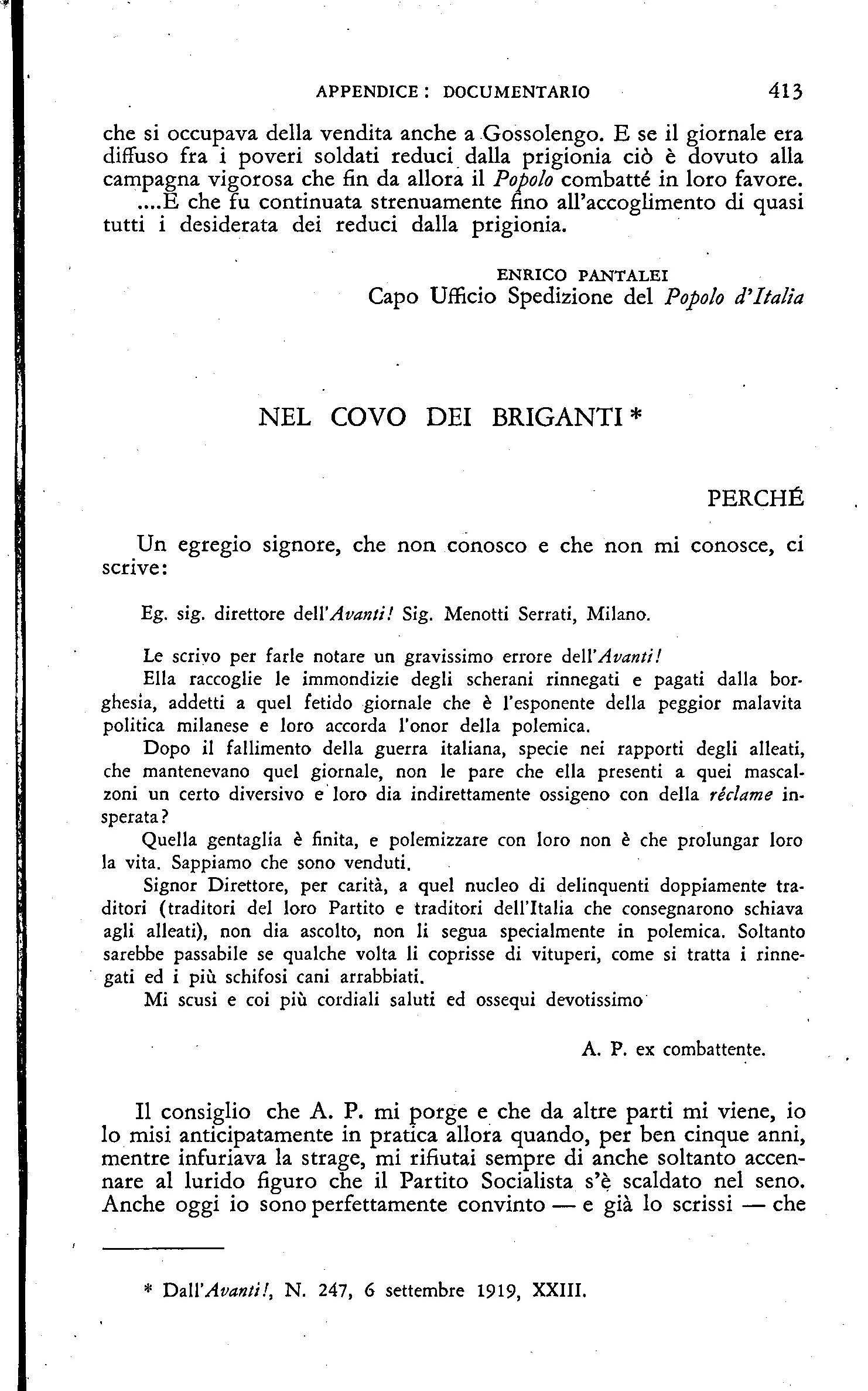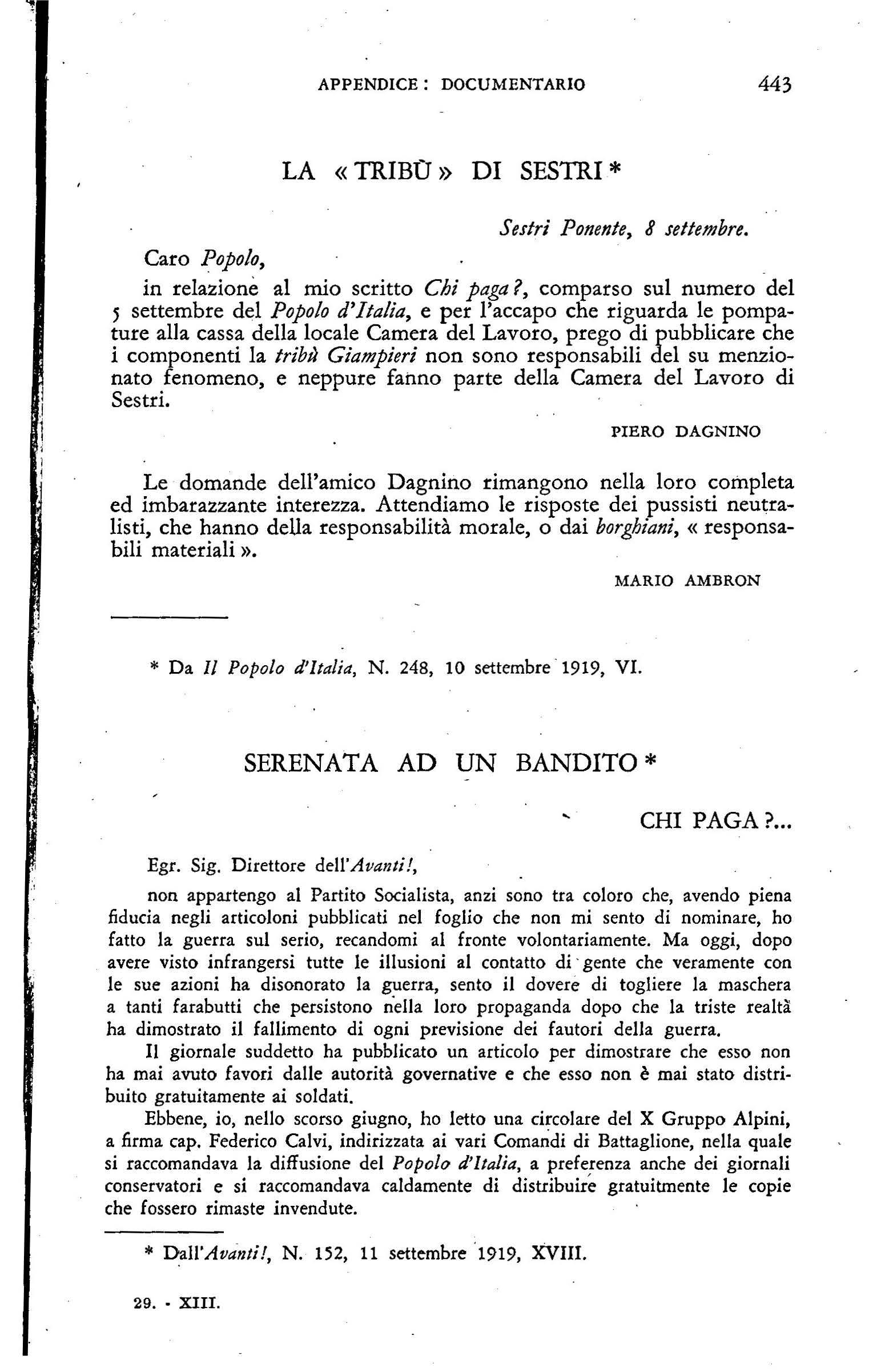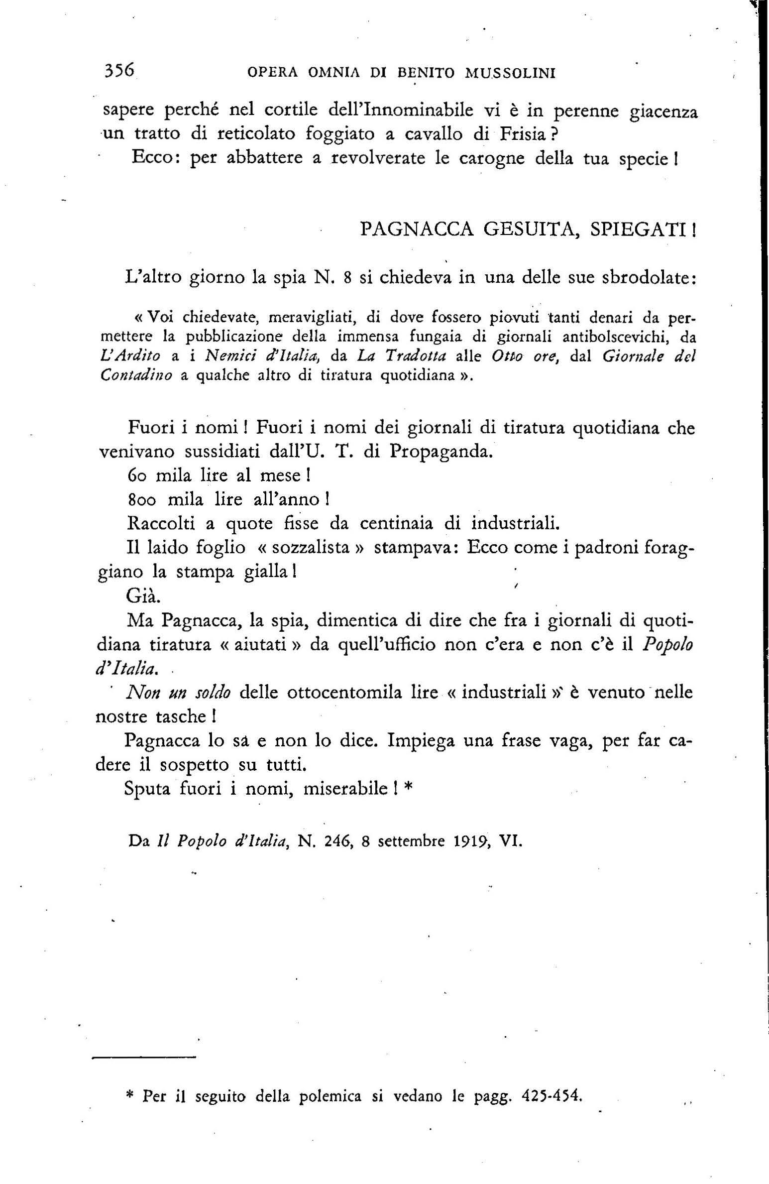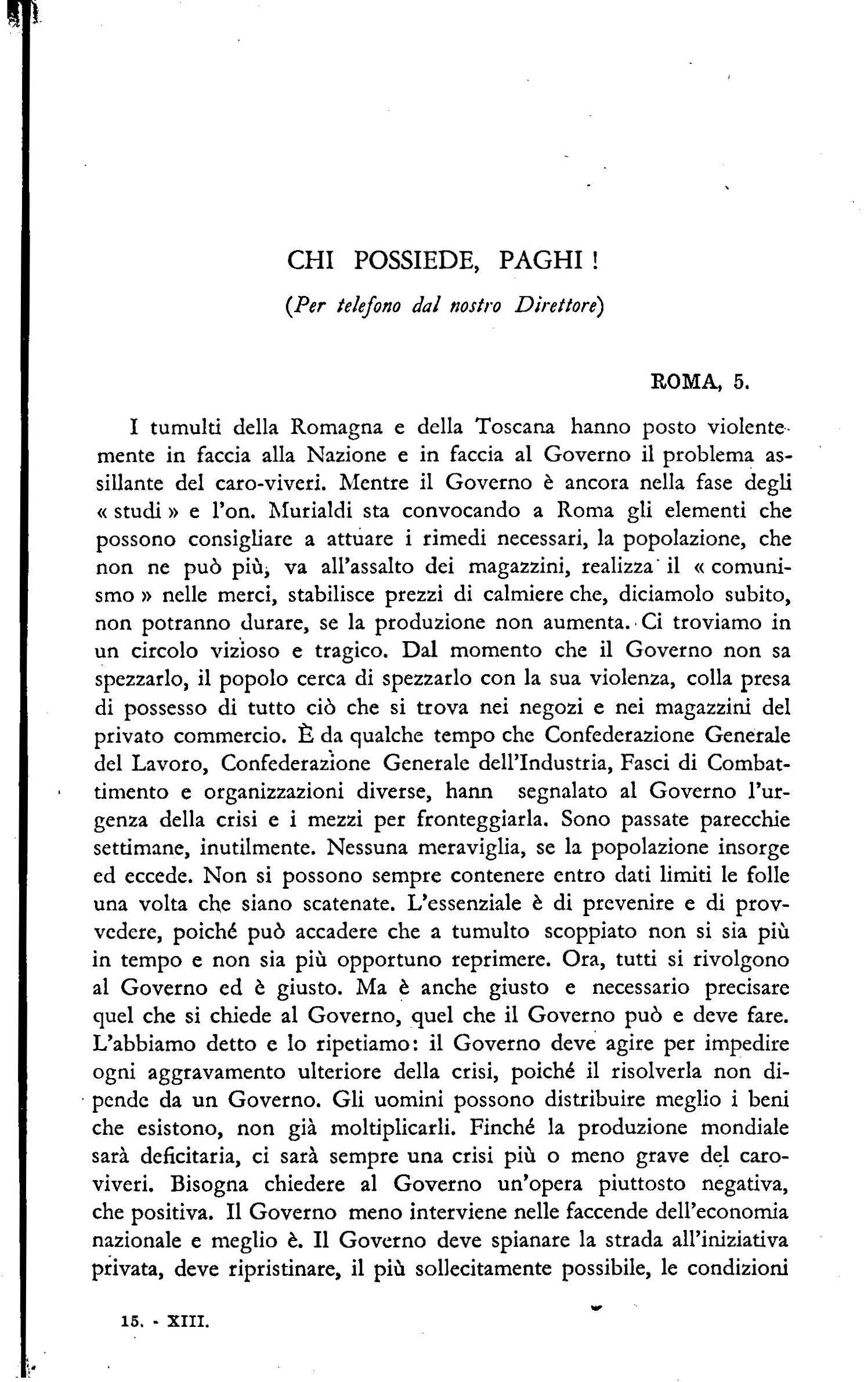 lo ~critto anonimo contrassegnato con (p) è attribuito a Benito Mussolini da G. A. Chiurc:o in : St0ritJ della rivoluzione ftU.is ta (1919-1922) , voi. IVallecchi, Firenze, 1929