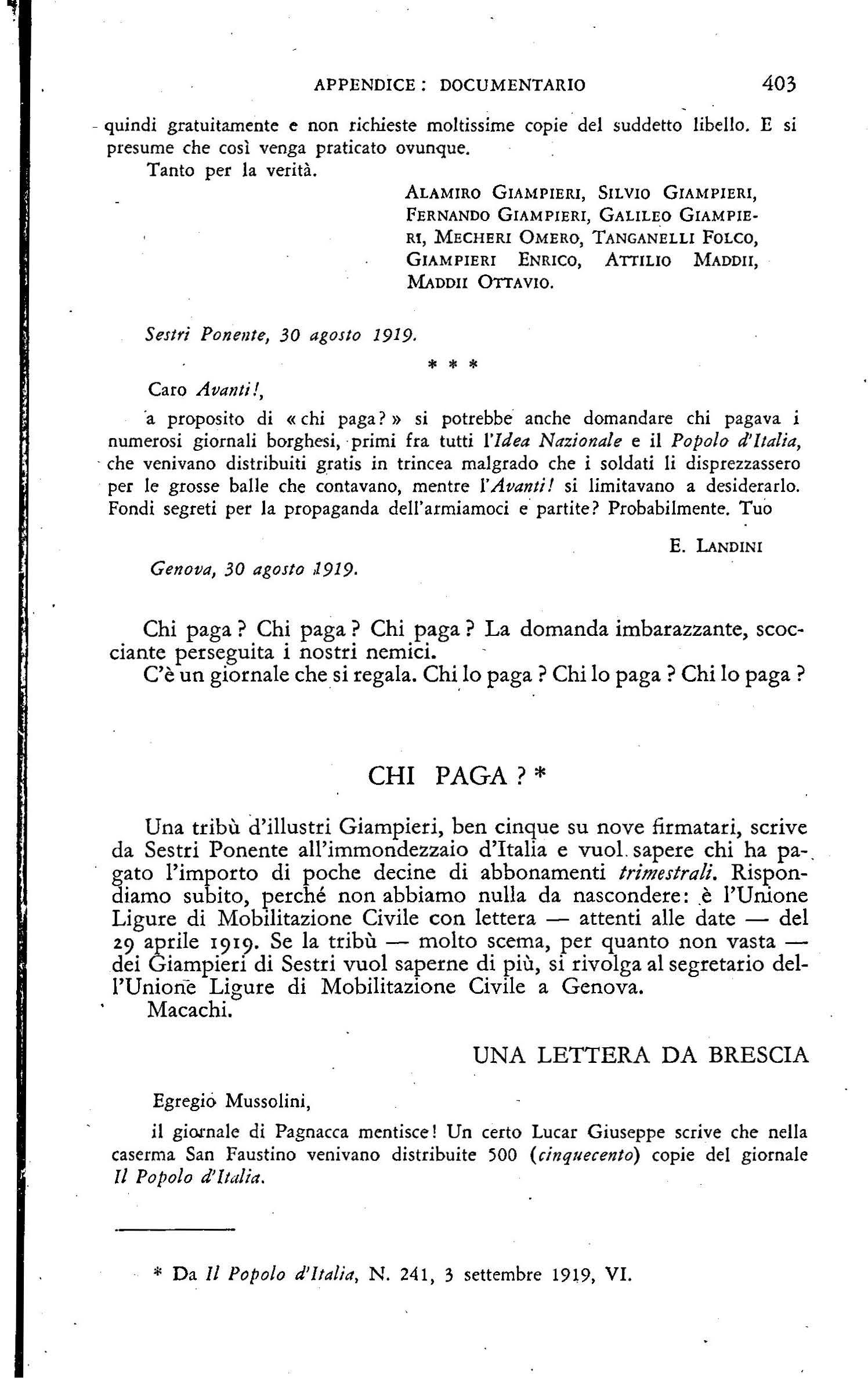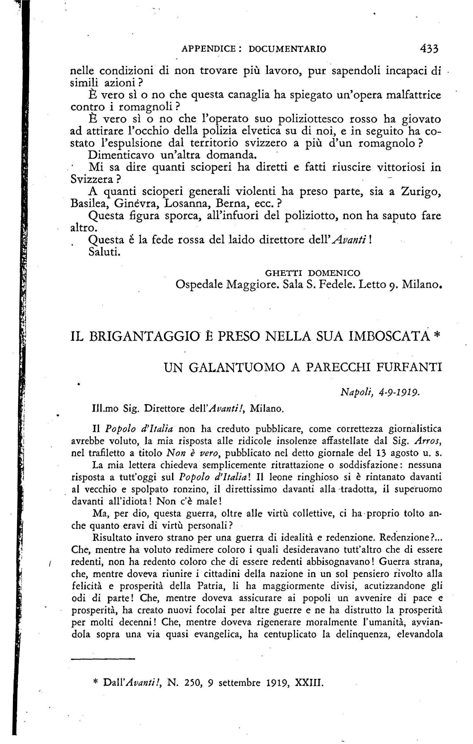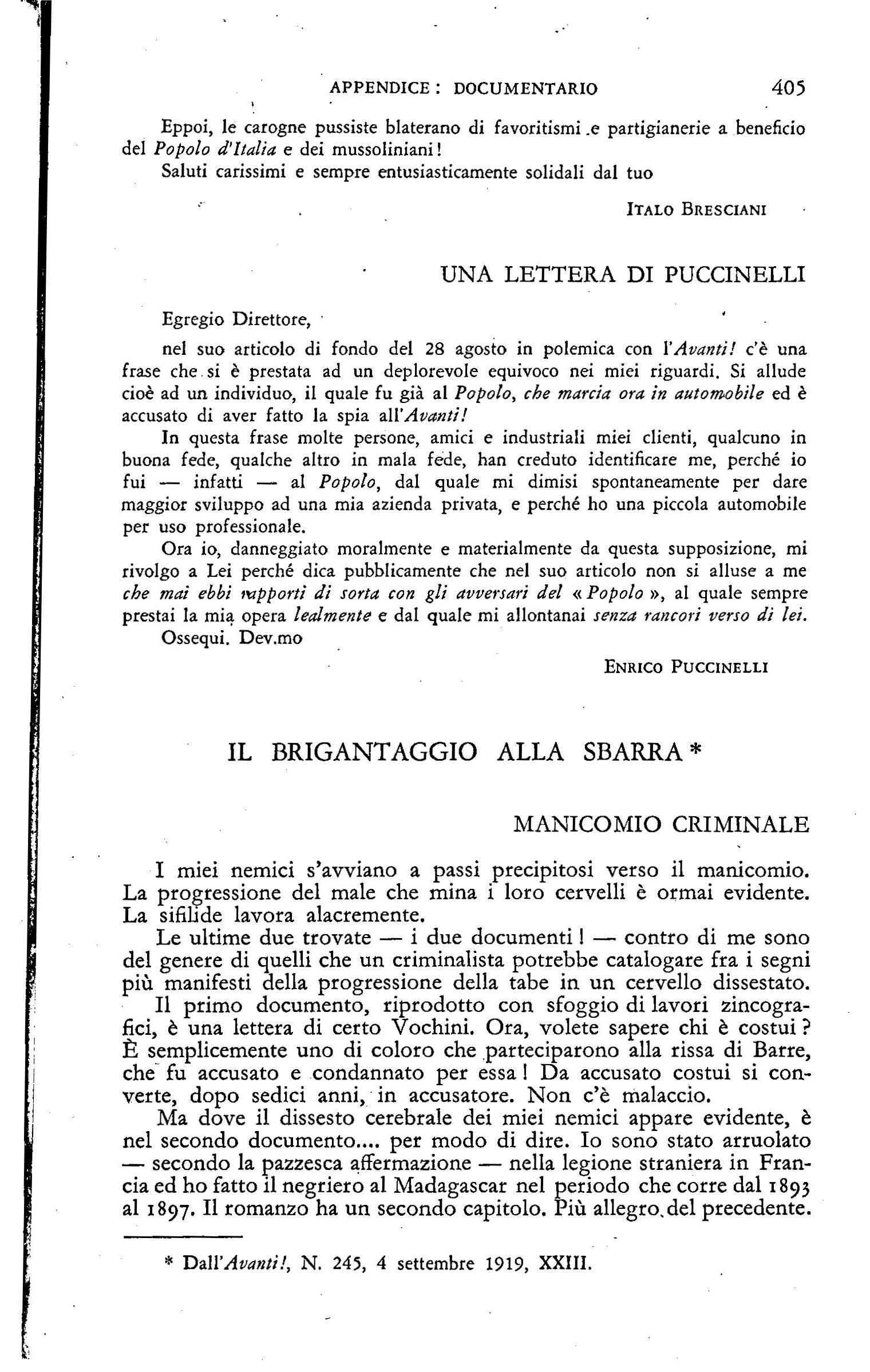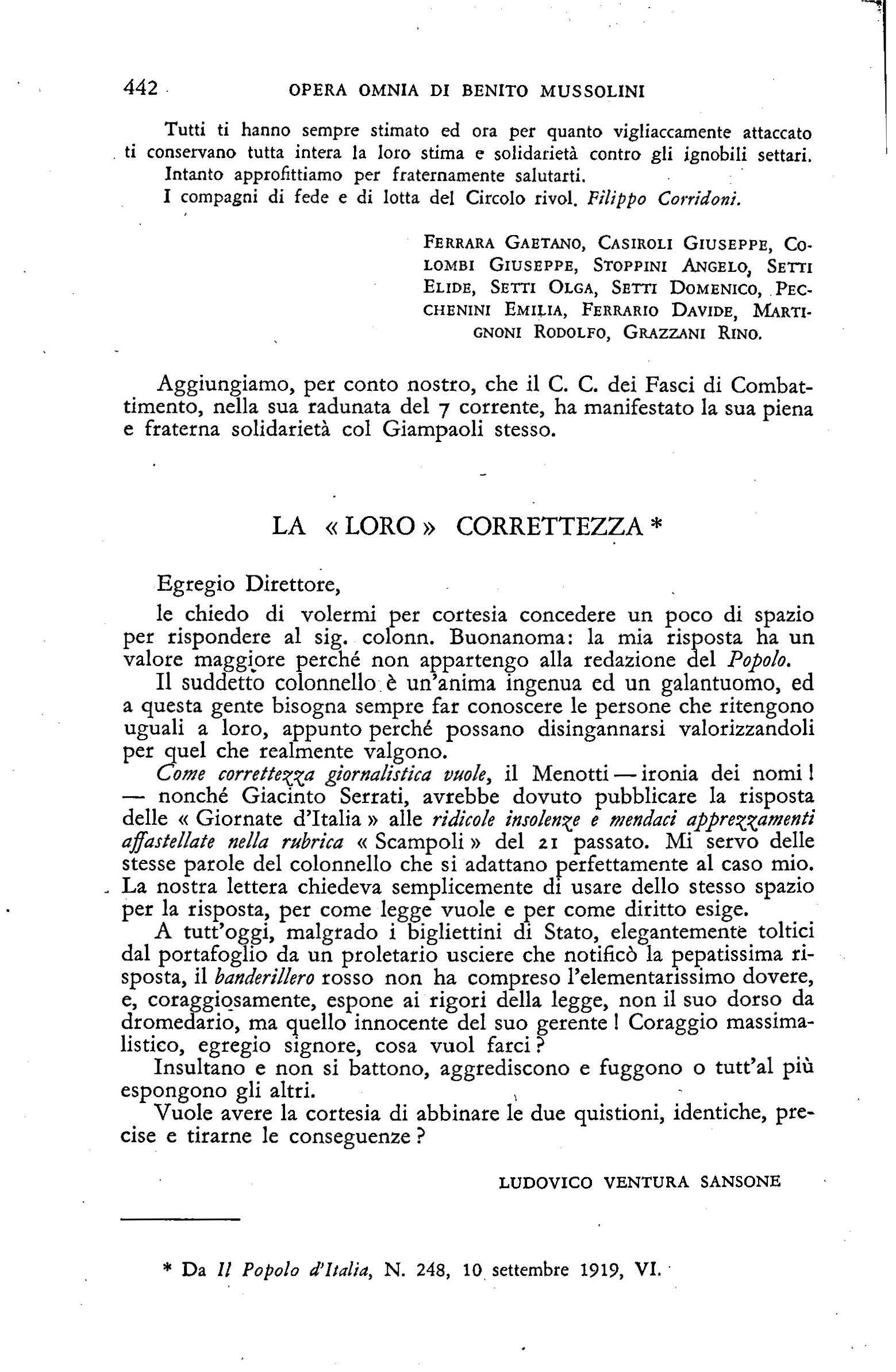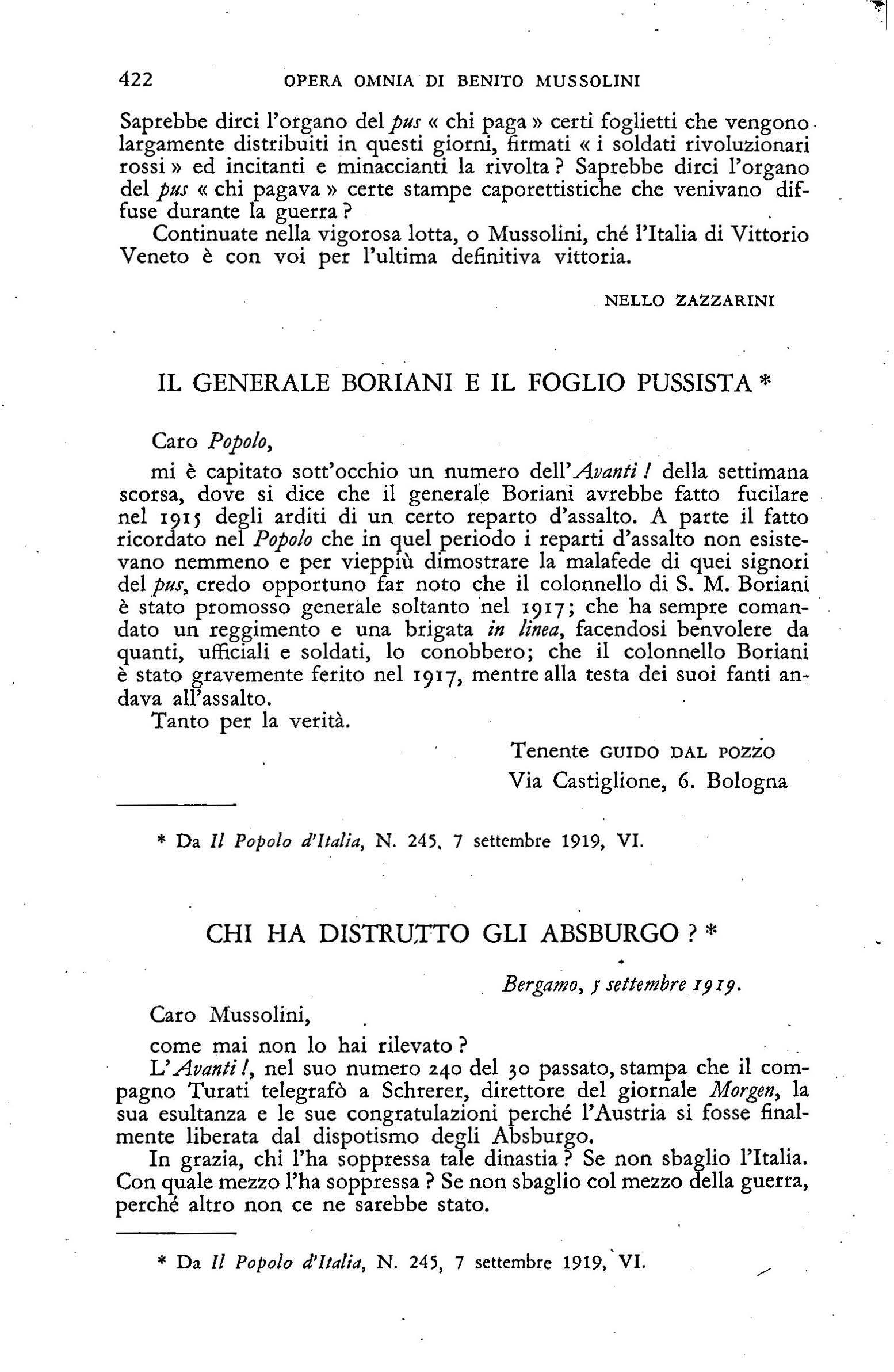 lo ~critto anonimo contrassegnato con (p) è attribuito a Benito Mussolini da G. A. Chiurc:o in : St0ritJ della rivoluzione ftU.is ta (1919-1922) , voi. IVallecchi, Firenze, 1929