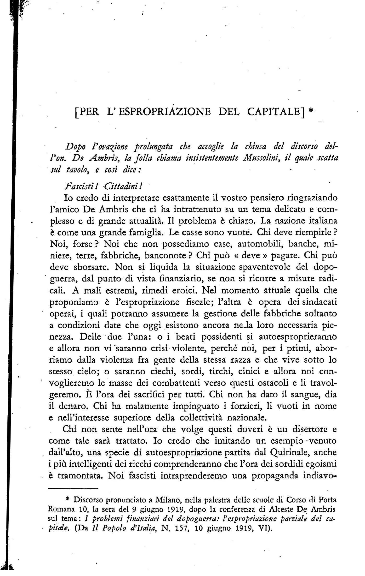 Per l'esp r opriazione del capitale (9 giug no 1919) .