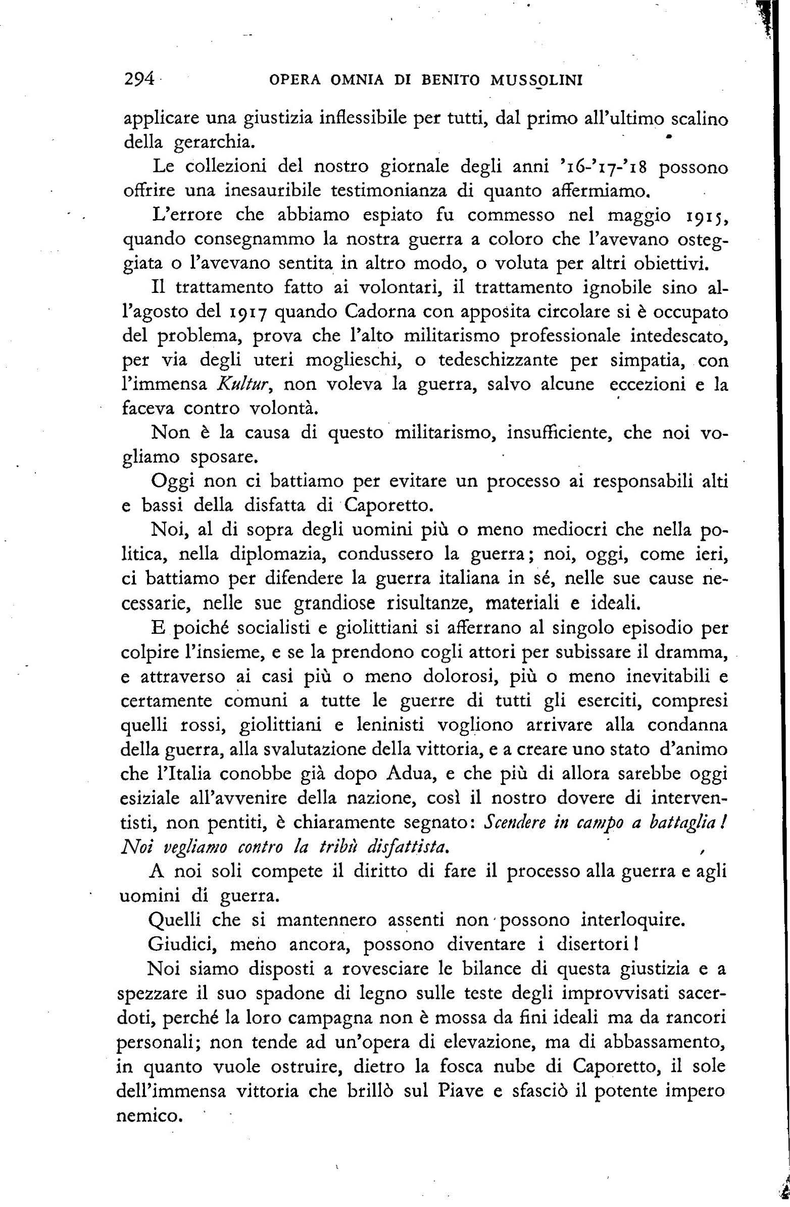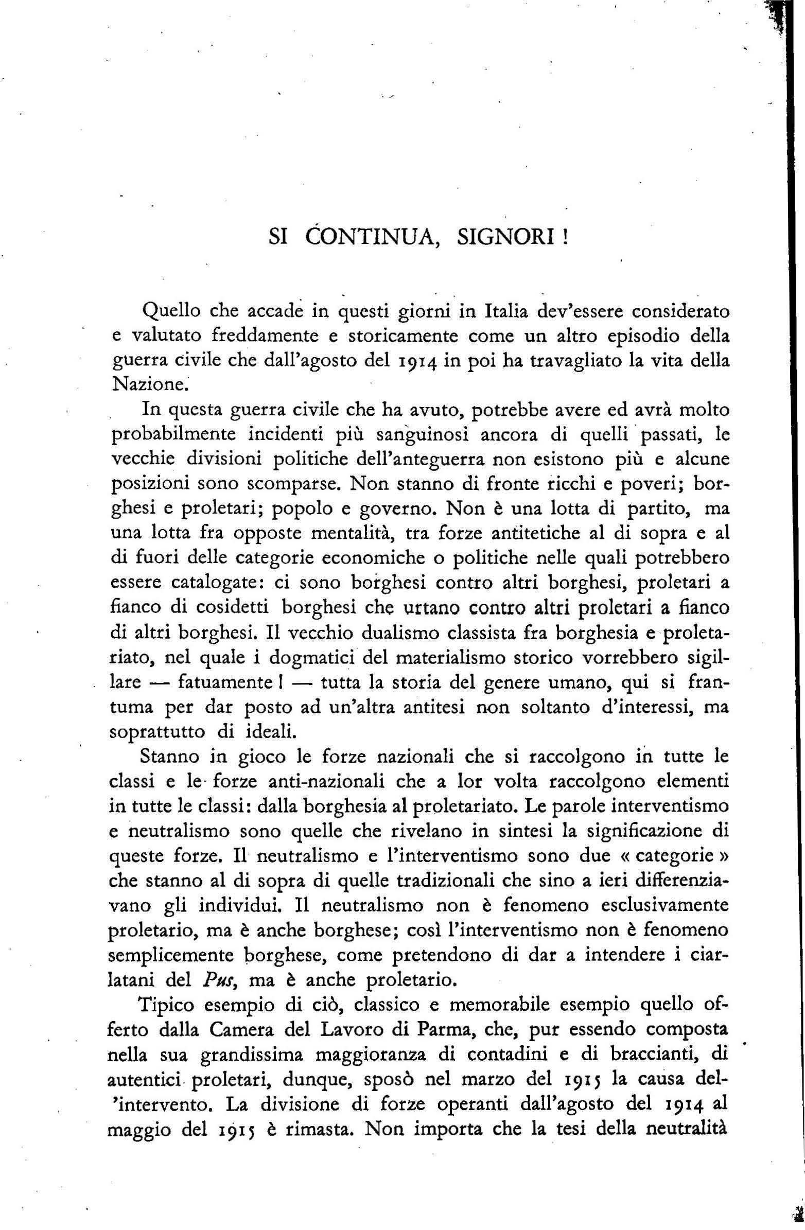 x. Bisogna mettersi in mente, credere e far credece che l'unico Partito che oggi si a <e reazionario» in I talia_ è il Partito Socialista Ufficiale. Reazionario perché dura nte la guerra si è alleato - m qralmente, e fo rse anche materialmente - con le forze della reazione europea. La catena log ica è questa: se il Partito Socialista Ufficiale fosse riuscito, coi movimenti insutrezionisti inscenati alla v igilia della mobilitazione a Torino e pe[ fortuna soffocati, a imporre \l'n prolungamento d ella neut~lità, gli · Imperi Centrali - Vedi dichiarazi one Ludendodfavrebbero vinto la g uerra Se g li Imperi Centrali avessero vinto 1a guerra, gli Hohenzollern, i Romanoff, gli Abs.burgo sarebbero ancora rispettivamente sui loro troni consolidati a Berlino, P ietrogrado, Vienna e di repubbliche in Europa si sarebbe salvata forse quella di Andorra o quella dì S. Marino. s