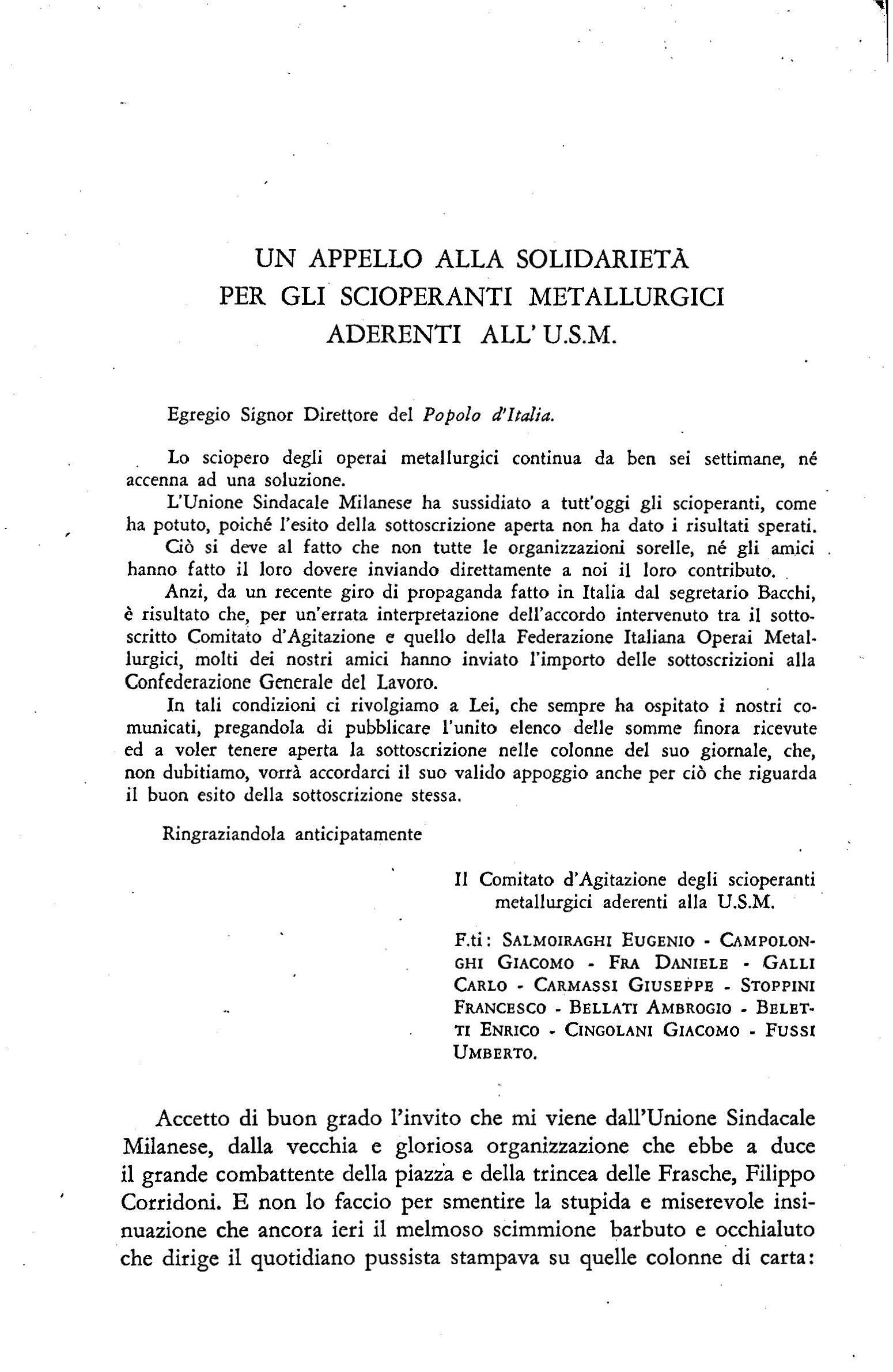 Rientrato a Milano il 30 aprile, dedica un articolo agli operai ( 9S) e querela