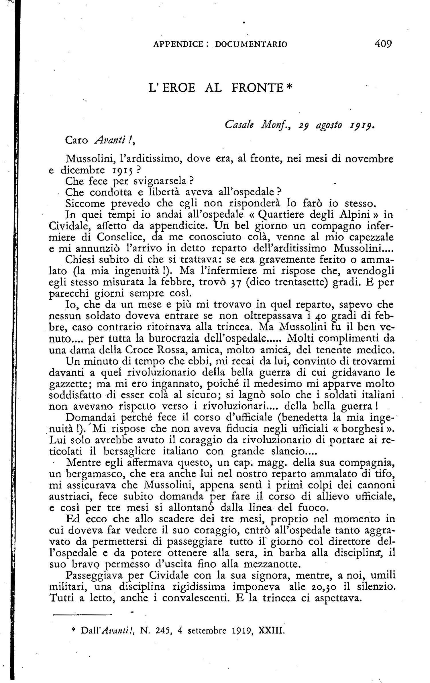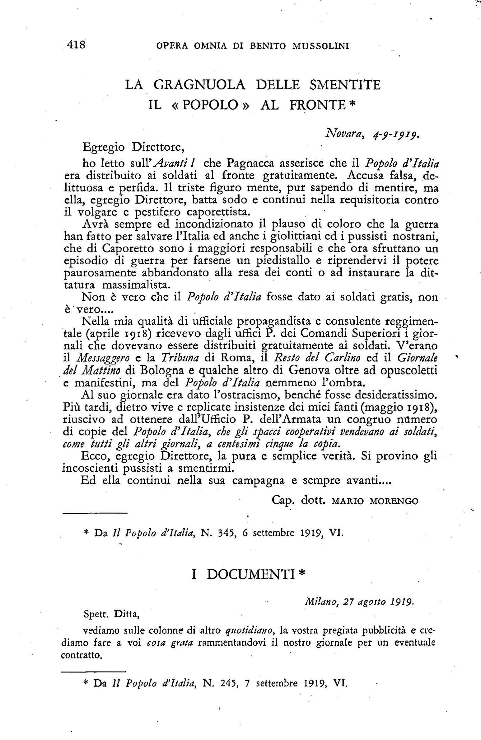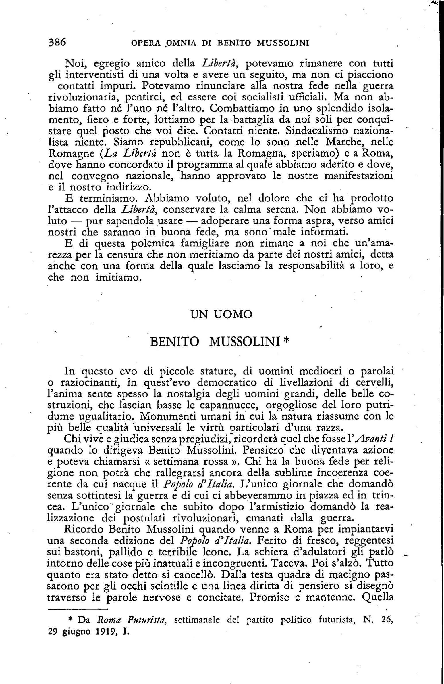 La p aternità d e!tli scritti anonimi contrassegnati da un asterisco r isulter à di Benito Mussolini dal confronto con quelli ·cui si fa r ichiamo i n nota