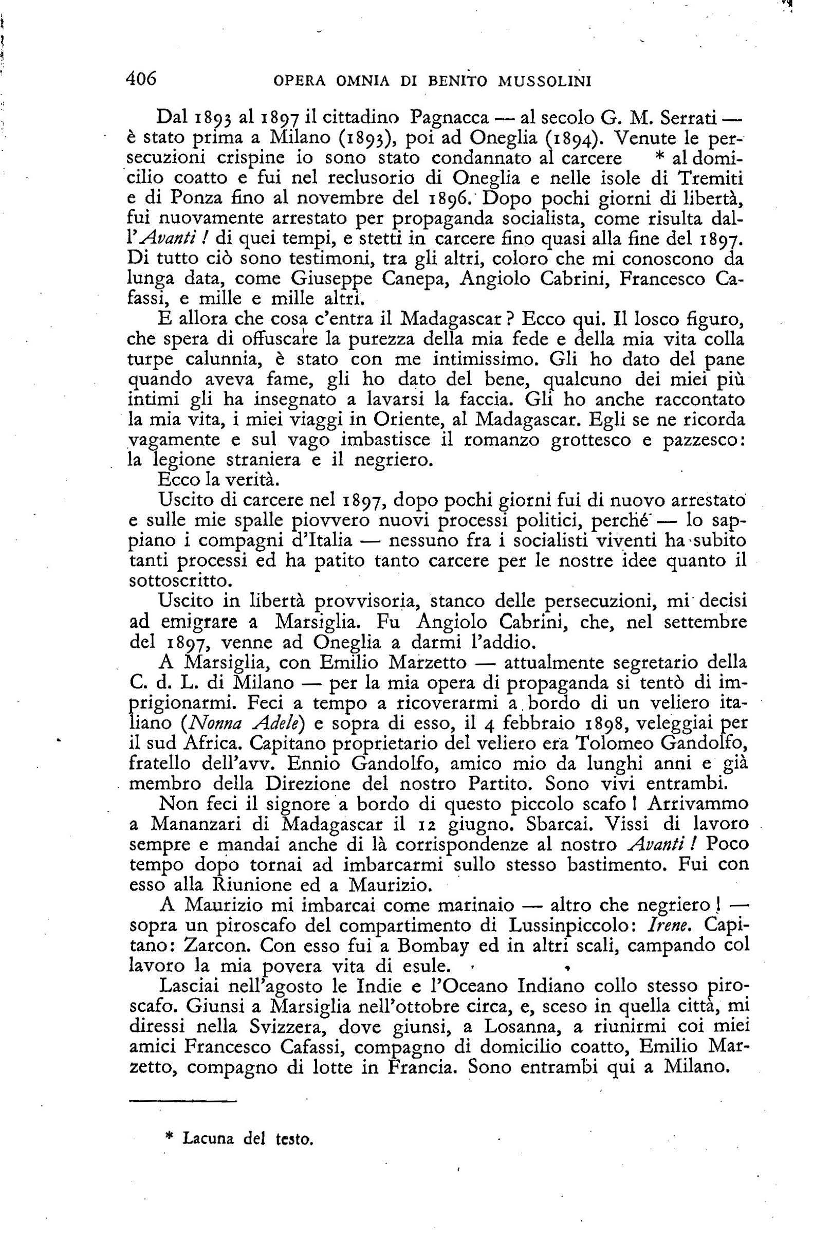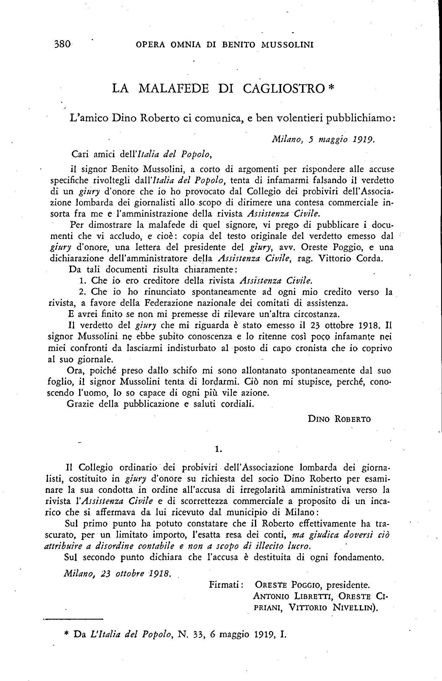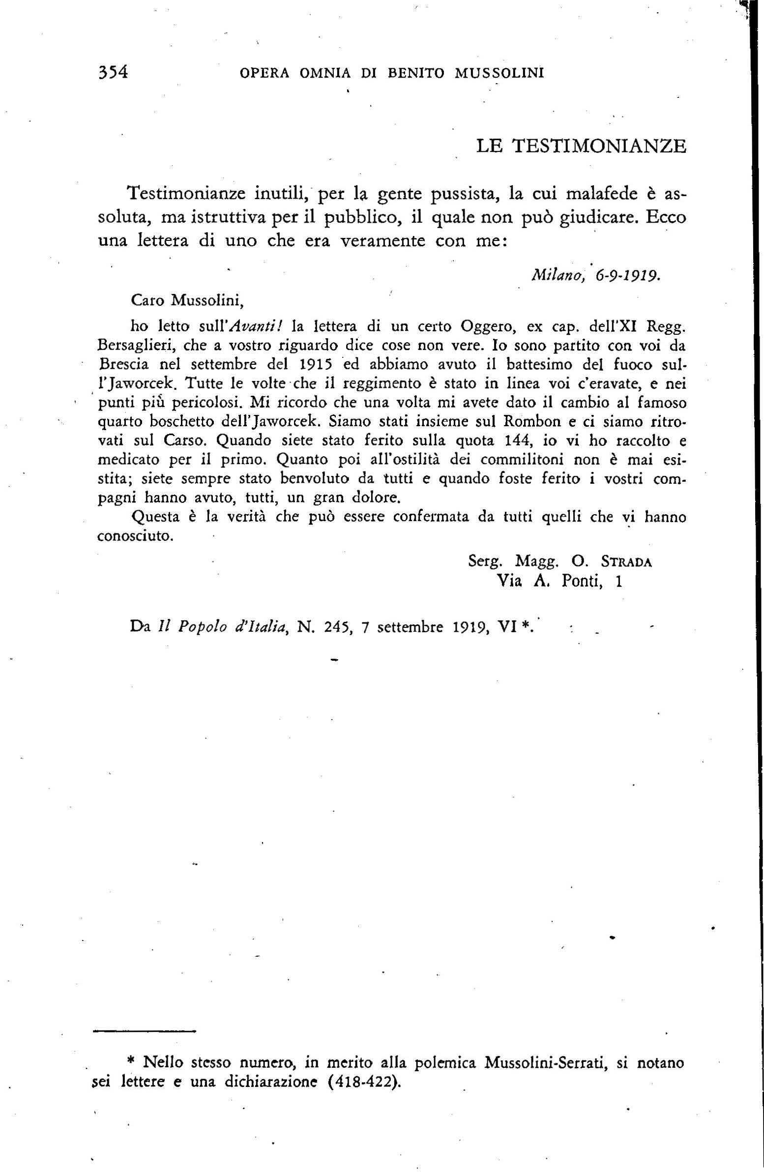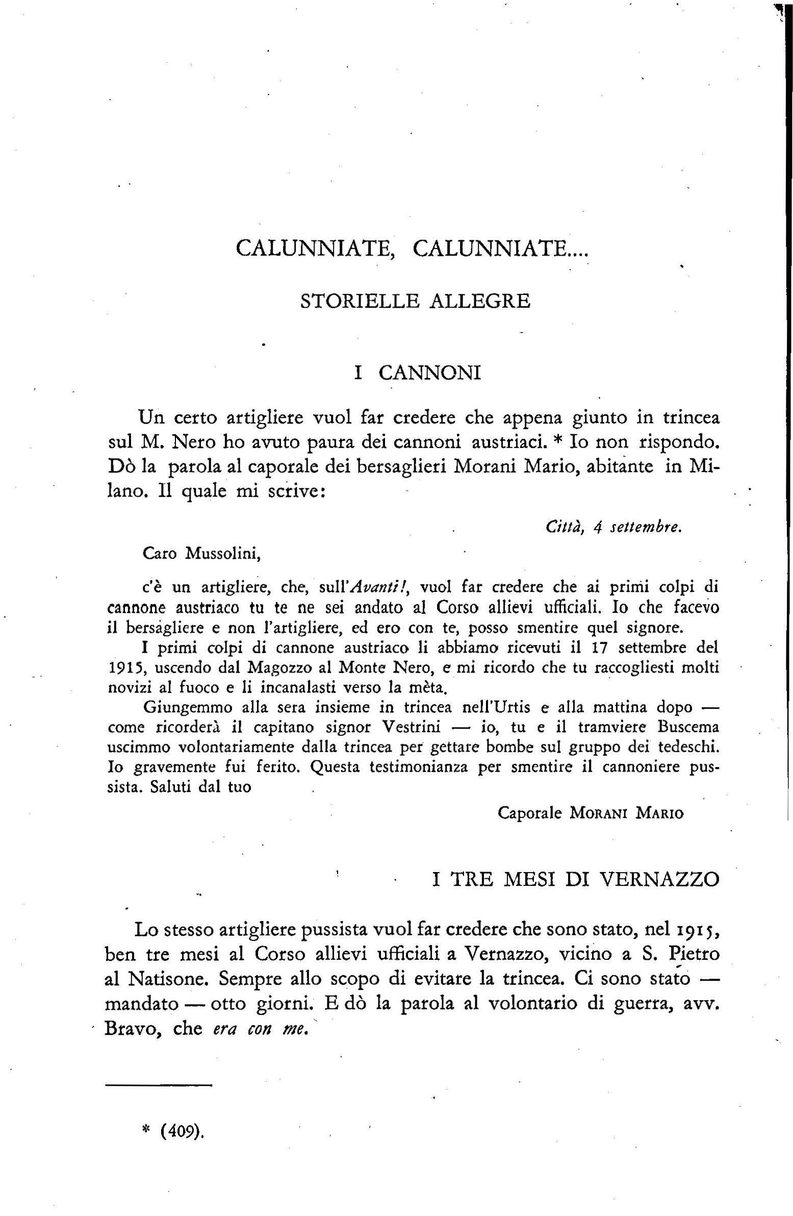 La p aternità d e!tli scritti anonimi contrassegnati da un asterisco r isulter à di Benito Mussolini dal confronto con quelli ·cui si fa r ichiamo i n nota